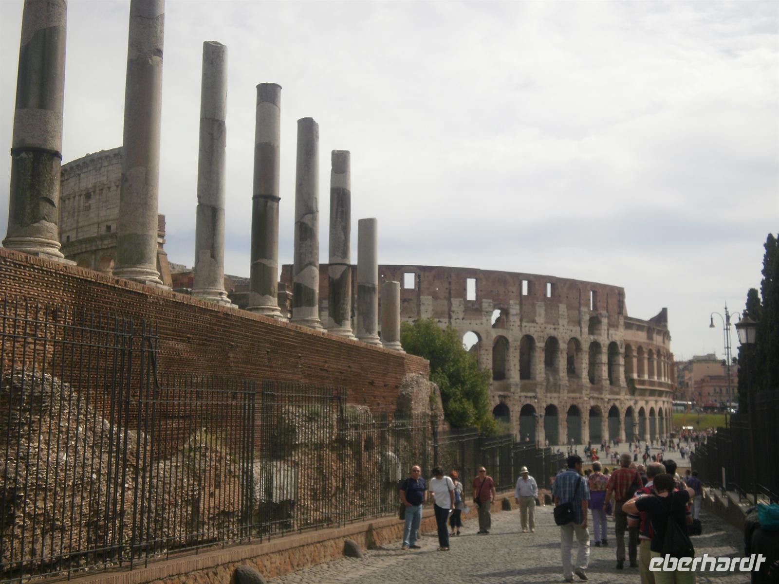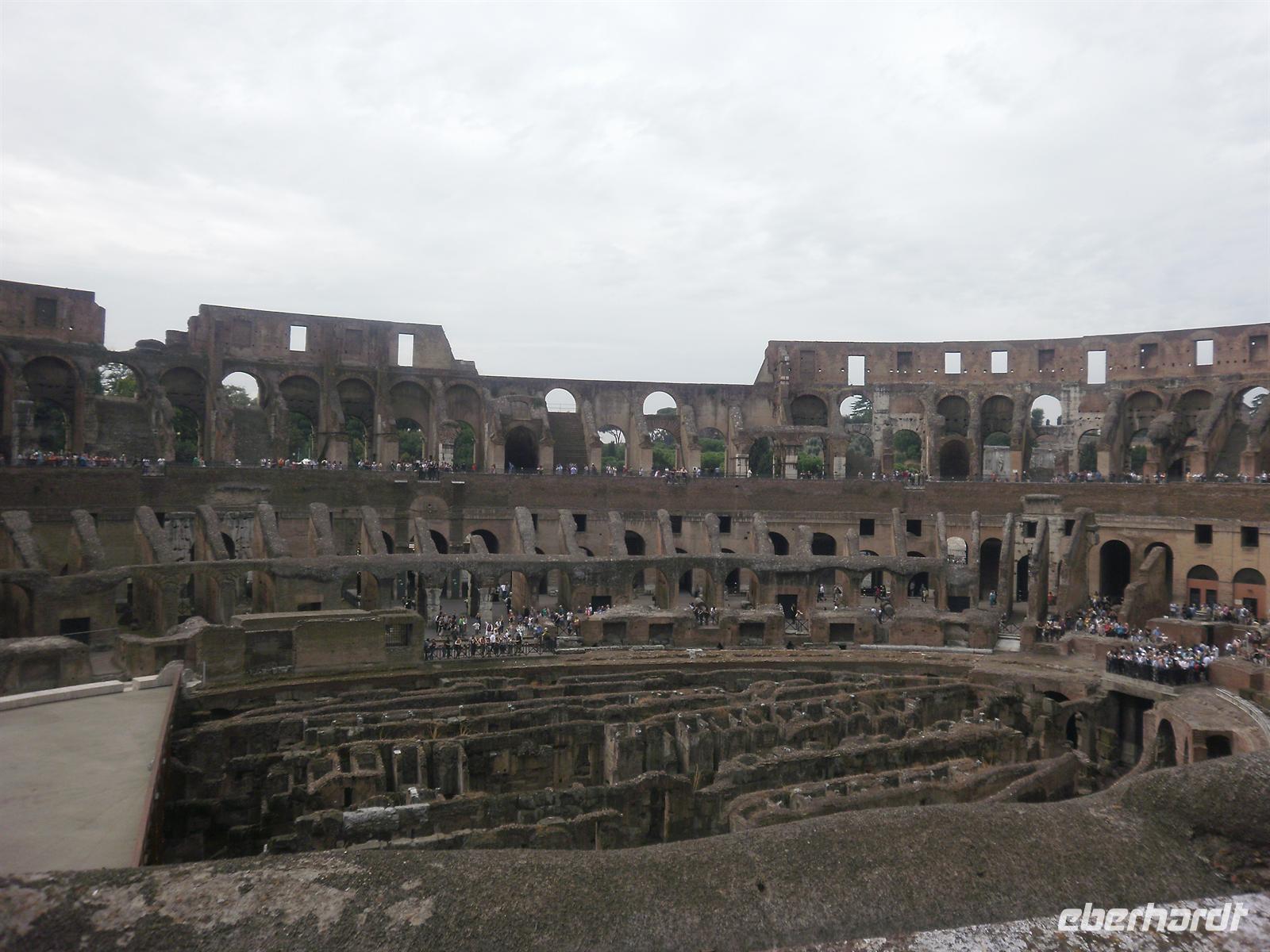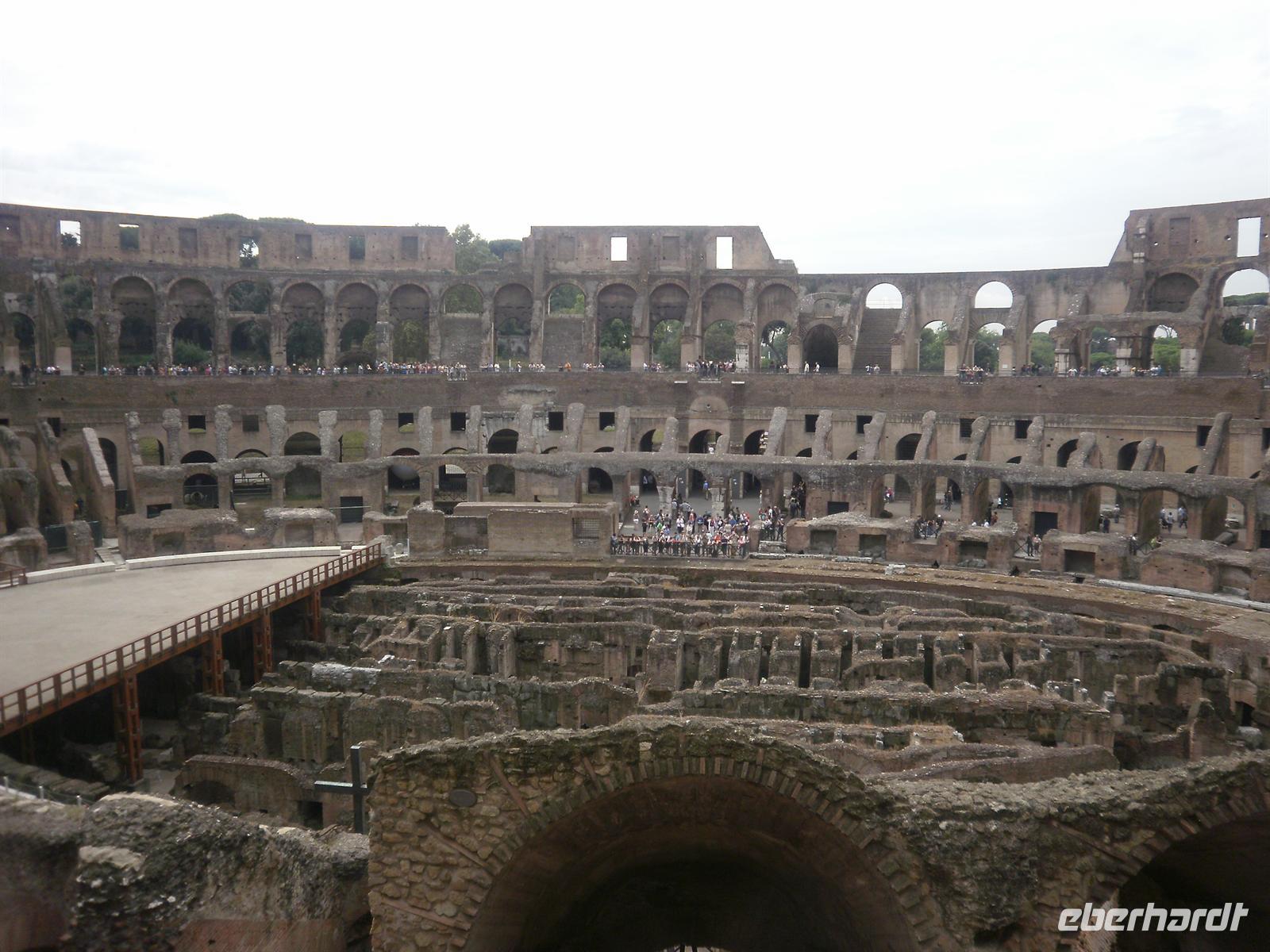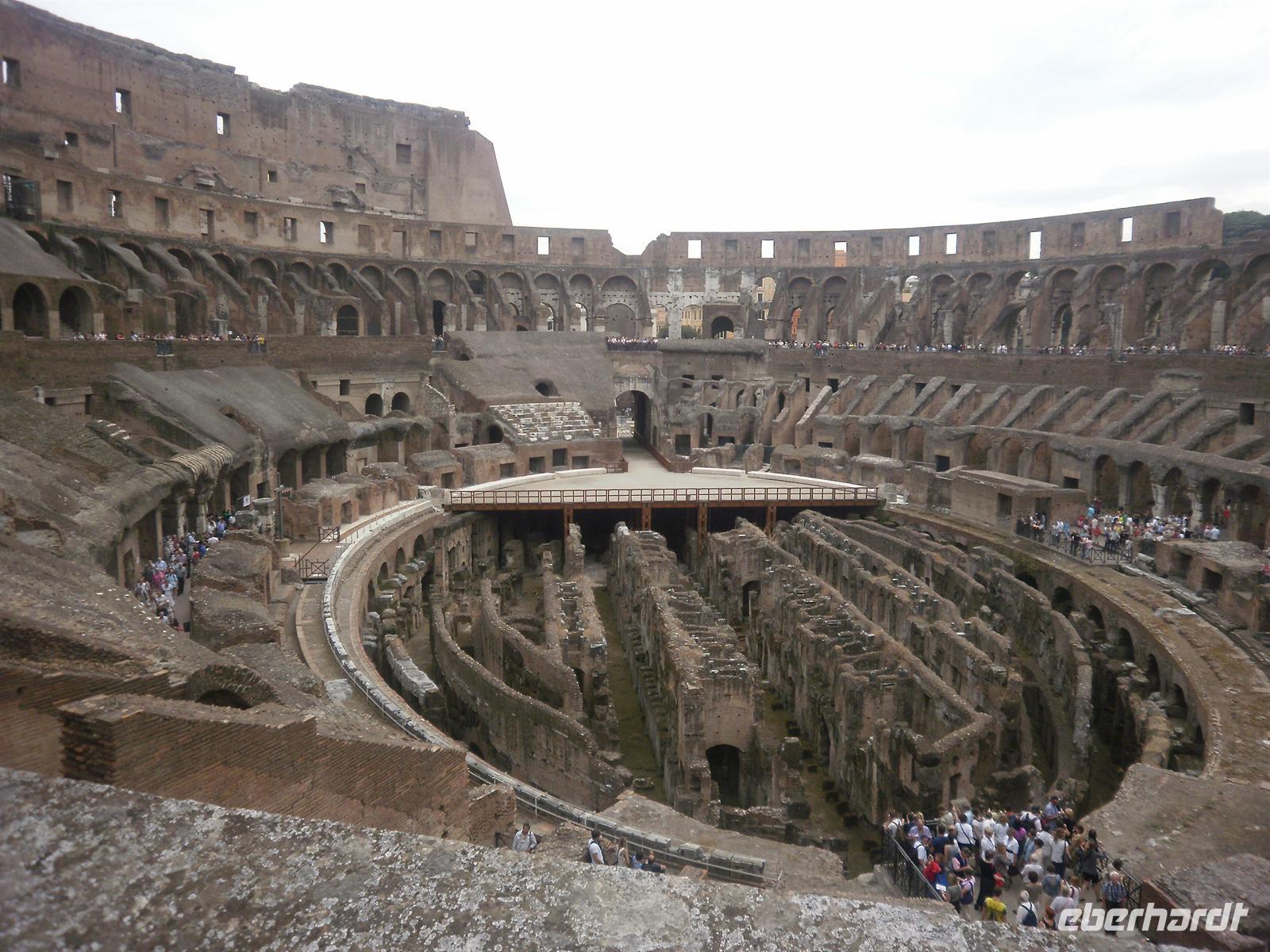 Das Kolosseum wurde von Kaiser Titus im Jahre 80 n. Chr. eingeweiht. Die Bauarbeiten dauerten acht Jahre. Die Spiele im Amphietheater umfassten vor allem Gladiatorenkämpfe und Kämpfe zwischen Gladiatoren und Tieren.