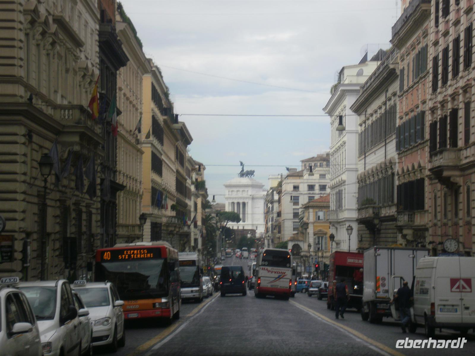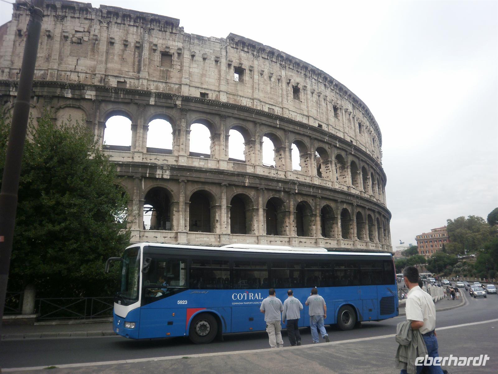 Völlig entspannt und ausgeruht starteten wir zur zweiten Etappe unserer Reise nach Rom. Die Strecke führte uns über Torbole und auf der Ostuferstraße des Gardasees entlang in Richtung Süden. Dabei fuhren wir durch bekannte Ortschaften wie Malcesine und Garda, wo wir immer wieder viele schöne Blicke zum Gardasee genießen konnten. Schließlich erreichten wir die Brennerautobahn bei Verona, denn das war nunmehr die schnellste Strecke - es lagen ja noch einige Kilometer vor uns! Das schöne an einer Busreise ist, dass man schon unterwegs tolle Einblicke in ein Land bekommt und verschiedene Regionen durchquert. Der Norden Italiens wird durch eine riesige Ebene bestimmt, die sogenannte "Po-Ebene". Der längste Fluß Italiens gibt dieser Ebene ihren Namen, er ist 652 Kilometer lang und wir überquerten den Po dann schließlich südlich von Mantua. Weiter ging es bis Modena, dort endete auch die Brennerautobahn und begann für uns die Autostrada del Sole. Nun sollte es am Südrand der Po-Ebene bis Bologna gehen und dann wurde es richtig interessant. Plötzlich ändert sich nämlich die Landschaft, denn wir fuhren durch den tosco-emilianisch-romagnolischen-Appenin - benannt nach diesen beiden italienischen Regionen. Diese tolle Fahrt durch das Gebirge endete erst kurz vor Florenz - mittlerweile waren wir schon im Herzen der Toskana! Durch die ständigen Änderungen des Landschaftsbildes erschien uns die Fahrt recht kurzweilig. Südlich von Florenz beginnt dann die typische sanft gewellte Hügellandschaft der Toskana mit Zypressen, Pinien und Olivenbäumen - genau so waren die Bilder, die so manch einer von uns im Kopf hatte. Auch durch einen Teil der Region Umbrien führte unsere Reise. Umbrien ist eine der wenigen Binnenregionen des Landes und wird oft auch als "Grünes Herz Italiens" bezeichnet. Von der Autobahn aus sahen wir Orvieto, das schon seit der Etruskerzeit besiedelt war. Orvieto thront auf einem etwa 300 Meter hohen Tuffsteinfelsen und ist durch seinen großartigen Dom bekannt. Nun folgten wir dem Lauf des Tibers und das schließlich bis nach Rom - nun konnten wir uns wahrlich nicht mehr verfahren, wir hatten den Tiber als Wegweiser! Es führen zwar bekanntlich viele Wege nach Rom, aber wir wählten nun mal den schnellsten!