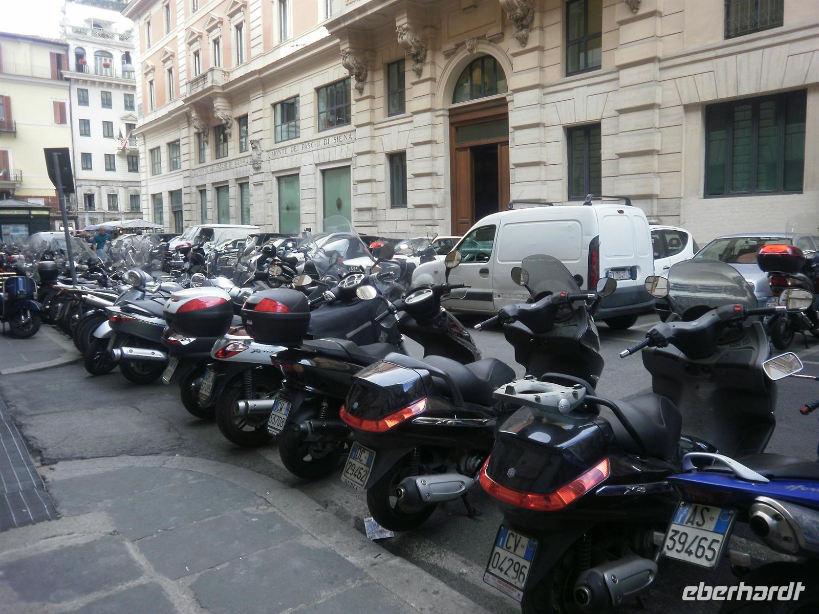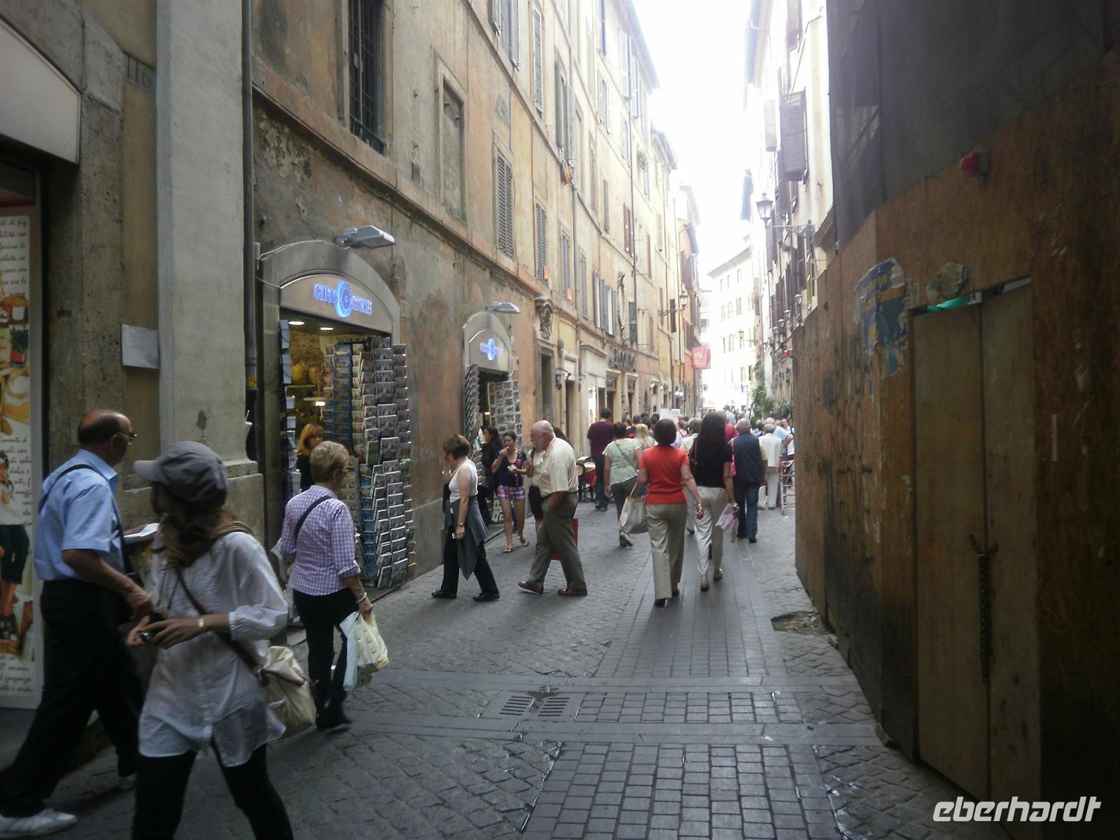 Mit ihren Freundinnen setzten sie sich auf den Brunnenrand, schöpften Wasser mit einem Trinkglas und warfen anschließend das Glas über die Schulter in die Fontana di Trevi. Übrigens ist Wasser so ziemlich das Einzige, was es umsonst gibt in Rom. "Die Wasserbehörde hat dafür Sorge zu tragen, dass die öffentlichen Brunnen möglichst ohne Unterbrechung bei Tag und Nacht ihr Wasser zum Nutzen des Volkes fließen lassen", heißt es in einem bis heute nicht aufgehobenen Senatsbeschluss aus dem 1. Jahrhundert. Noch heute gibt es rund zweitausend Trinkbrunnen neben Hunderten von Prunkbrunnen. Die klassische "fontanella" hat eine Wolfsschnauze, aus der kühles Trinkwasser rinnt und eine symbolische Brunnenzierde - die Wölfin Roma, die einst Romulus und Remus säugte, stillt unentwegt den Durst der ganzen Stadt. Wir hatten stets eine kleine Plasteflasche dabei, damit wir ständig Trinkwasser nachfüllen konnten - das spart natürlich auch eine Menge Geld...