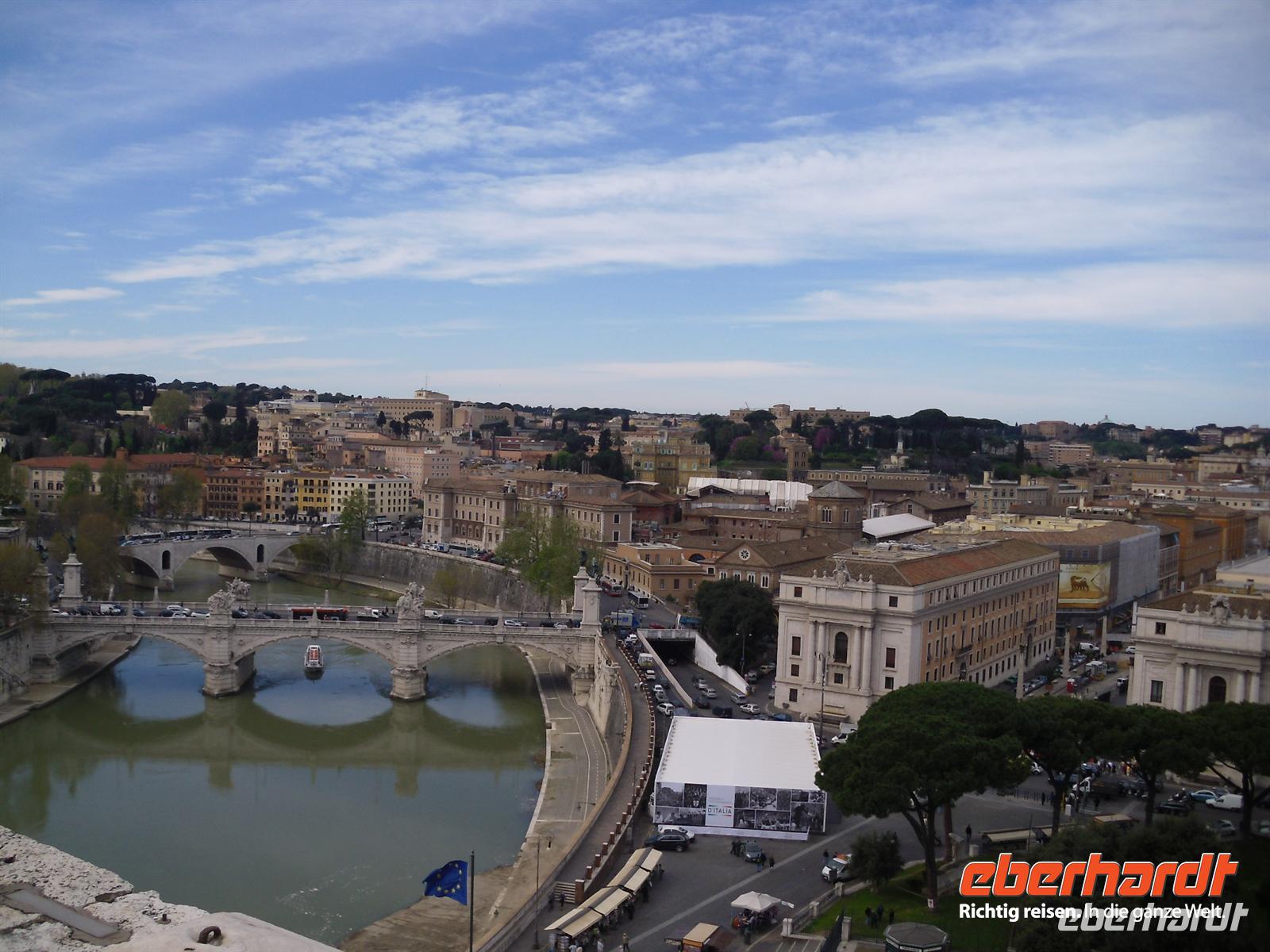 Hier sehen wir auch die Reiterstatue von Giuseppe Garibaldi und haben einen fantastischen Blick über die Dächer von Trastevere, das weiß leuchtende Nationalmonument, die vielen Kuppeln und das grüne Band der Bäume entlang dem Tiber. Ganz in Nähe vom Vatikan, vorbei am Kinderkrankenhaus gelangen wir wieder hinunter zum Tiber und mit dem Bus fahren wir doch etwas geschafft hinaus zu unserem Hotel. Nach dem Abendessen