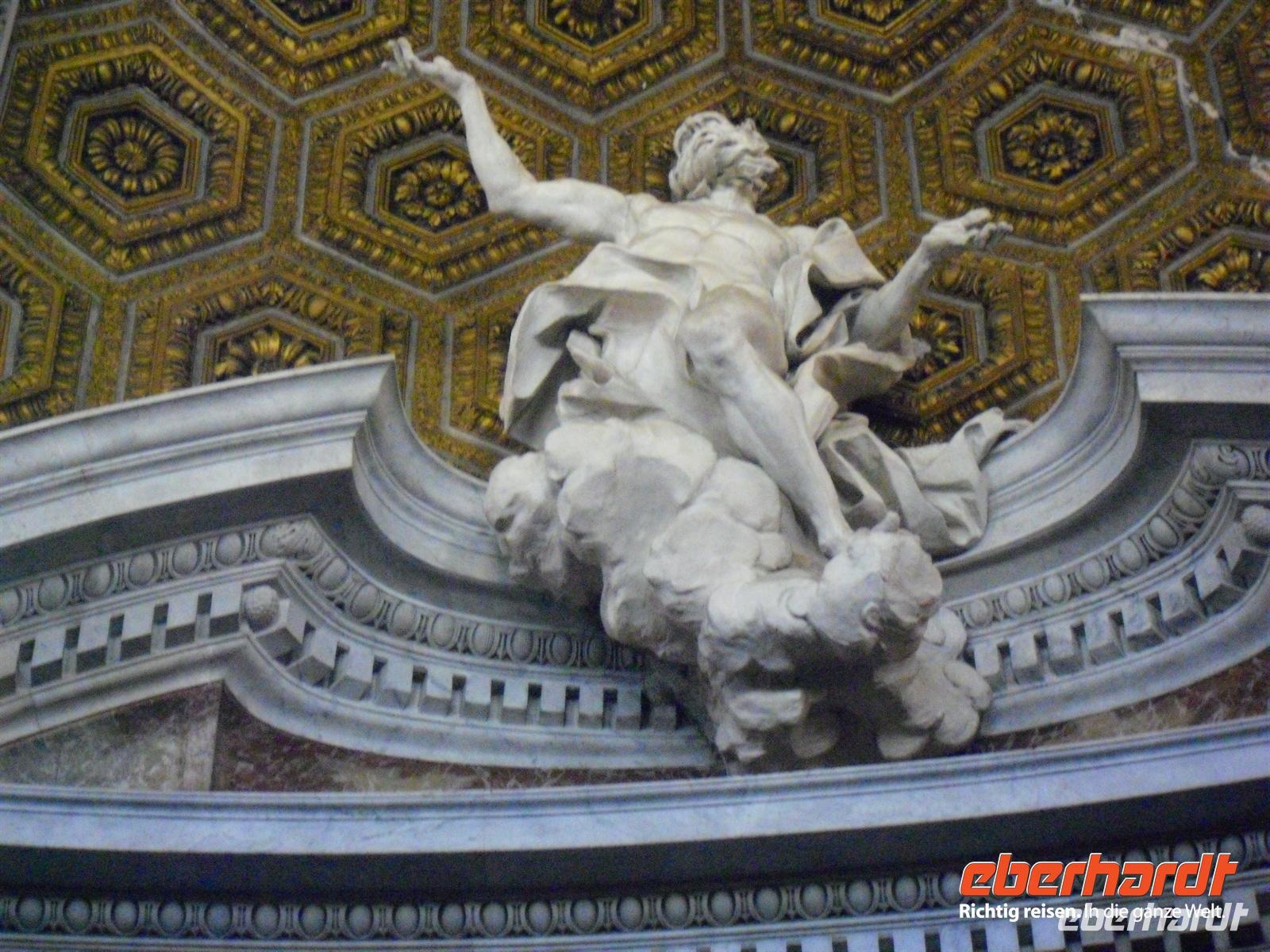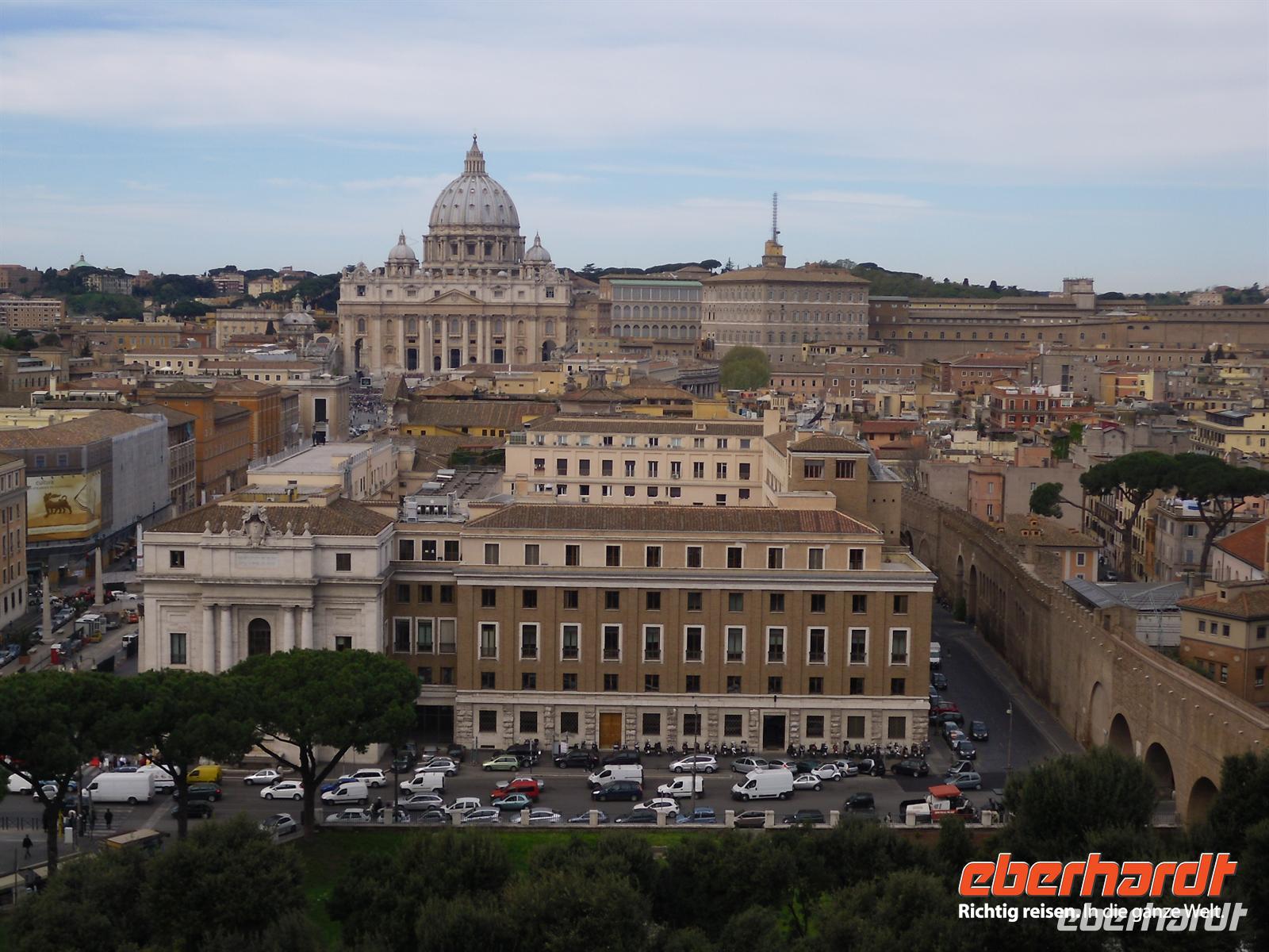 und Bauwerken entstandenes Paradies inmitten des Vatikanstaates. Nach einer Mittagspause begeben wir uns auf Besichtigung der Schätze der Vatikanischen Museen, sie wurden über viele Jahrhunderte von Päpsten angesammelt und können auf einem 7 km langen Rundweg durch zig verschiedene Museen bestaunt werden. Am Ende wollen wir aber in die Sixtinische Kapelle, die die Meisterwerke von Michelangelo in sich birgt. Er hat eindrucksvoll und für die Ewigkeit die restaurierten Fresken geschaffen. Vorbei an der Schweizer Garde gehen wir hinauf, um noch vorm Betreten des Heiligtums einen Blick über den Petersplatz bis hin zum Tiber zu erhaschen. Und nun geht es hinein in den Petersdom und Agnieszka läuft zu Hochform auf, was sie uns vermittelt, dass ergreift die Seele, das Herz und jeder von uns folgt mit Aufmerksamkeit ihren Ausführungen. Das Innere des Doms ist gewaltig: 50 Altäre, 450 Statuen und 500 Säulen, ja und fast 60.000 Menschen finden Platz in ihm. Im Anschluss besteigen einige Gäste die Kuppel, von da oben bekommt man einen genialen Überblick über die Gesamtanlage des Petersplatzes, der übrigens hat den Grundriss eines auf den Kopf gestellten Schlüssellochs und wurde von Bernini entworfen.