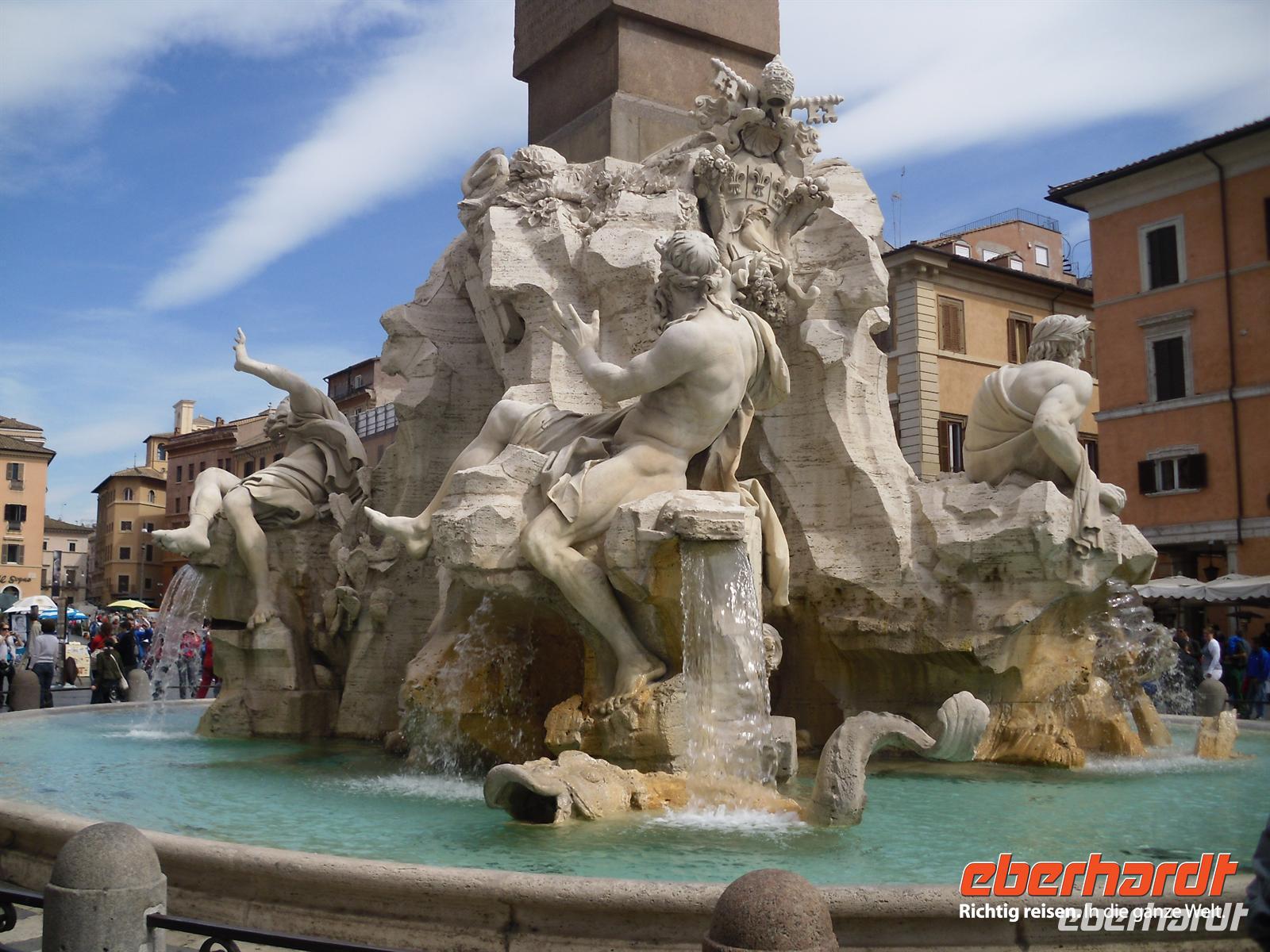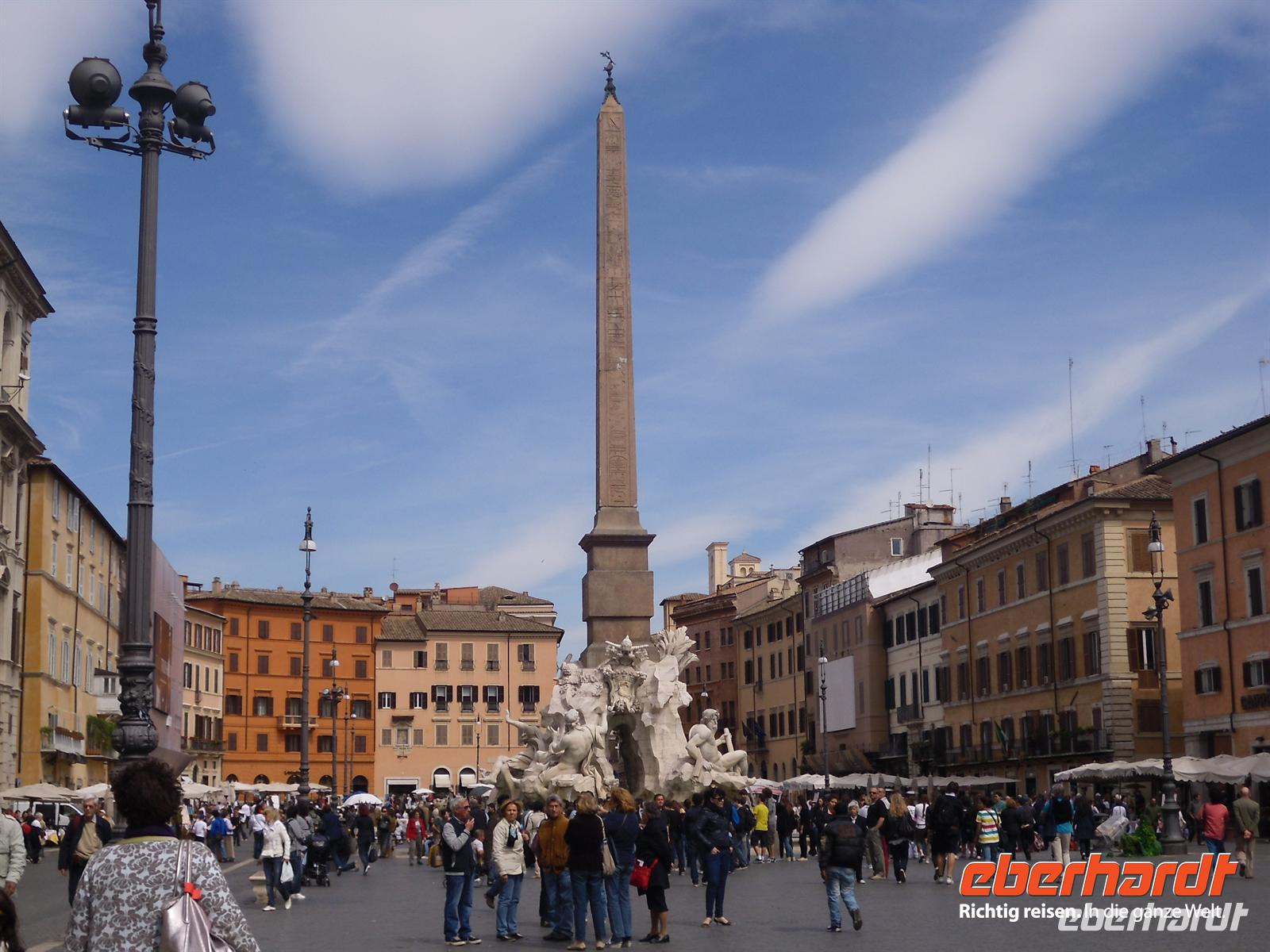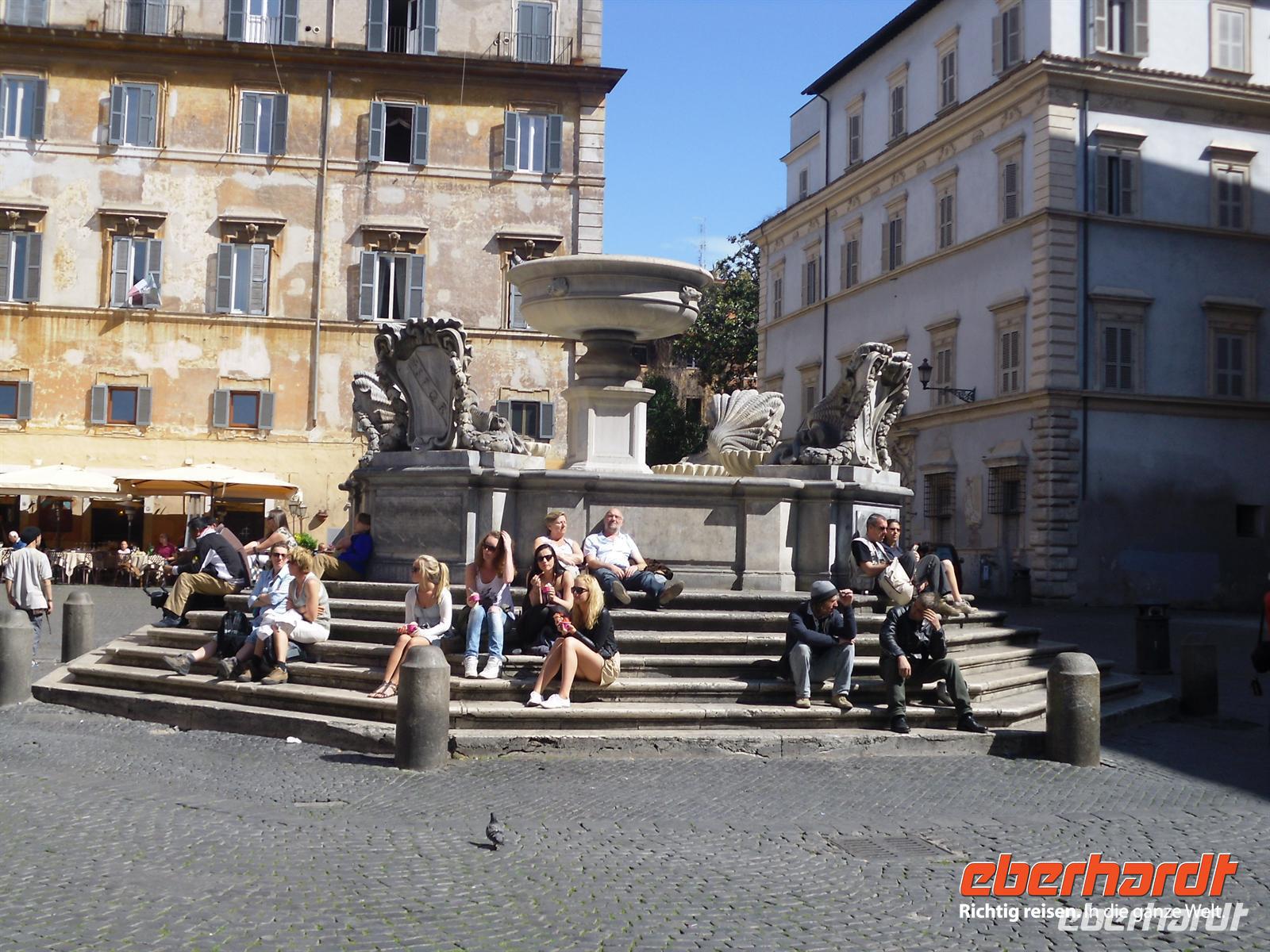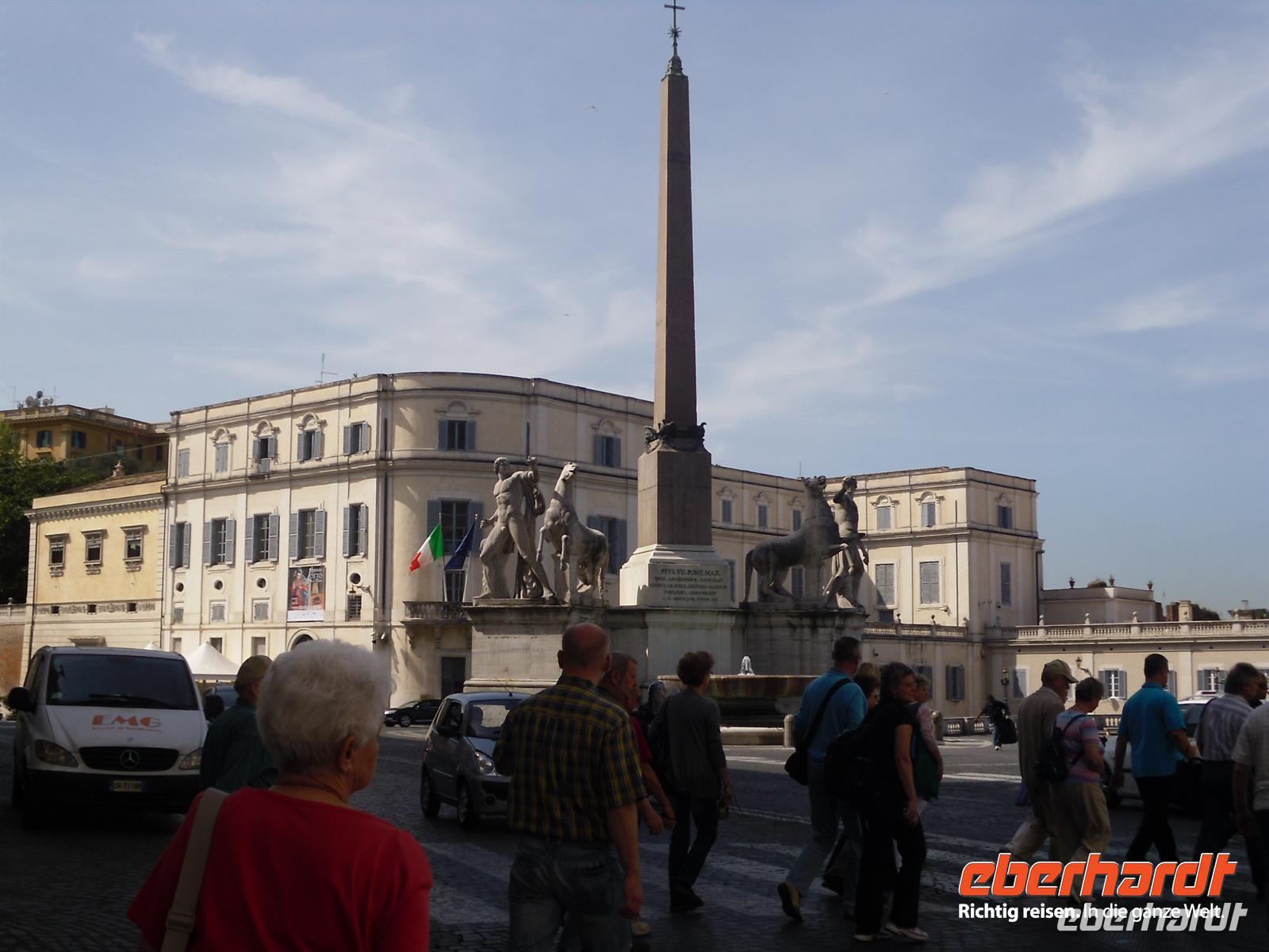 königlichen Palais. Heute residieren die italienischen Staatspräsidenten im riesigen Quirinalpalast. Weiter über die Via del Corso, eine der bekanntesten Einkaufsstraßen in Rom, gelangen wir zum Trevi Brunnen, der größte Brunnen in der Stadt, der das Meer mit Neptun in der Mitte darstellt und von 2 Tritonen auf Seepferden flankiert wird. Wir leben auch die Tradition und werfen eine Münze mit der rechten Hand über die linke Schulter in den Brunnen. Nach einer Mittagspause führt uns unser Weg hin zur Spanischen Treppe, die von der Piazza di Spagna hinauf zur französischen Kirche führt. Vor der Treppe steht der barkenförmige Barcaccia Brunnen. Hier verabschieden wir uns von Agnieszka und nach einer längeren Pause zum Erklimmen der Spanischen Treppe, gehen die Gäste mit mir noch bis zum Pantheon, für mich ein magischer Ort. Die mächtige Kuppel, deren Durchmesser und Höhe gleich groß sind, ist ein Meisterwerk architektonischer Harmonie und Baukunst. Über den Piazza Minerwa mit dem schönen Obelisken, der von einem Elefanten