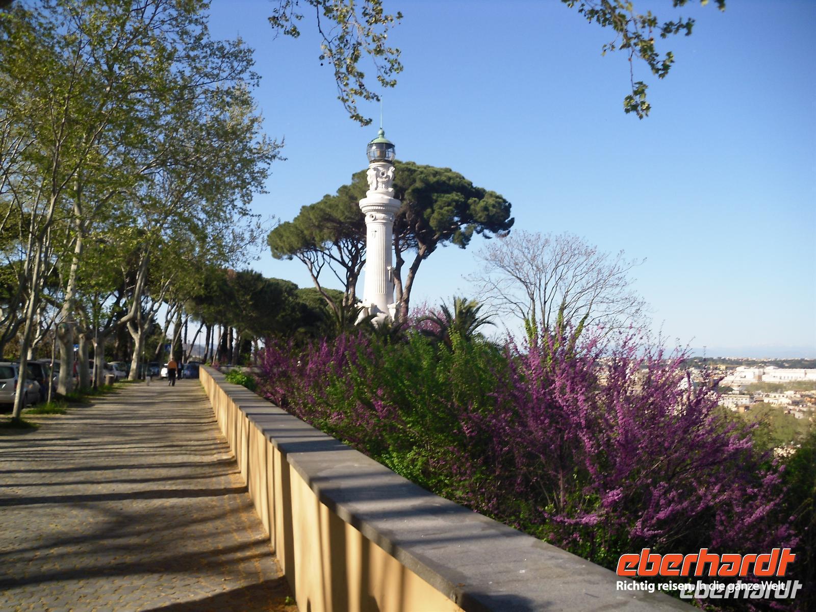durch dieses irdische Paradies, hier kann man das wahre Leben der Römer spüren, vor allem das Nachtleben. Es ist das lebendigste Viertel dieser quirligen Stadt mit enge Gassen, in denen die Menschen draußen beim Wein und guten Essen sitzen, Am Piazza Santa Maria in Trastevere lernen wir die wahrscheinlich älteste Marienkirche Roms kennen. Sie stammt aus dem 12. JH und ist größtenteils noch im Originalzustand erhalten geblieben. Ohne Agnieszka gehen wir gemeinsam noch bis hinauf zum Gianicolo auf Deutsch der Janushügel und zählt übrigens nicht zu den 7 Hügeln Roms.