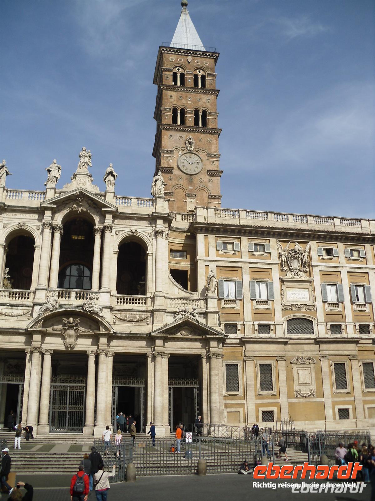 Wir wählen wieder die Metro und fahren zuerst bis zum Bahnhof Termini. Nur gut dass wir unsere Sonnenblume immer dabei hatten, ansonsten hätte der ein oder andere Reisegast nicht gewusst wie weiter im Bahnhof. Mit vereinten Kräften haben wir alle 16 Gäste durch die Baustelle gebracht, ohne Verluste. Wir laufen bis zur Kirche Santa Maria in Maggiore und hier erwartet uns schon Agnieszka. Wir erfahren vom Wunder des Schneefalls mitten im Sommer, sind fasziniert vom vielen Blattgold, was man im Inneren für die Kassettendecke verarbeitet hat und lassen die vielen Informationen zur Basilika auf uns wirken. Unter einer schlichten Grabplatte ist in dieser Kirche Gian Lorenzo Bernini begraben. Beeindruckt verlassen wir den Platz und gehen zu Fuß weiter bis zur Kirche San Carlino alle Quattro Fontane. Wir sind beeindruckt von der Baukunst, die Borromini hier mit seinem ersten eigenen Bauauftrag zeigt. Bernini, der zu den bedeutendsten Architekten und Bildhauern des Barock zählt, errichtete die Kirche Sant Andrea al Quirinale von 1658 - 1671, ein Juwel unter den kleinen Kirchen Roms. Diese Kirche diente als Hofkapelle des Könighauses und der ovale Grundriss erfuhr mit den acht Seitenkapellen eine Erweiterung. Auf unserem Weg den Spuren von Borromini und Bernini folgend, stoppen wir am Palazzo Quirinale, dem früheren päpstlichen Sommersitz und späteren