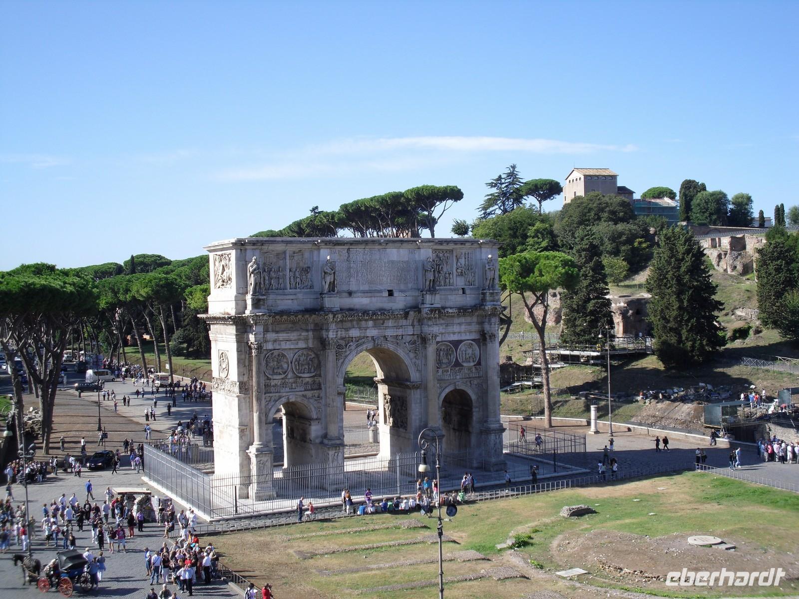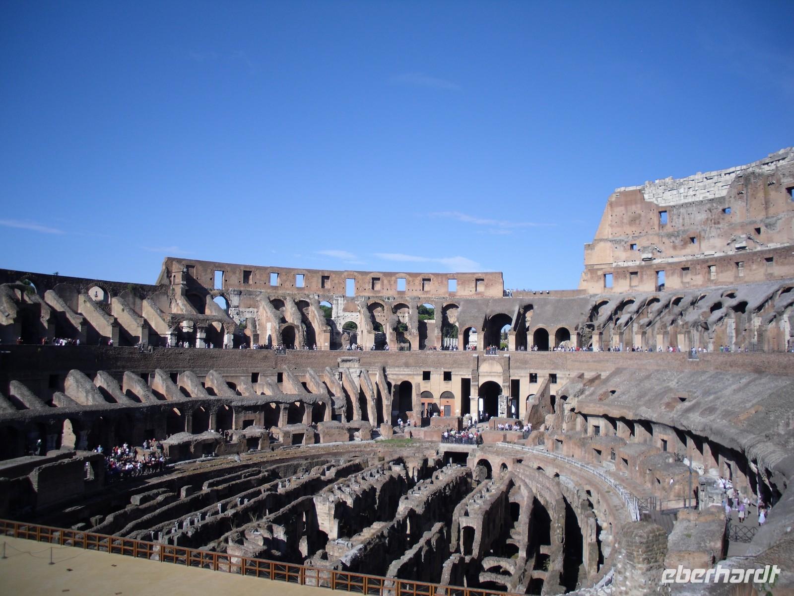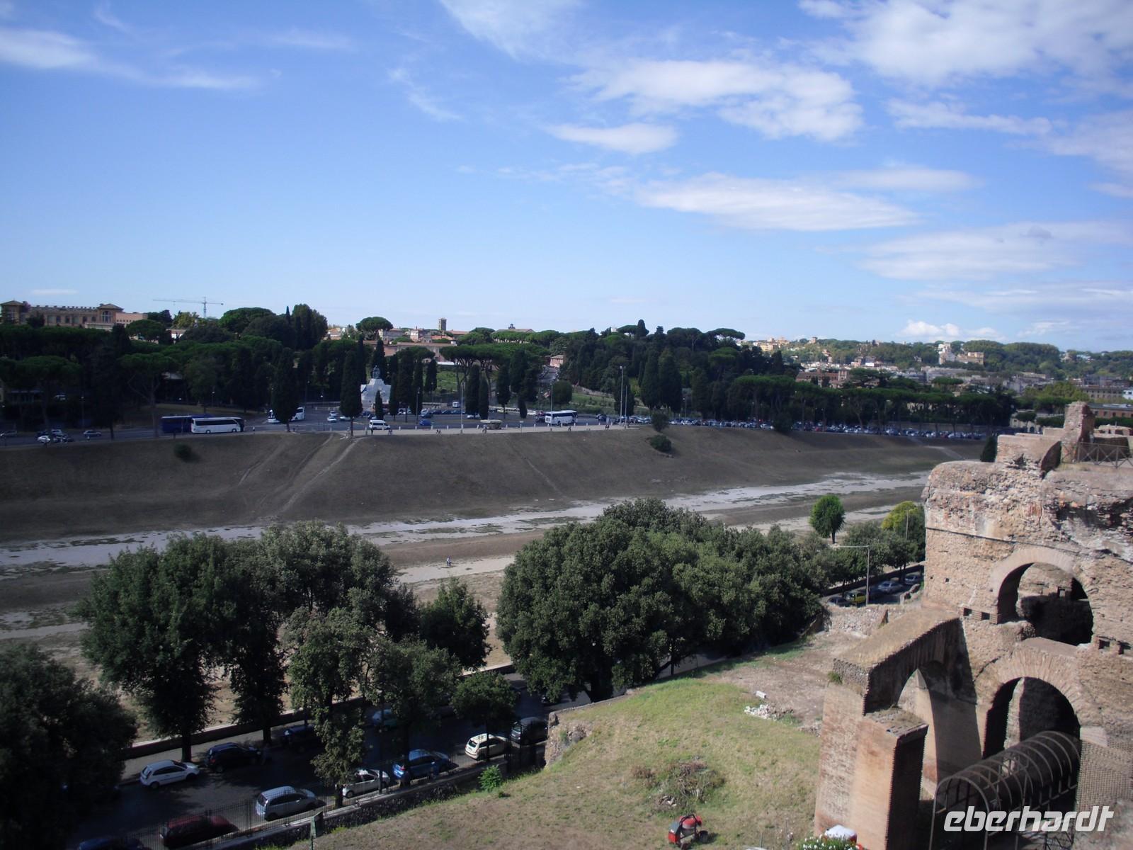 Das Kolosseum wurde von Kaiser Titus im Jahre 80 n. Chr. eingeweiht. Die Bauarbeiten dauerten acht Jahre. Die Spiele im Amphietheater umfassten vor allem Gladiatorenkämpfe und Kämpfe zwischen Gladiatoren und Tieren. Nach der Innenbesichtigung des Kolosseums geht es hinauf zum Palatino, einem der sieben Hügel des antiken Roms. Der Palatinhügel war während der Zeit der Republik nur ein Wohnviertel für Prominente, Cicero, Marcus-Antonius, Marcus Agrippa und selbstverständlich Octavianus, den zukünftigen Augustus-Caesar. Während der Zeit der Kaiser wurde der Hügel mit riesigen Palästen ausgestattet. Vom Palatinhügel aus bietet sich für uns der Blick auf den Circus Maximus. Dies ist eine riesige Anlage zwischen den Abhängen der Hügel Palatin und Aventin. Er diente vor allem den Wagenrennen.