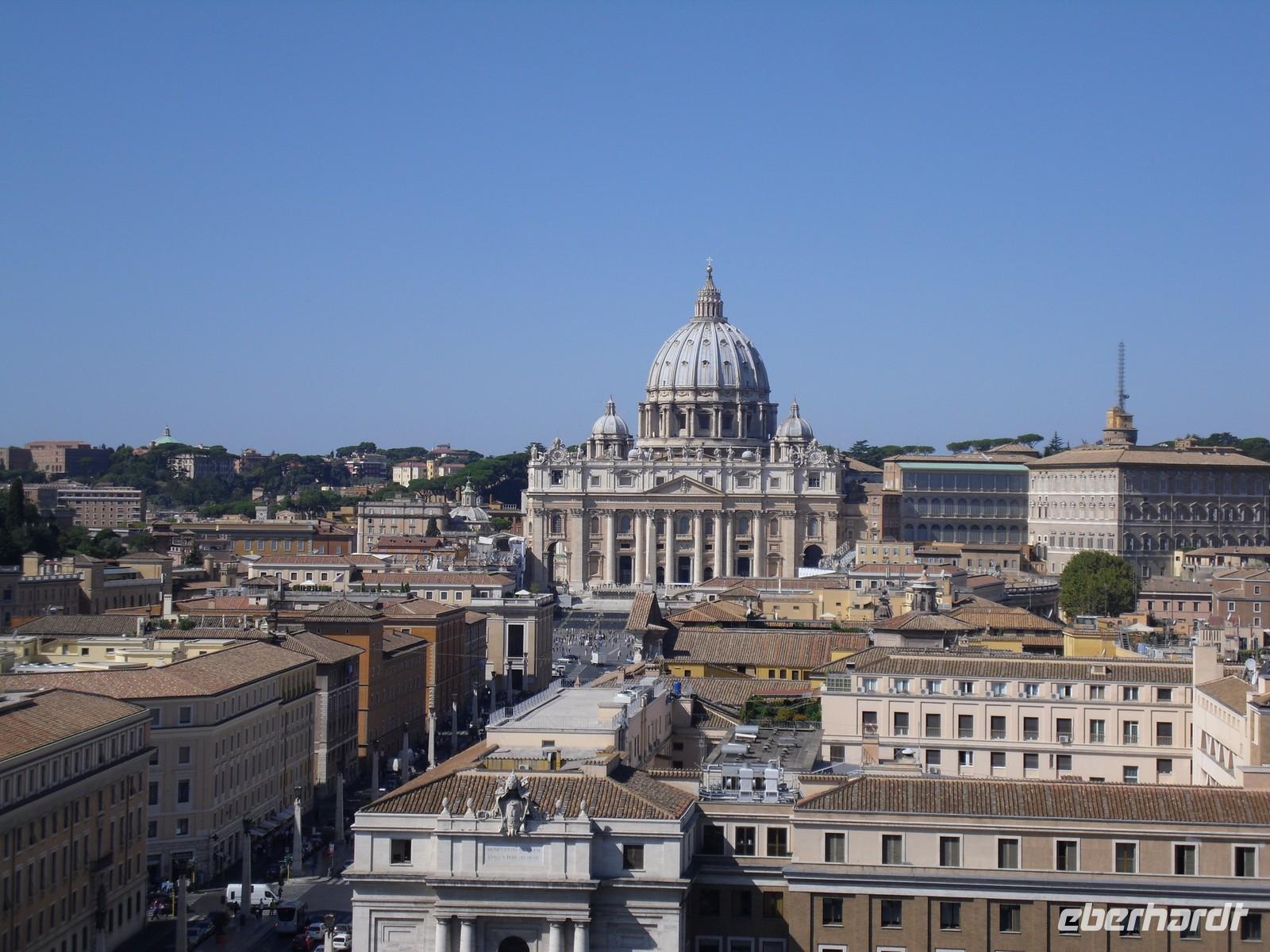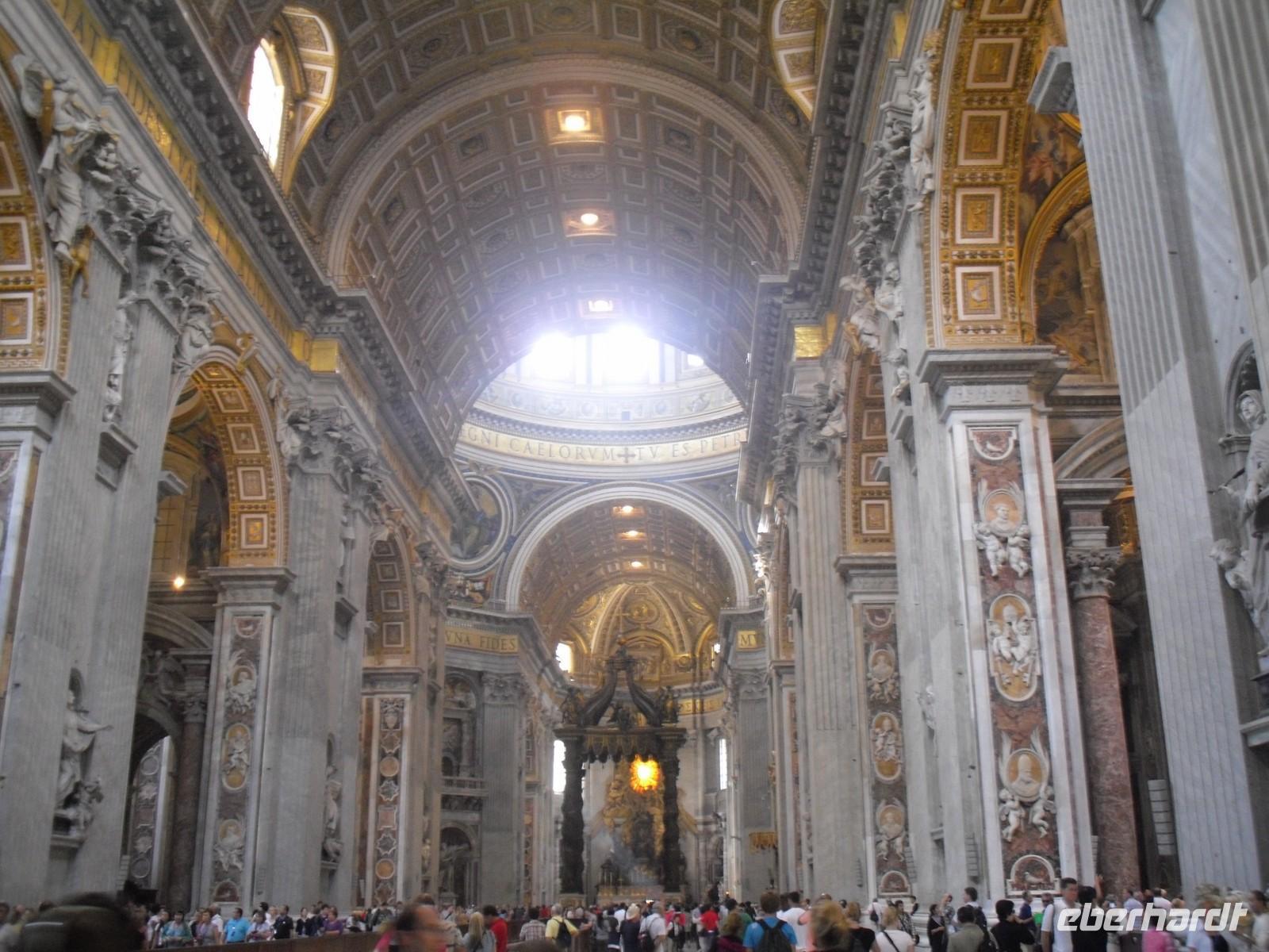 Der Petersdom ist die Kirche der Superlative, Zentrum der Christenheit und Ziel der Pilger aus aller Welt. Wer Rom besucht, ob gläubiger Christ, kunsthistorisch Interessierter oder einfach auf Entdeckungstour, kommt am Wahrzeichen der ewigen Stadt nicht vorbei. Heute steht der Petersdom mitten in der europäischen Metropole. Doch zu Kaiser Neros Zeiten lag das Herzstück des Bauwerks, das Grab des Apostels Petrus, noch weit draußen vor der Stadt. Der Grundstein wurde am 18. April 1506 gelegt und es wurde rund 120 Jahre lang gebaut. Für die Gläubigen in aller Welt gilt Sankt Peter als das Heiligtum der römisch-katholischen Kirche. Vom Herzstück des Vatikans spendet der Papst übrigens am Ostersonntag und am 1. Weihnachtsfeiertag seinen Segen "Urbi et Orbi" - der Stadt und dem Erdkreis. Am Petersdom haben wir etwas Freizeit und so manch einer nutzt die Gelegenheit und steigt hinauf auf die Peterskuppel, hier wird man übrigens mit einem grandiosen Blick auf die Stadt belohnt!
