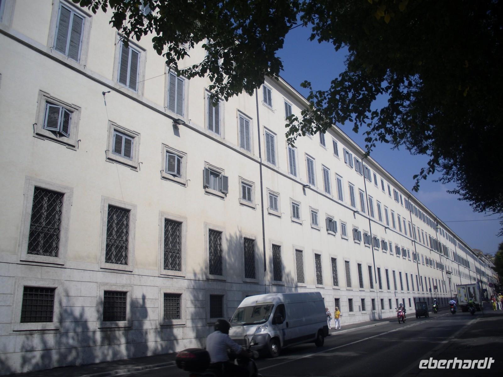 In Rom angekommen, erreichen wir am frühen Abend unser 4-Sterne-Hotel "Palazzo Carpegna". Dieses Hotel liegt in einer Parkanlage abseits der Via Aurelia, also im Westen Roms und unweit des Vatikans. Trotz der ruhigen Lage hat man von hier aus sehr gute Möglichkeiten, mit öffentlichen Verkehrsmitteln innerhalb von wenigen Minuten das Stadtzentrum Roms zu erreichen.