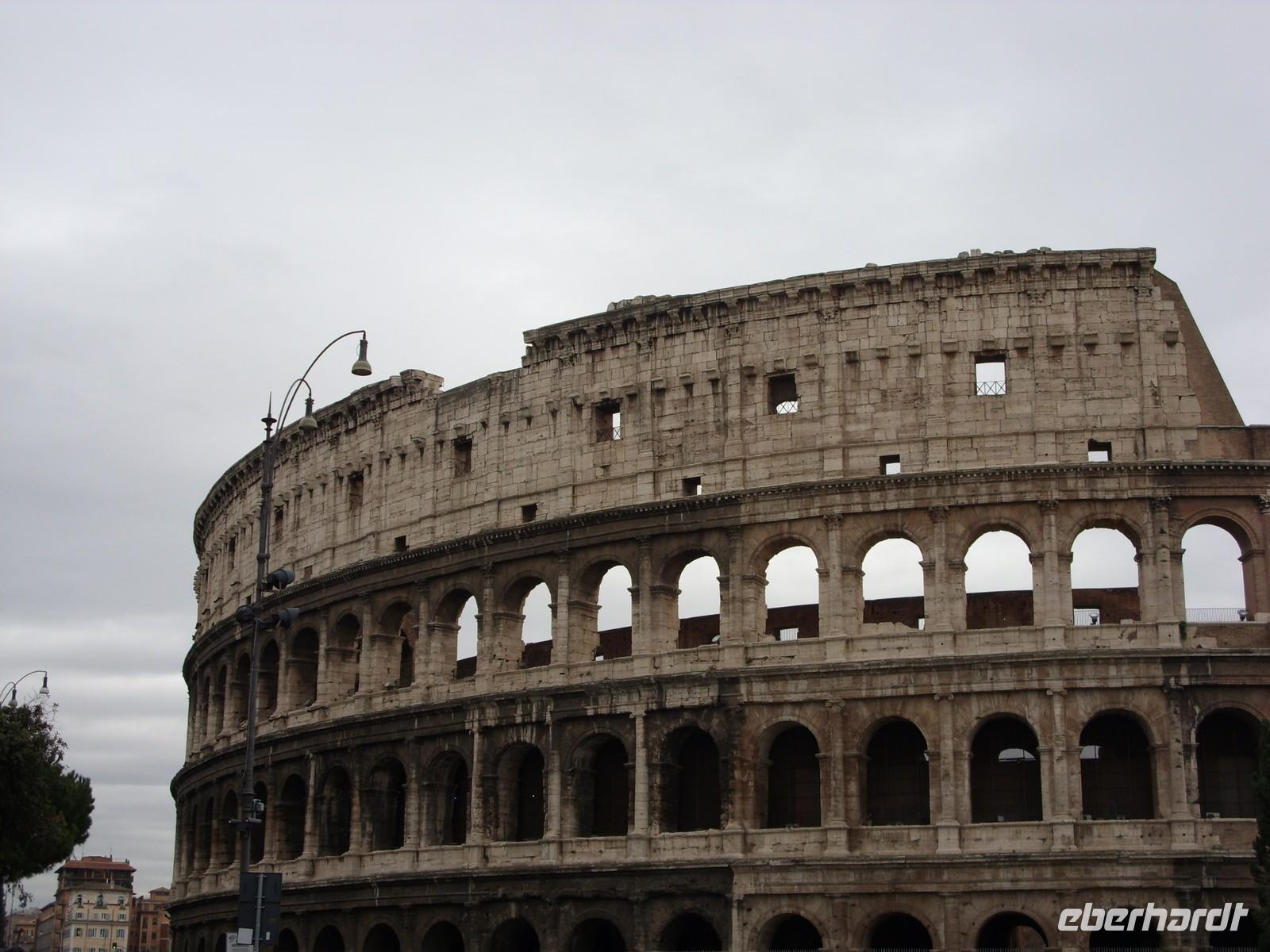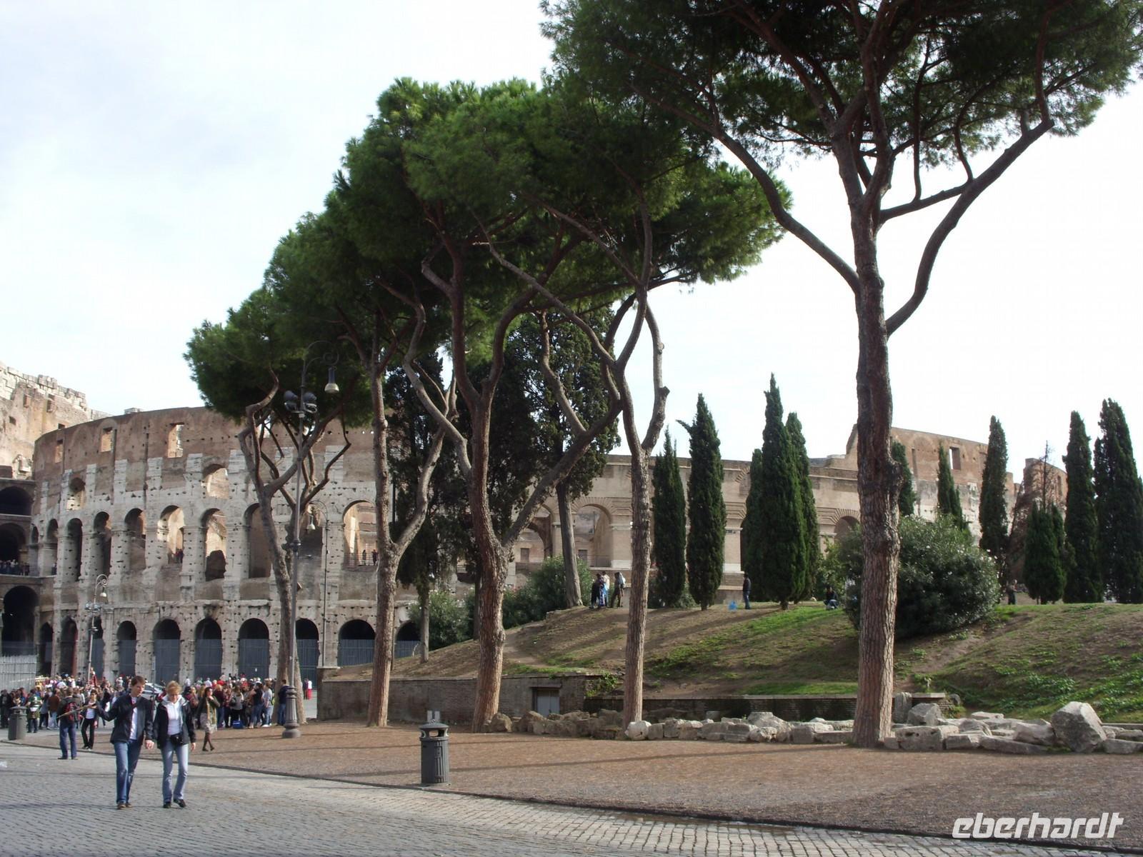 Nach Ankunft der zweiten Fluggruppe machten sich am Nachmittag dann einige Gäste mit mir zusammen auf den Weg ins Zentrum - Rom und seine Sehenswürdigkeiten wollten erobert werden!!! Ein erstes Mal machten wir auch so gleich Bekanntschaft mit den öffentlichen Verkehsmitteln, denn die hatte ich mir ausgesucht um eine kleine Stadtrundfahrt der etwas anderen Art zu machen. So fuhren wir mit moderner U-Bahn, historischer Straßenbahn und überfülltem Bus einmal quer durch die Stadt bis wir schließlich am weltberühmten Kolosseum ankamen. Dort gerieten wir das erste Mal ins Staunen und genossen für etwa eine halbe Stunde