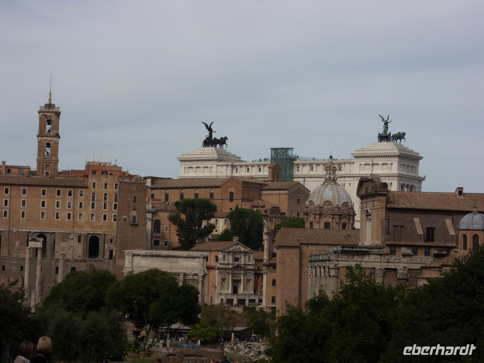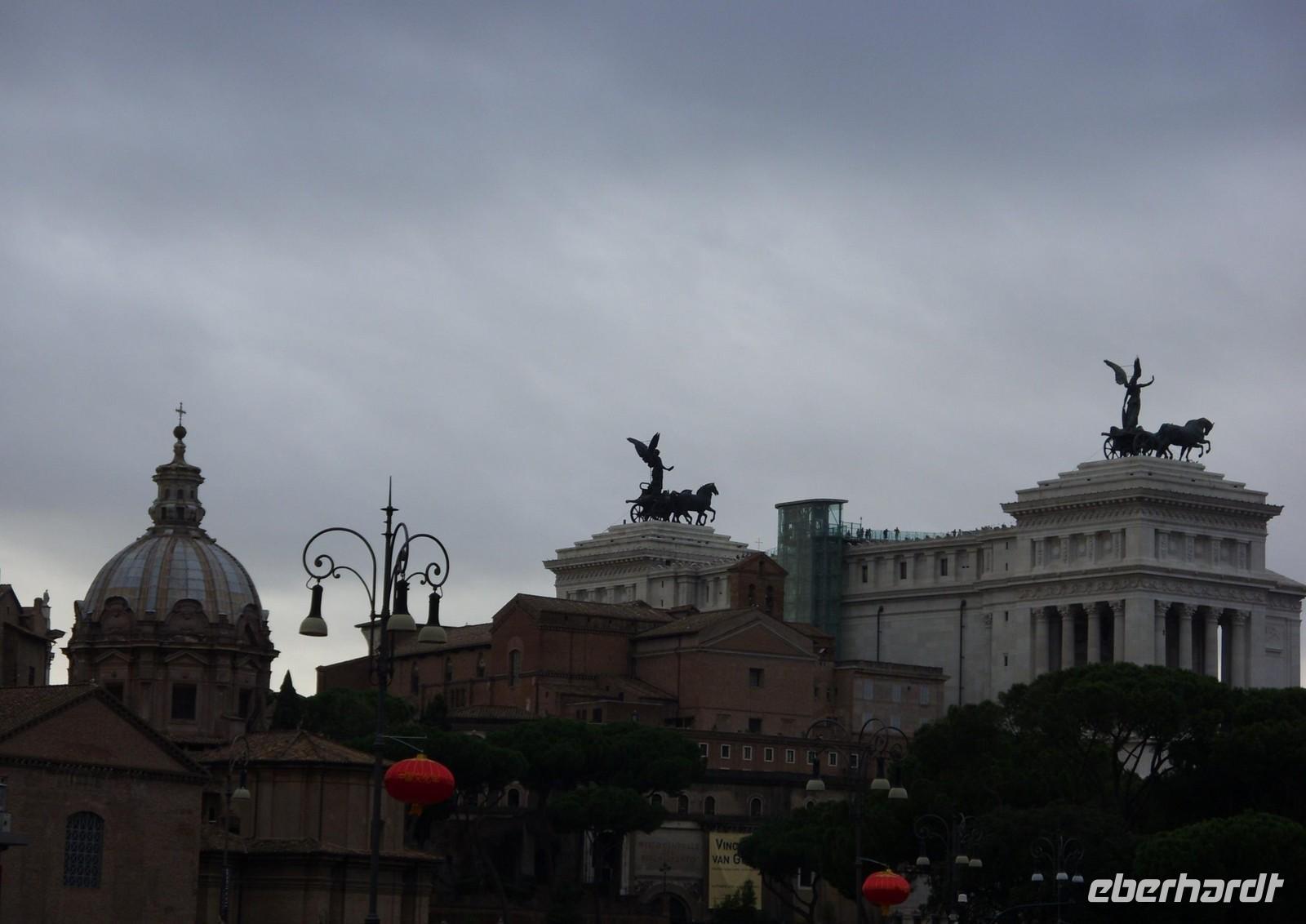 Am Nachmittag spazierten wir dann die berühmte Via dei Fori Imperiali entlang, passierten die Forum Romanum links und Kaiserforen mit der Trajansäule rechts, grüßten Cäsar und "erkletterten" schließlich den Kapitolshügel. Hier erwartete uns nun die Besichtigung der Kapitolinischen Museen mit eine der bedeutendsten Kunstsammlungen Roms. Hier zeigten wir uns besonders beeindruckt von der Kapitolinischen Wölfin mit Remus und Romulus, die ja als Stadtgründer der Legende gelten. Auch verschiedene Venus-Statuen waren einen besonderen Blick wert und natürlich - nicht zu vergessen - das Original des Marc-Aurel-Standbildes steht heutzutage nicht mehr auf dem Kapitolsplatz sondern hat eine ganze Halle in den Museen