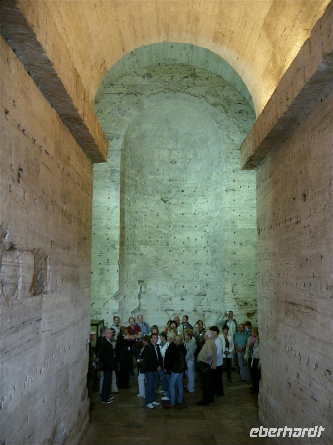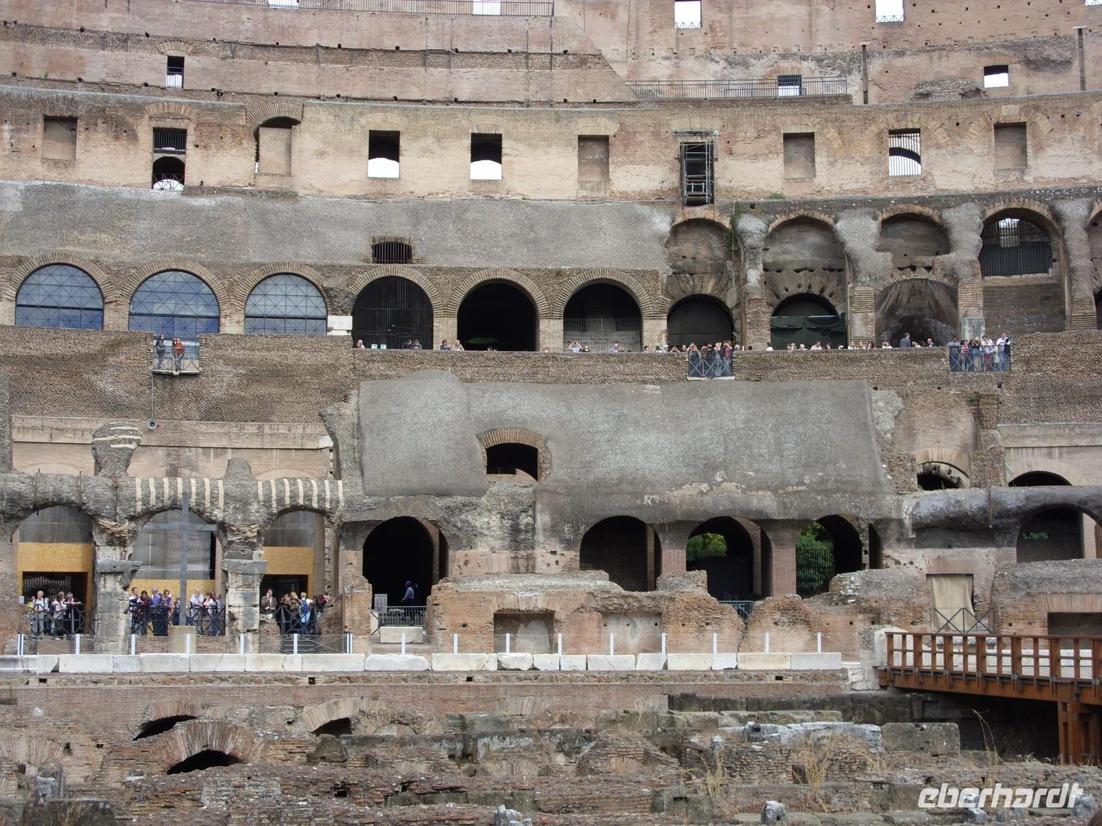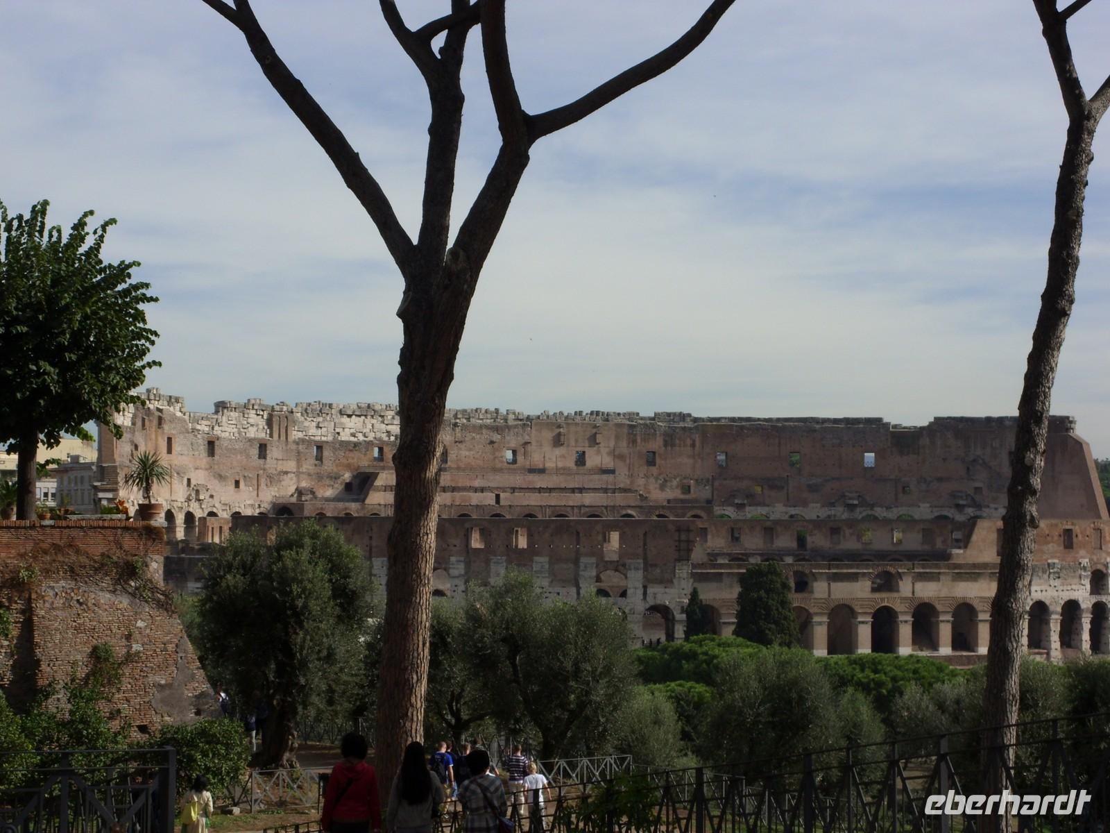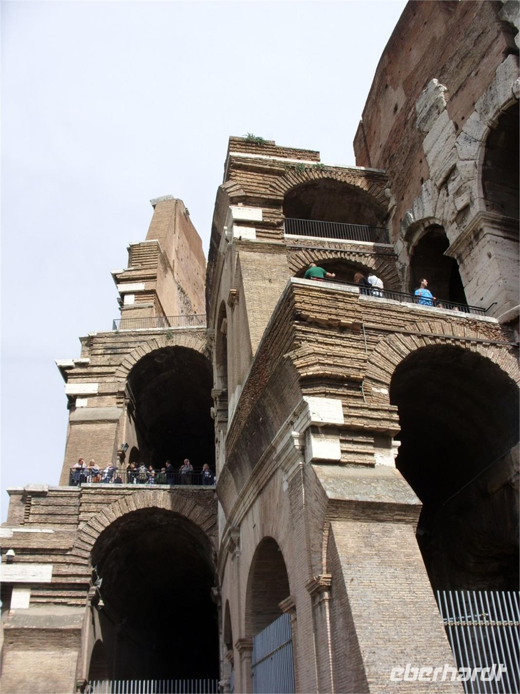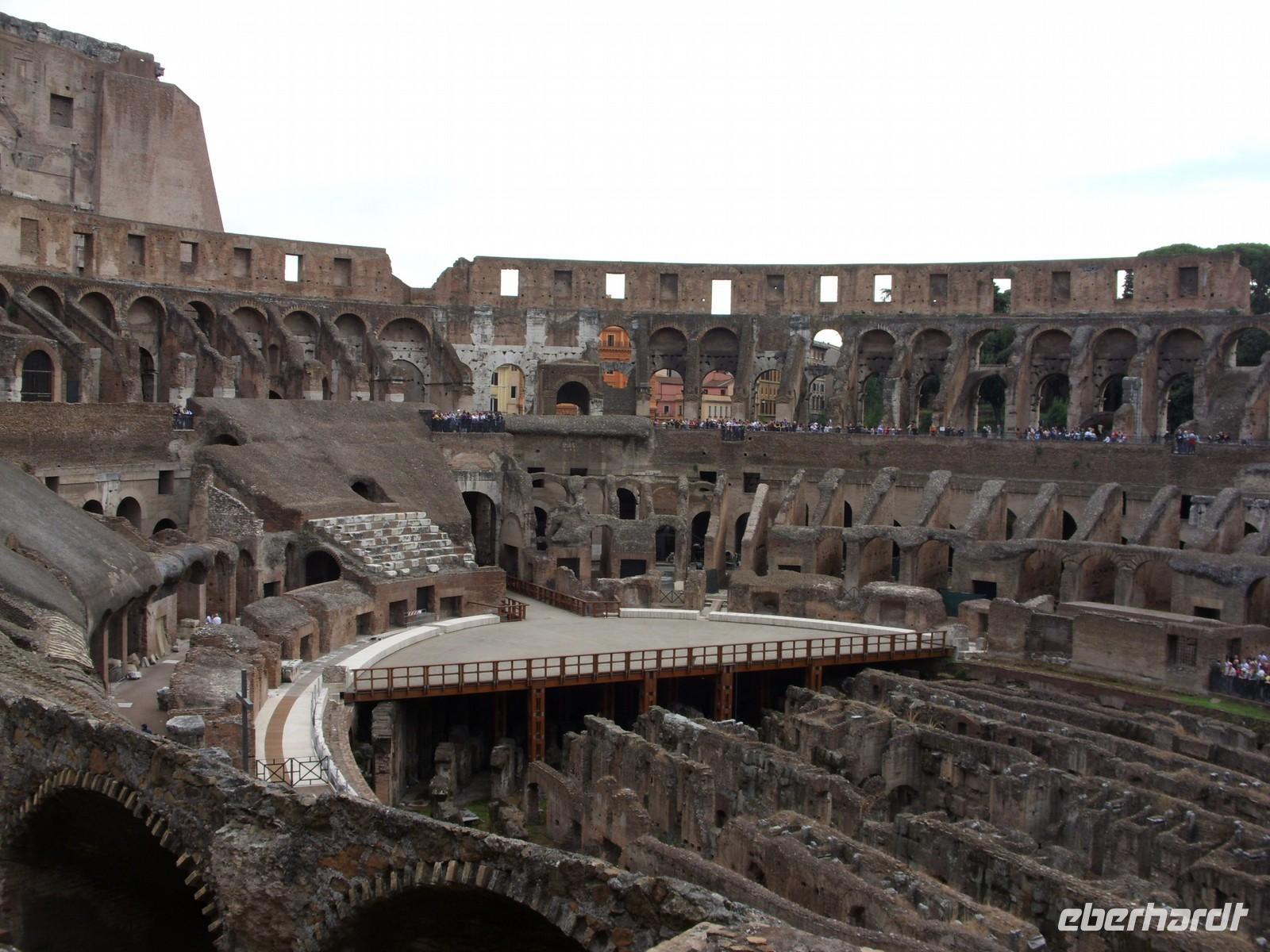 Nächster Höhepunkt des antiken Roms war für uns alle die nähere Besichtigung des Kolosseums. Vorbei an der langen Warteschlange gelangten wir recht zügig ins Innere dieser Anlage, wo einst Platz für 55 000 Zuschauer gewesen sein soll. Nicht nur die Maße (188 m lang x 156 m quer x 57 m hoch) des Baus sondern auch die Vorrichtung des Sonnensegels war etwas fast Unvorstellbares, was im Jahr 80 n. Chr. mit tagelangen Festspielen eröffnet worden war. Seitdem sind die Massen begeistert - man konnte förmlich die Anfeuerungsrufe der Römer hören, die anlässlich der Gladiatoren-Spiele ins Kolosseum gekommen sind.