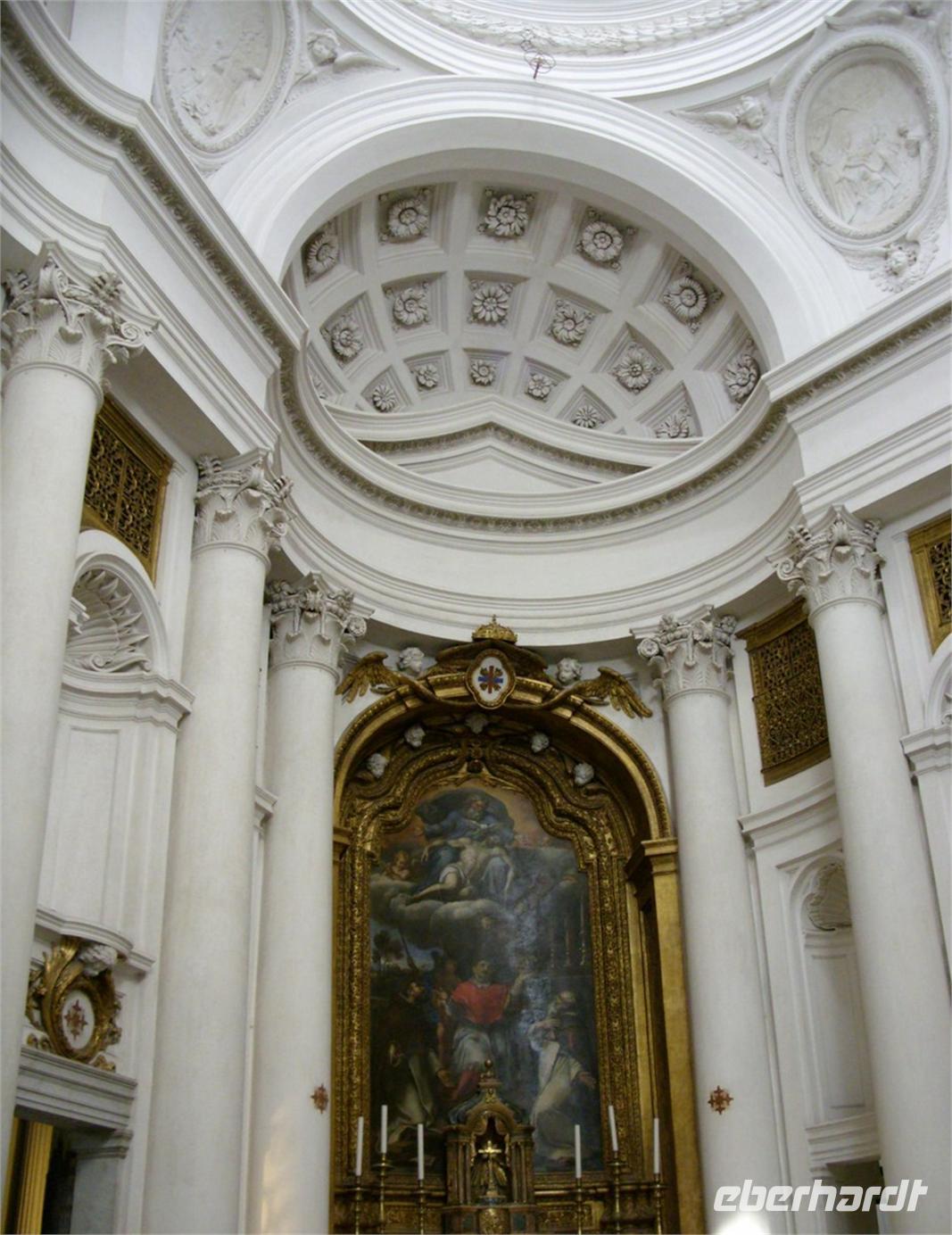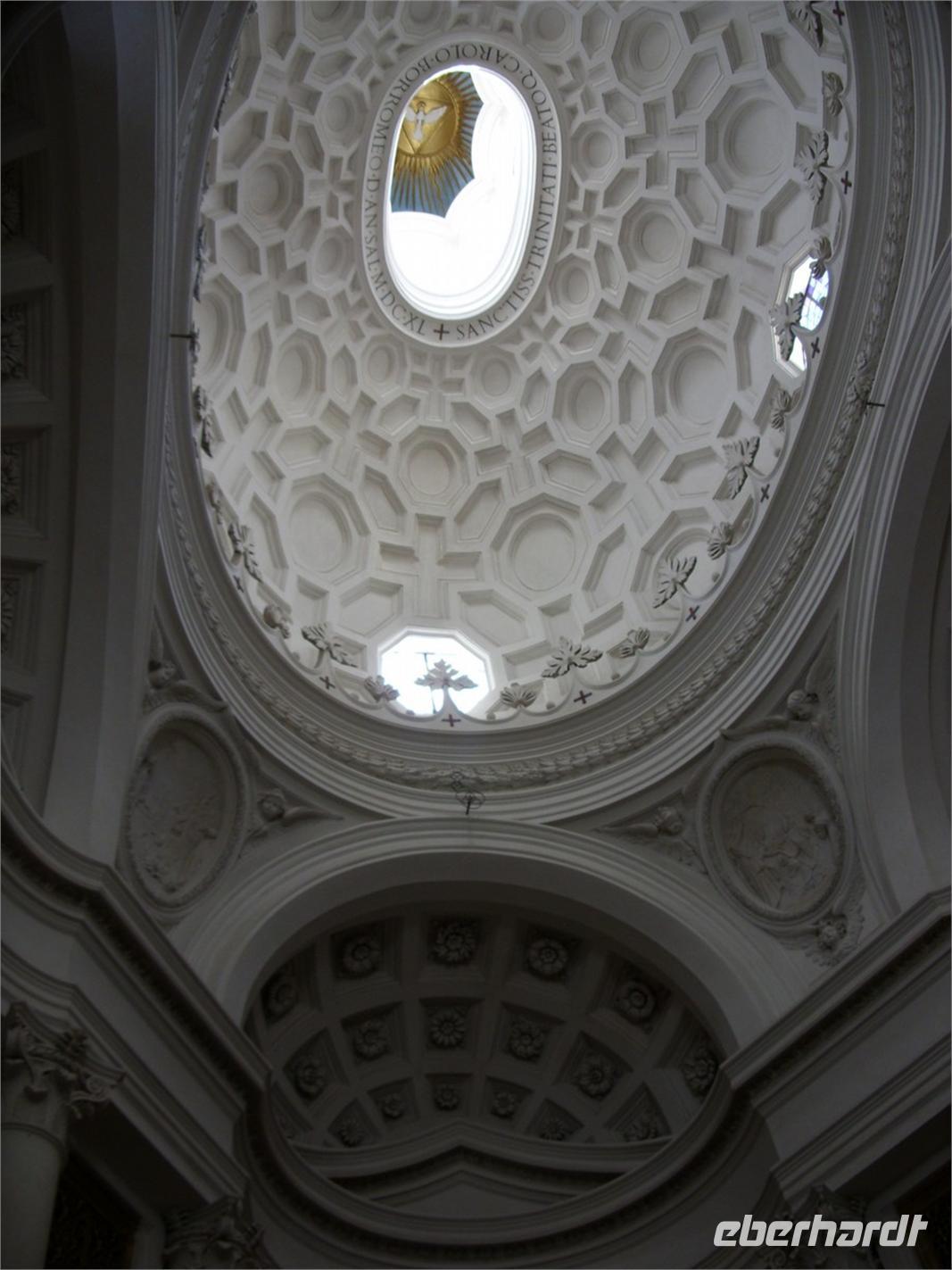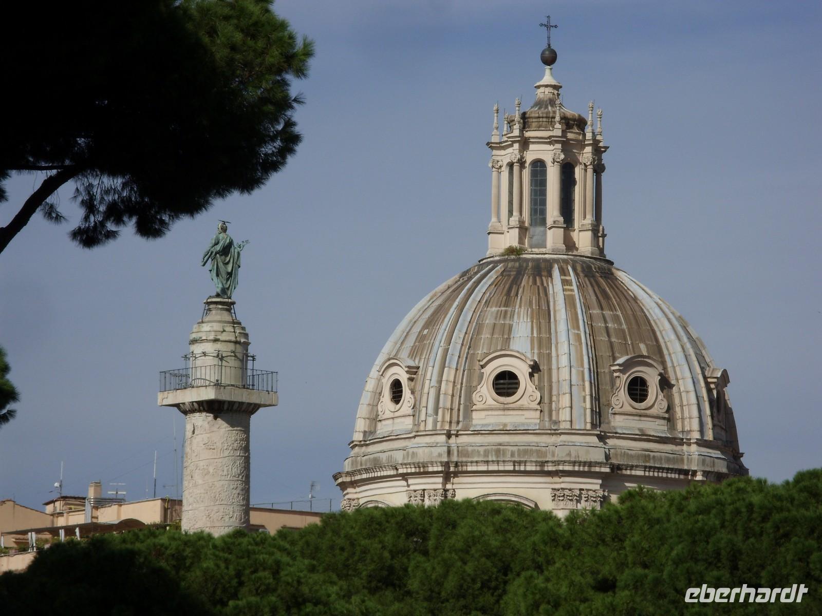 Nachdem wir das Hauptbauwerk des Esquilin-Hügels ausgiebig besichtigt hatten, wanderten wir weiter zum Viminale-Hügel, passierten dort das Innenmisterium Italiens und erreichten schließlich den dritten Hügel namens Quirinale. Bei unseren weiteren Kirchenbesichtigungen standen nun zwei italienische Künstler im Vordergrund - Gian Lorenzo Bernini (1598-1680) und Francesco Borromini (1599-1667) - , die beide ihre eigene Art der Architekturkunst entwickelt hatten. Zunächst staunten wir in der eher einfach und schlichten Kirche San Carlo alle Quattro Fontane, benannt nach den vier Brunnen an der Straßenkreuzung. Bei diesem Bau waren vor allem Borrominis Vorliebe für geschwungene Formen, Bewegung und Harmonie gut zu erkennen. Im Anschluss besuchten wir die fast nebenan liegende Kirche Sant' Andrea al Quirinale, ein Spätwerk von Bernini, mit dem er der Überlieferung nach voll und ganz zufrieden sein gewesen sein soll. Sonst galt er wohl eher als sehr anspruchsvoller Künstler, dem nichts zufrieden stellte.