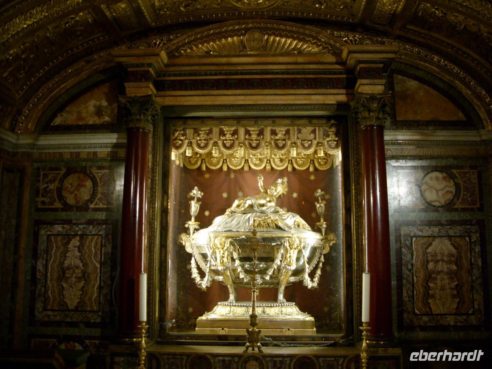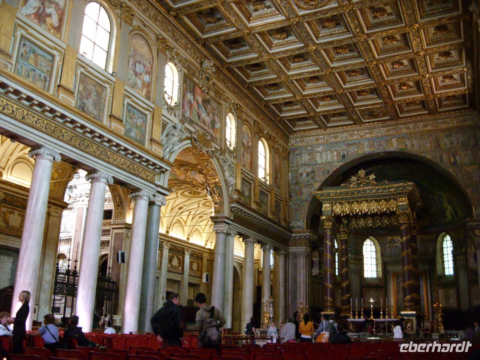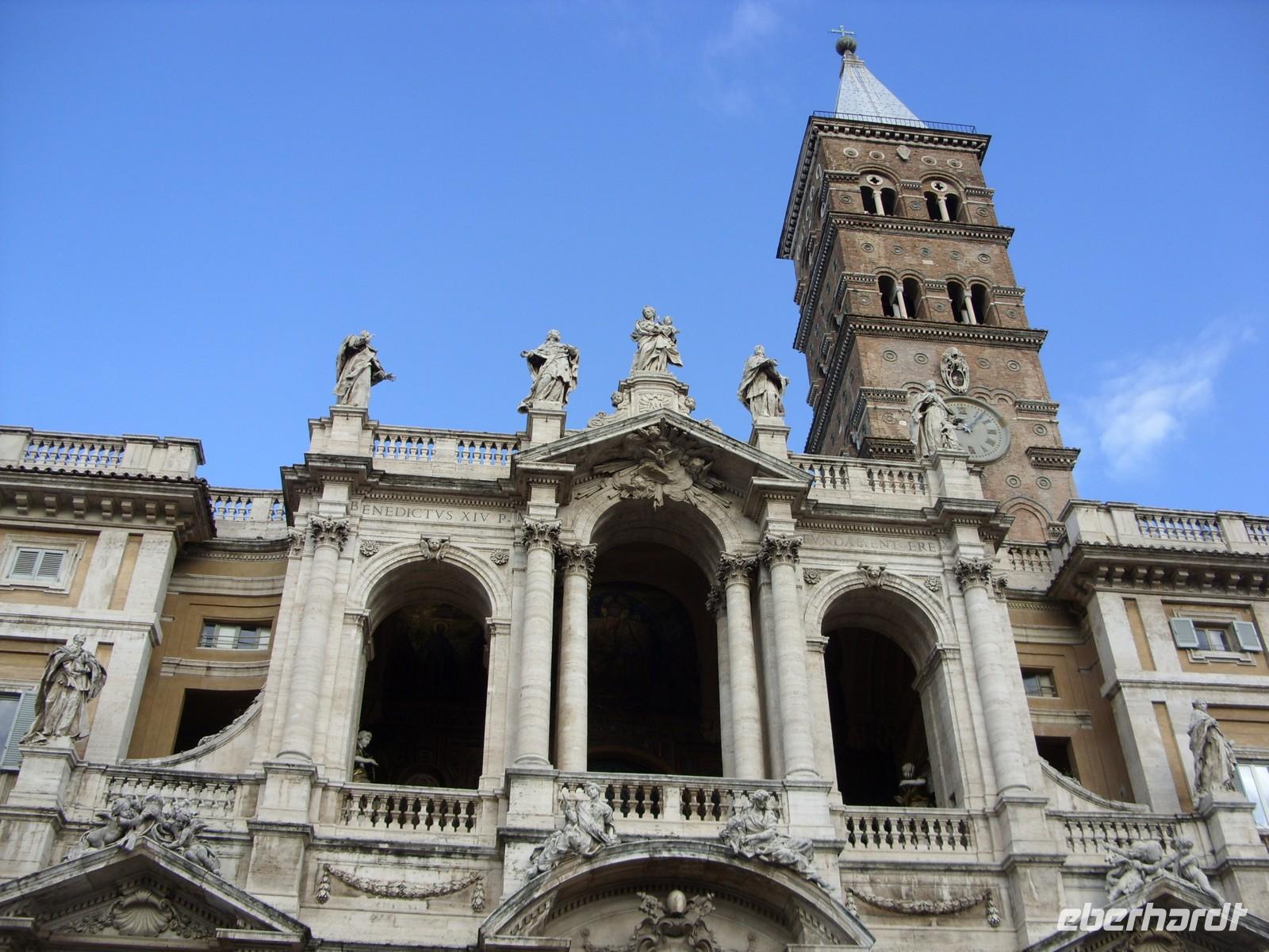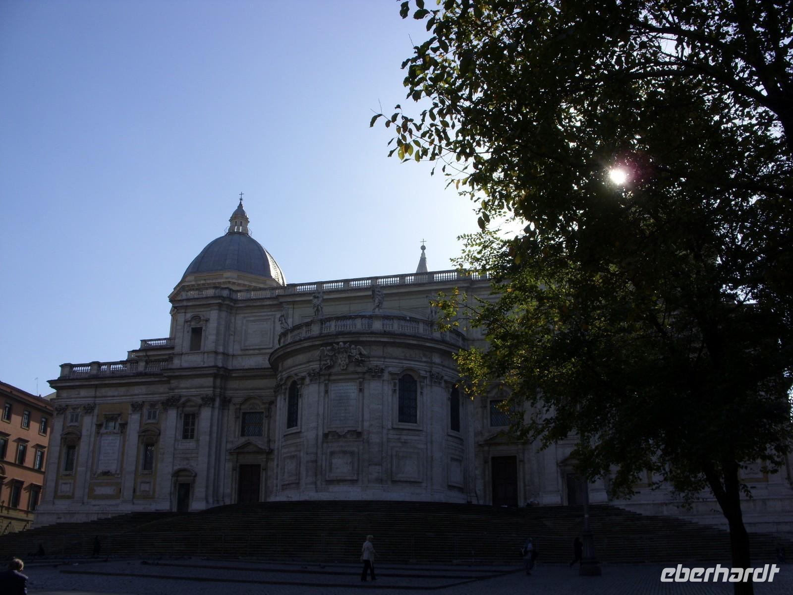 Frisch ausgeschlafen und gestärkt trafen wir uns am Mittwochmorgen bereits um 8.00 Uhr an der Rezeption und nahmen sogleich die U-Bahn bis zum Hauptbahnhof Termini. Von hier aus waren es nur wenige Minuten zu Fuss zum Treffpunkt mit Maria Theresa. Sie erwartete uns an eine der vier Patriarchatsbasiliken Roms, der Santa Maria Maggiore. Eine Besichtigung dieser urchristlichen Basilika stand als erstes auf dem Programm. Wussten Sie, dass diese Kirche die einzige Roms ist, wo seit dem 5. Jh. täglich eine Messe gelesen wird? Interessant ist auch der Enstehungsgrund für den Bau der Santa Maria Maggiore: im 4. Jh. ließ die Mutter Gottes es mitten im August an dieser Stelle schneien. In Erinnerung an dieses Schneewunder erbaute man die Kirche und feiert auch heute am 5. August jeden Jahres noch das Fest der "Madonna delle Neve".