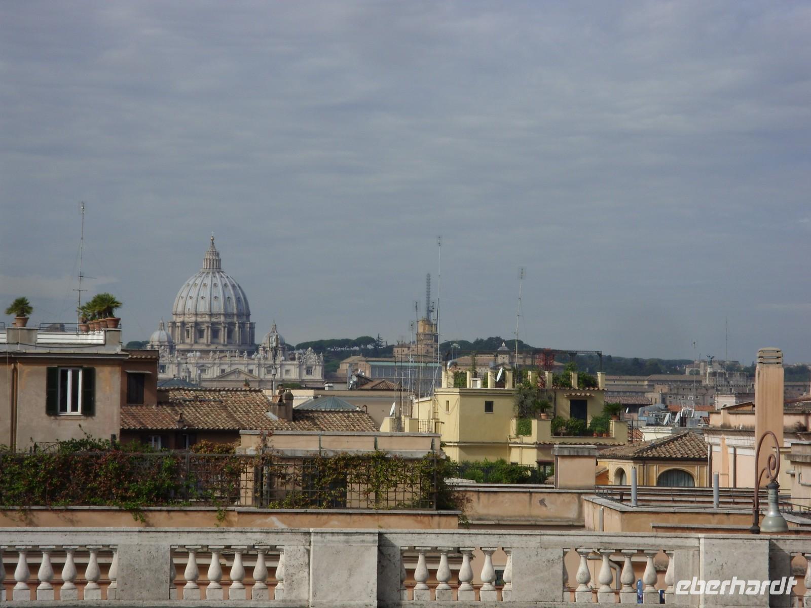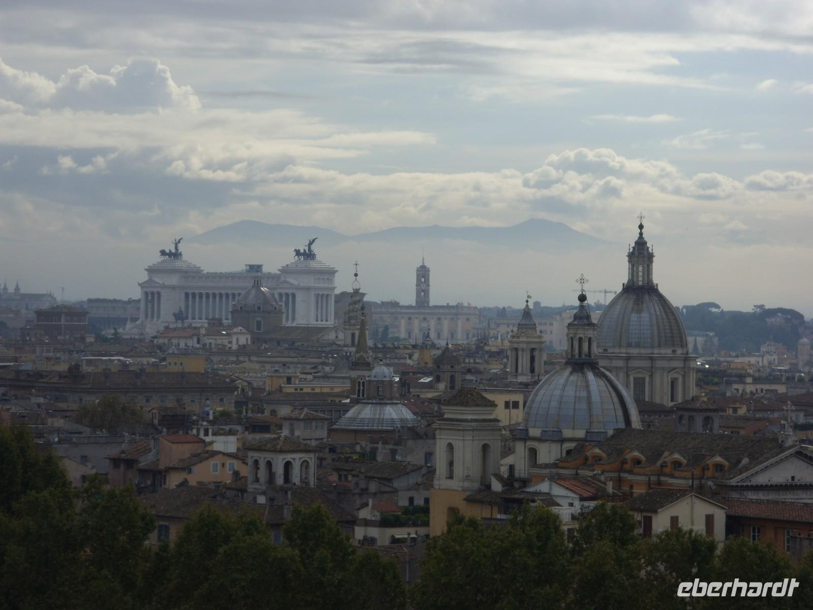 Am Nachmittag hiess es nun Abschied nehmen von Maria Theresa, die uns die vergangen drei Tage so einfühlsam und höchst interessant durch die "Ewige Stadt" geführt hatte. Da der Tag noch jung war, nahmen die meisten von uns noch den Gianicolo-Hügel in Angriff. Oben angekommen hatten wir ein erneutes Mal eine herrliche Sicht auf Rom. Vorbei am Brunnen Acqua Paola und dem Denkmal für Guiseppe Garibaldi wandten wir uns wieder dem Petersplatz zu, von wo aus jeder den Weg zurück ins Hotel fand.