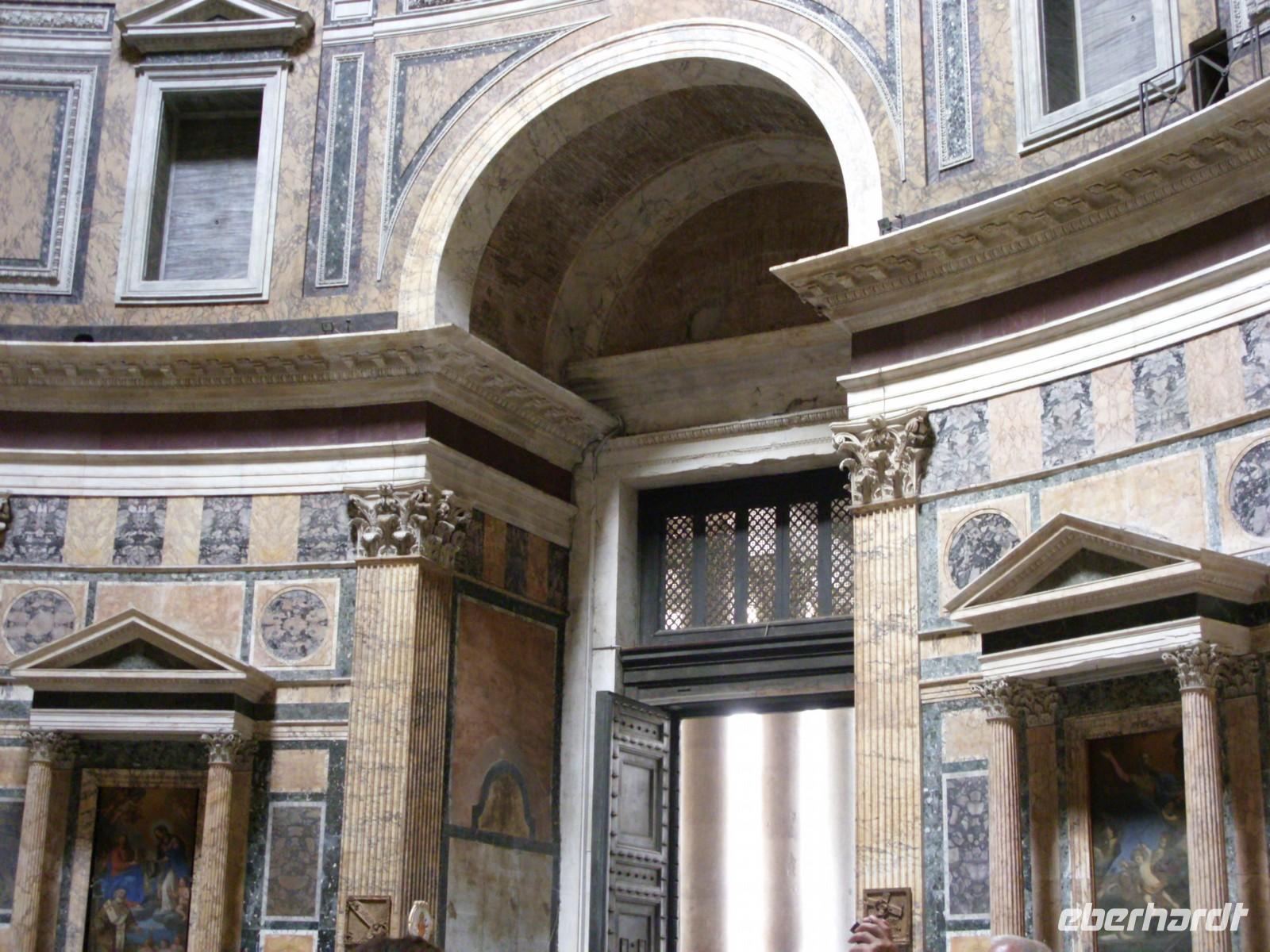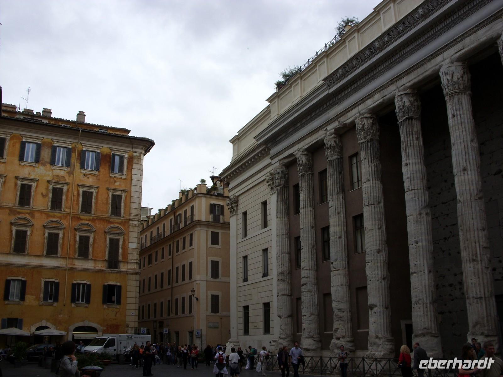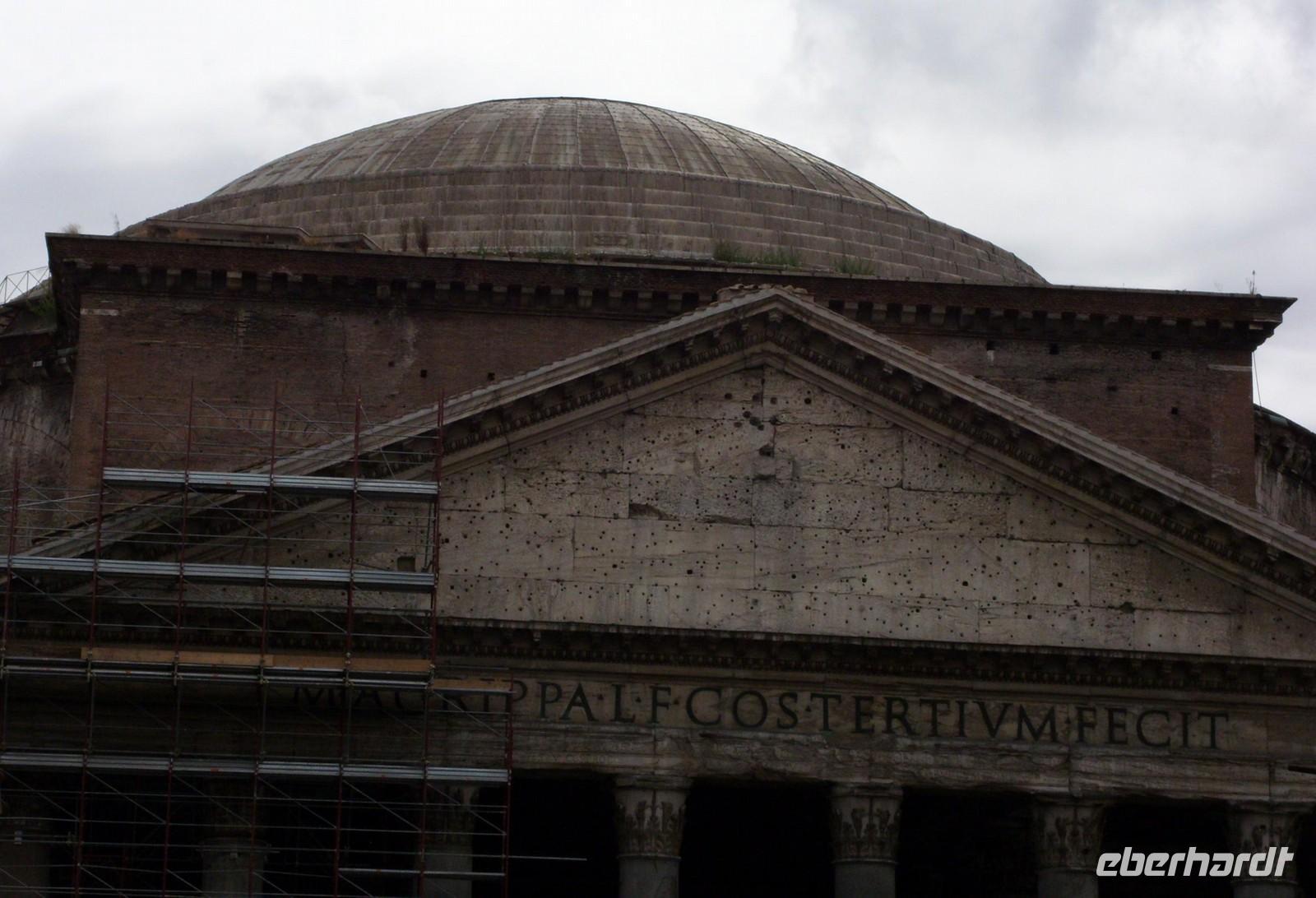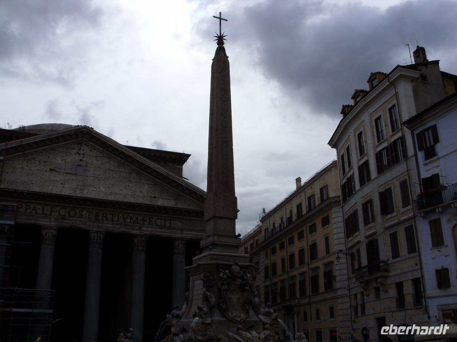 Nach einer einstündigen Pause erwarteten uns nun im Folgenden weitere kleine Gassen der Innenstadt Roms. Ziel unseres Spaziergangs war dabei das Pantheon - ein "allen Göttern geweihter Tempel" und eines der besterhaltenen Bauwerke der "Ewigen Stadt". Grund dafür ist vor allem die Nutzung des Pantheons als christliche Kirche bereits seit der Spätantike. Ein beeindruckendes Bauwerk! Nach einer kurzen Innenbesichtigung schlenderten wir durch die schicken und teuren Einkaufsstraßen der Stadt bis wir den beliebten Treffpunkt, die Spanische Treppe, erreichten. Einmal auf den Stufen sitzen und die Menschen beobachten ... Dafür war nun Zeit, denn den Rest des Nachmittags stand uns zur freien Verfügung. Mit einem Teil der Gäste spazierte ich dann weiter an der Villa Medici vorbei bis zum Pincio am westlichen Rand des Park Borghese. Von diesem bei Jugendlichen beliebten Platz hatten wir nochmals einen herrlichen Blick über die Dächer von Rom und den direkt unter uns liegenden Piazza del Popolo, dem Platz des Volkes, welcher oftmals für Kundgebungen und Veranstaltungen jeglicher Art genutzt wird. Hier befanden wir uns zudem direkt an der Pforte, wo einst tausende Pilger in der Stadt Rom ankamen.