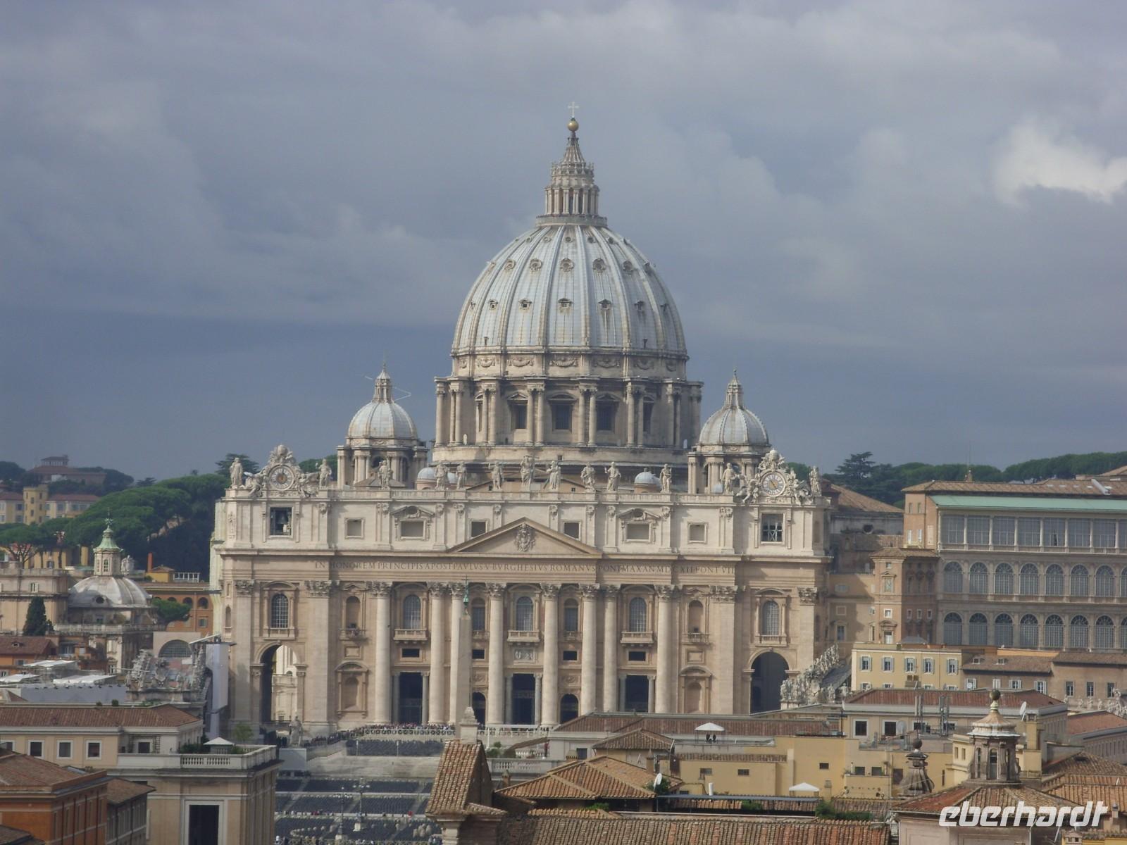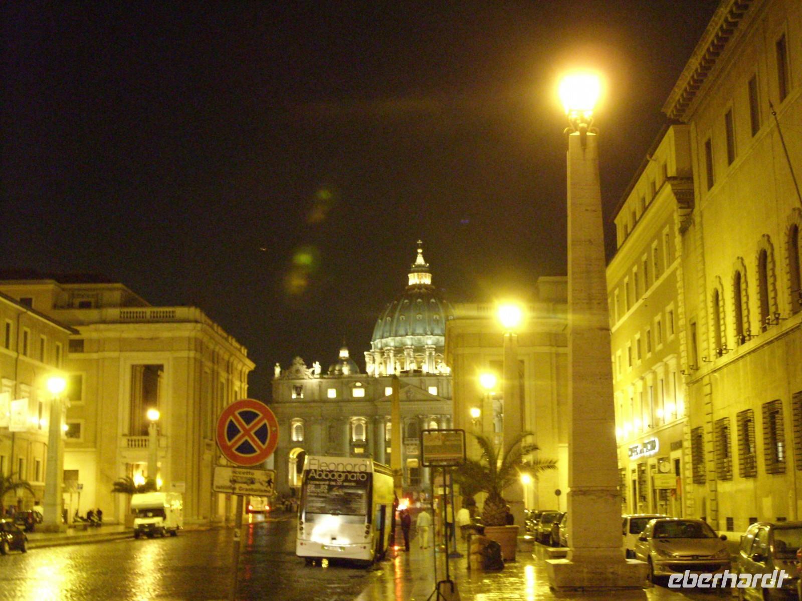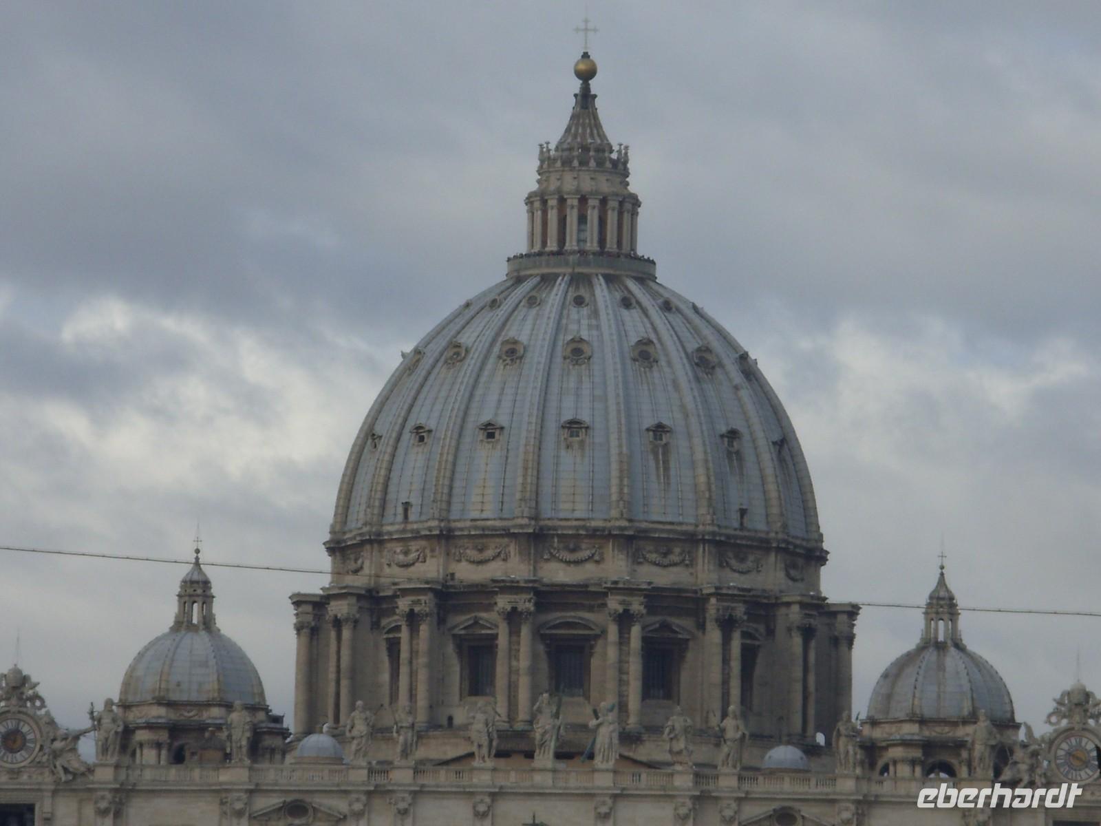 Letzter Programmpunkt des heutigen Tages war schließlich der überwältigende Petersdom, der einst über dem Grab des Apostels Simon Petrus errichtet wurde. Trotz der beachtlichen Höhe von 132,5 m der Kuppel des Petersdomes und der riesigen Grundfläche von 15 160 m² erschien es uns immer noch unvorstellbar, dass in dieser Kirche an besonderen Feiertagen des christlichen Kalenders fast 20 000 Gläubige Platz finden sollen. Bei einer nächsten Übertragung im Fernsehen werden wir sicher mit ganz anderen Augen schauen!
