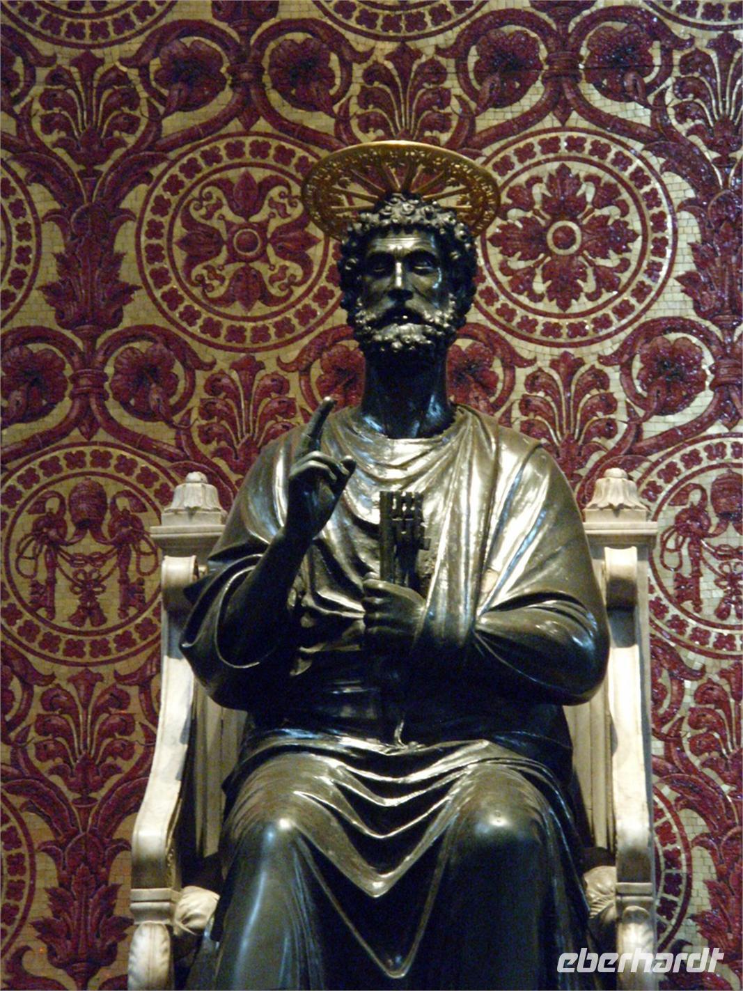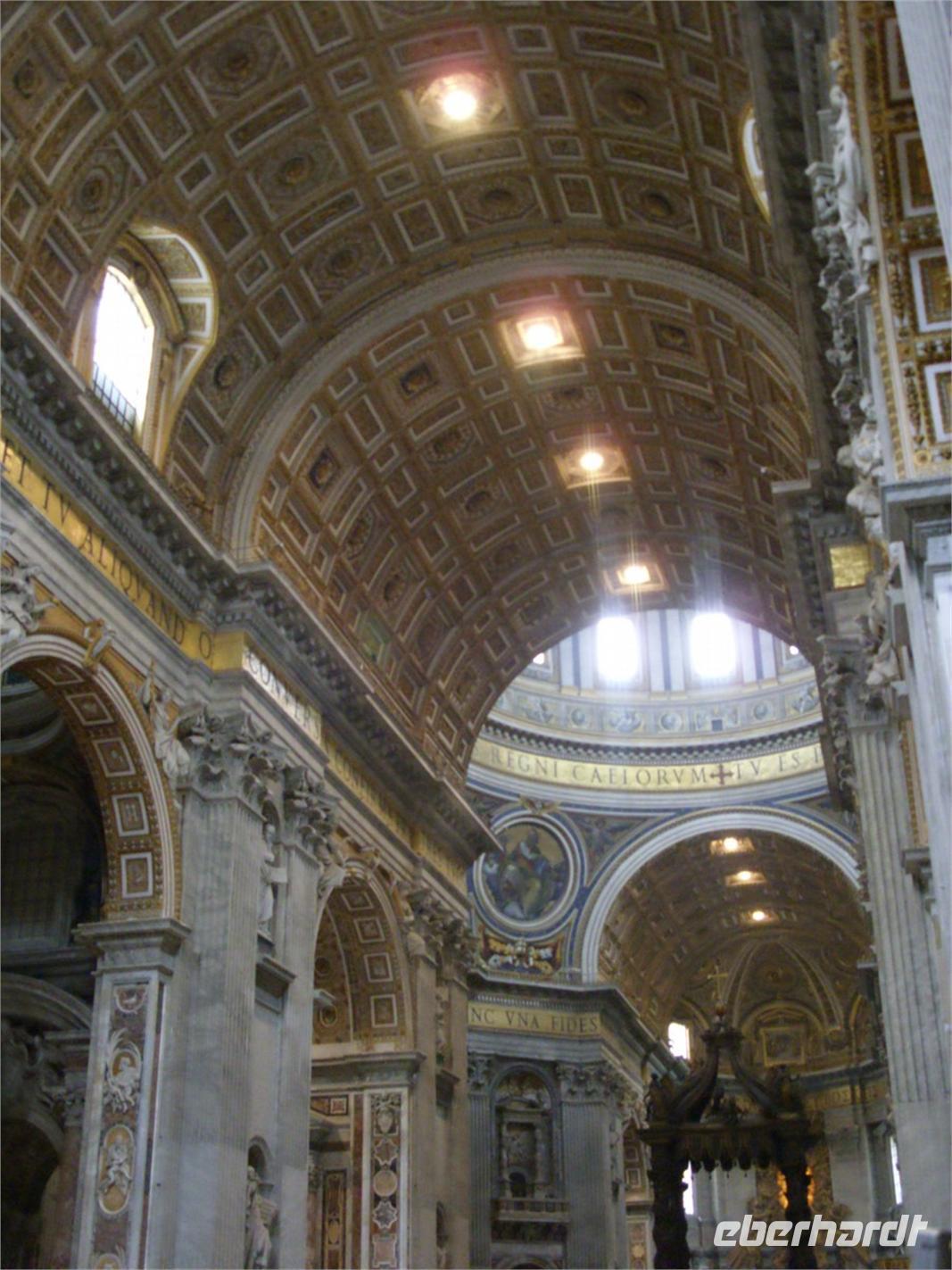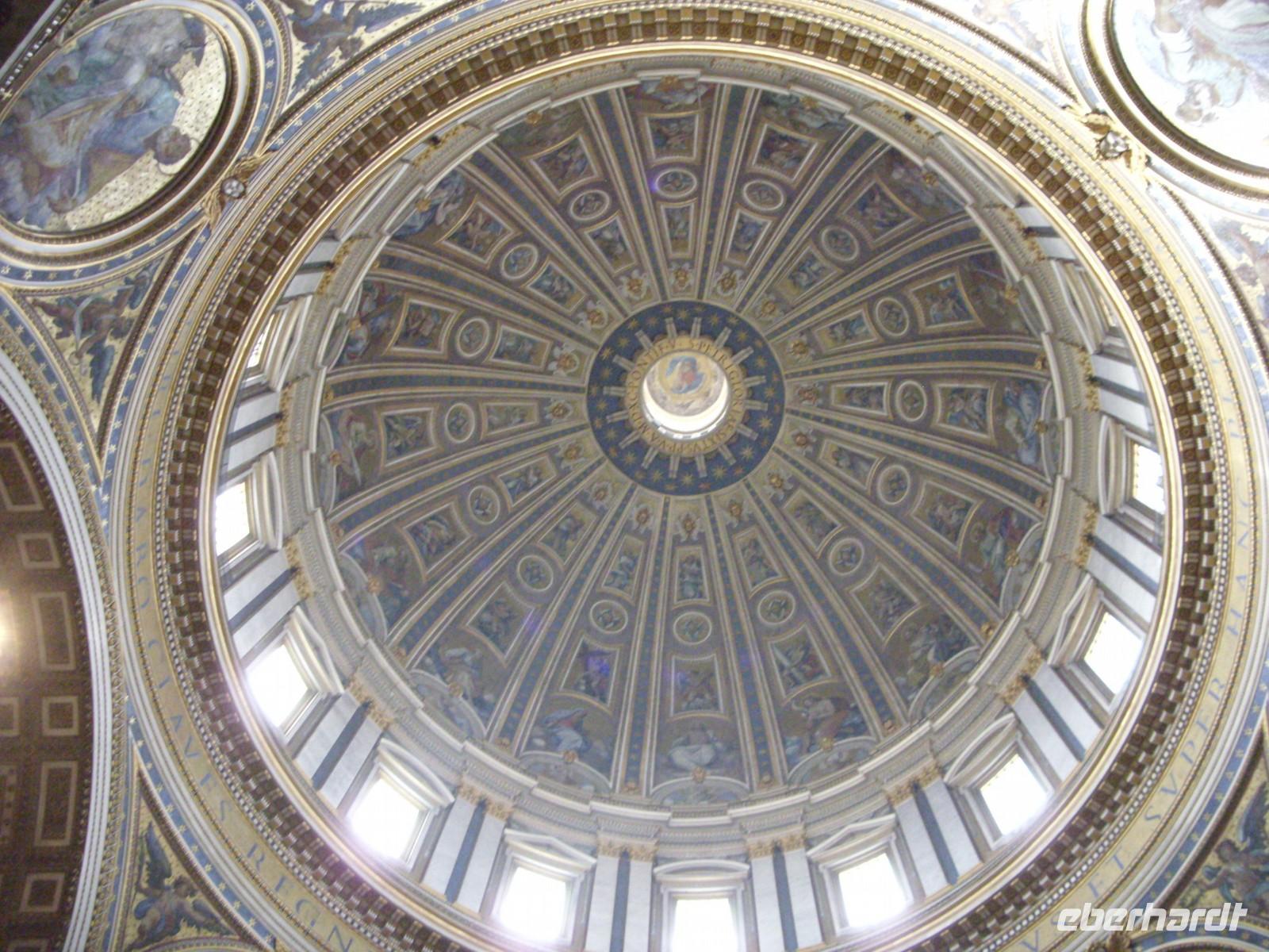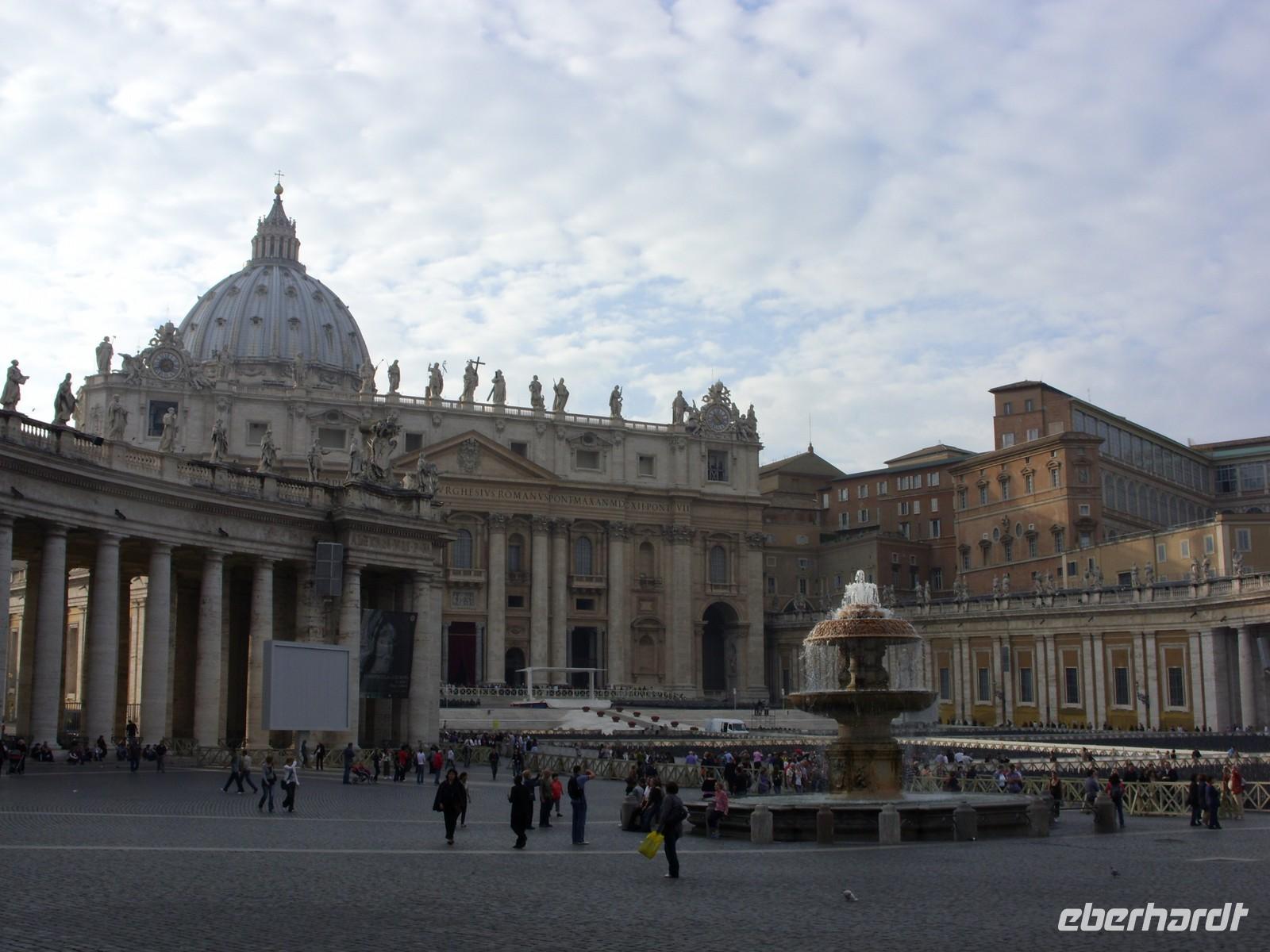 Letzter Programmpunkt des heutigen Tages war schließlich der überwältigende Petersdom, der einst über dem Grab des Apostels Simon Petrus errichtet wurde. Trotz der beachtlichen Höhe von 132,5 m der Kuppel des Petersdomes und der riesigen Grundfläche von 15 160 m² erschien es uns immer noch unvorstellbar, dass in dieser Kirche an besonderen Feiertagen des christlichen Kalenders fast 20 000 Gläubige Platz finden sollen. Bei einer nächsten Übertragung im Fernsehen werden wir sicher mit ganz anderen Augen schauen!
