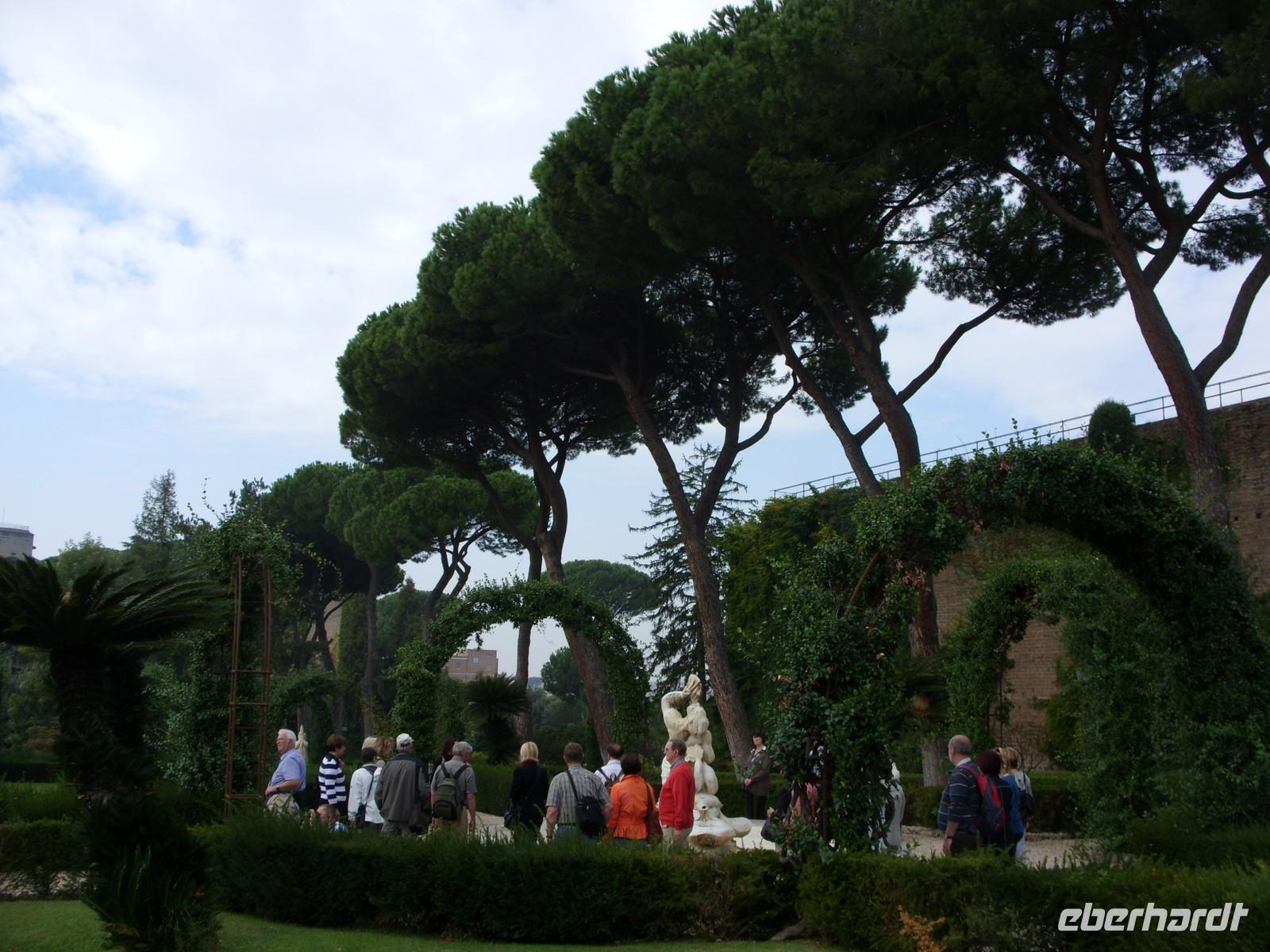 Endlich, endlich erwartete uns am heutigen Freitag der Vatikan!!! Zunächst fuhren wir ein letztes Mal mit der U-Bahn und trafen uns mit einer für uns neuen örtlichen Reiseführerin namens Chiara. Nachdem wir alle Hürden der Sicherheitskontrolle, des Ticketkaufs und der Vergabe der neuen Audioguides genommen hatten, konnte es losgehen. Wir waren alle gespannt, was uns in den nächsten Stunden in der päpstlichen Welt erwarten sollte. Zunächst erklärte uns Chiara an einem Model die Ausdehnung der Vatikanstadt. Anschließend besuchten wir die Vatikanischen Gärten und spazierten genau dort entlang, wo auch gern das geistliche Oberhaupt der christlichen Welt seine Nachmittage verbringt. Wir staunten nicht nur über seltene Pflanzen oder alte, große Bäume sondern ließen uns auch die verschiedenen Geschenke an die Päpste erklären. Die Parkanlage war voll mit Statuen und Monumenten - überall gab es eine kleine Geschichte zu berichten!