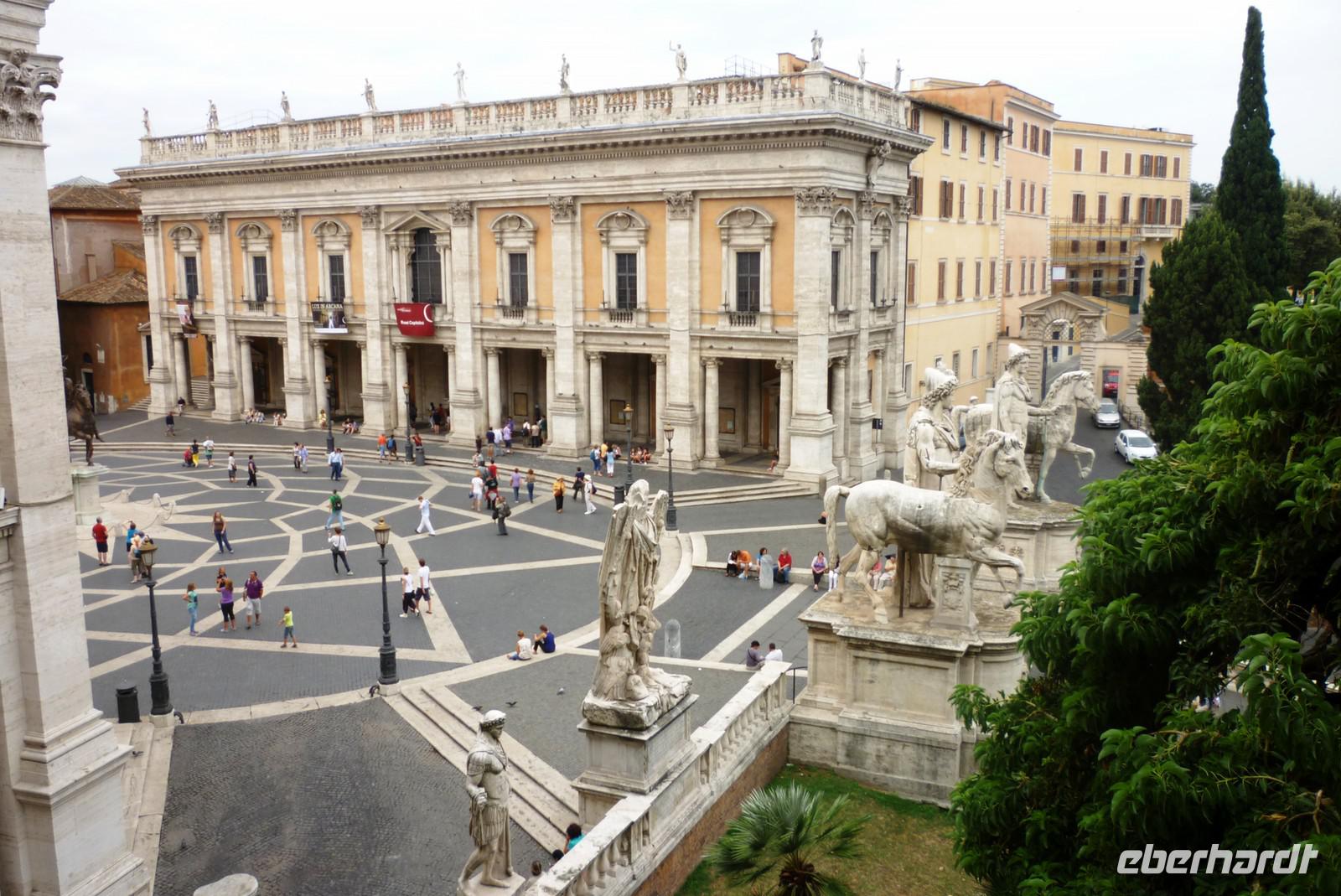 Die Reisegruppe Eberhardt traf gegen Mittag in Rom ein und der sprichwörtlich präzise Abholservice von Bonanni-Express ermöglichte es uns, schon gegen 12 Uhr im Hotel zu sein. Alle Müdigkeit war bald verflogen und alle Gäste schlossen sich meinem Vorschlag an, einen ersten Spaziergang durch die Altstadt zu unternehmen. Für die meisten noch etwas ungewohnt, fuhren wir mit der Metro zur Piazza di Spagna und mit dem Blick auf das grandiose Architekturensemble war für alle Gäste klar: wir sind im Zentrum Roms angelangt! Nach ausgiebiger Fotopause und dem Aufstieg zur Kirche Trinita dei Monti führte uns anschließend der Weg über die Via del Babuino geradewegs zur Piazza del Popolo, einem der schönsten Plätze Roms. Schon allein durch seine Ellipsenform bringt er den Betrachter ins Wirbeln. Die sogenannten Schwester-Kirchen Santa Maria dei Miracoli und Santa Maria in Monte Santo, der Obelisk, das Stadttor, der palastartig angelegte Aufgang zum Pincio-Hügel und die tiberseitig errichtete halbkreisförmige Mauer mit Neptun und Tritonen binden den Platz ein und ordnen die Sinne. Johann Wolfgang Goethe betrat Rom hier am 1. November 1786 und wohnte in der Via del Corso 18, unserem nächsten Ziel. Bei einem Eis diskutierten wir über die Italiensehnsucht Goethes. Anschließend spazierten wir die Via di Ripetta entlang, bis zum Augustus-Mausoleum und dem Museum der ARA PACIS AUGUSTAE, dem Augustus gewidmeten Altar des Friedens. Nach einer Espresso-Pause und Einkäufen kehrten wir ins Hotel zurück.