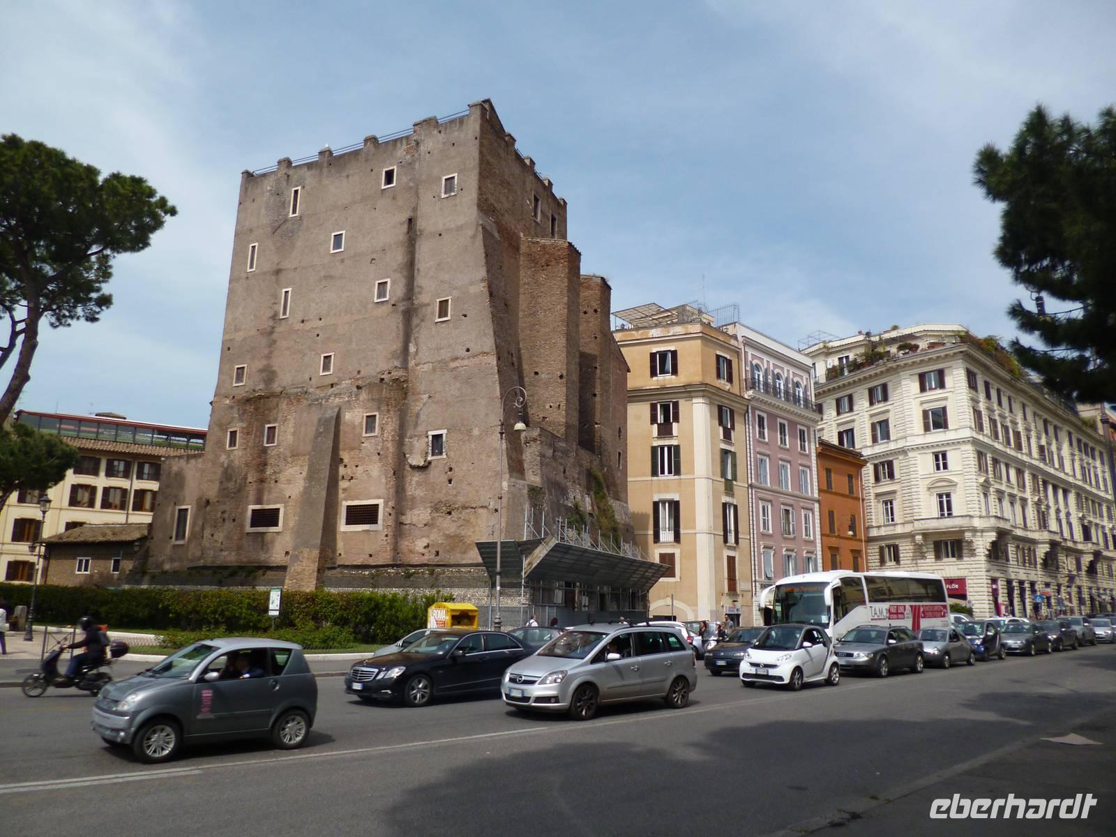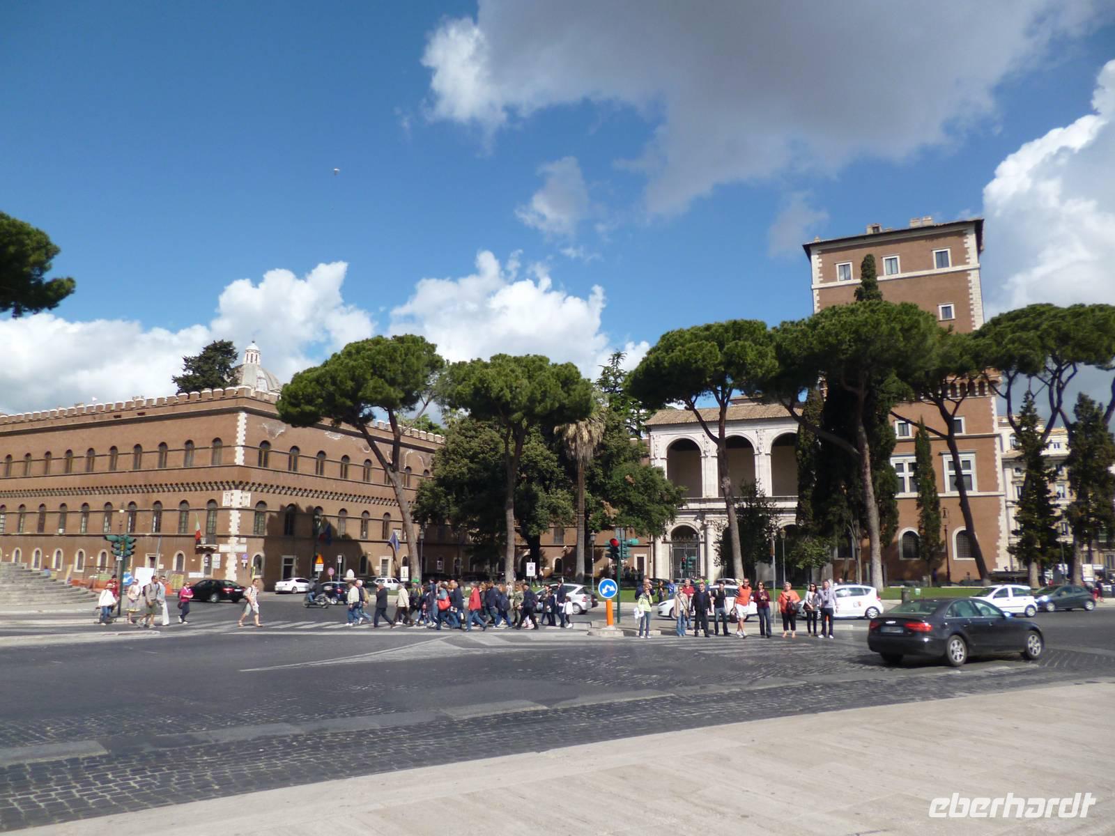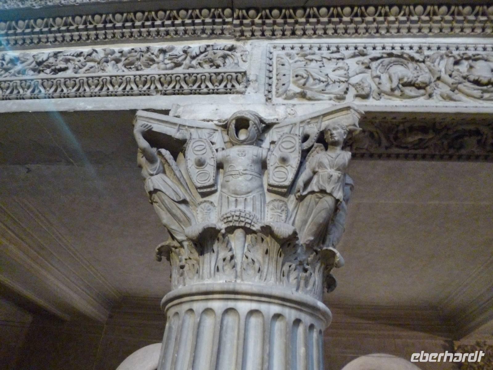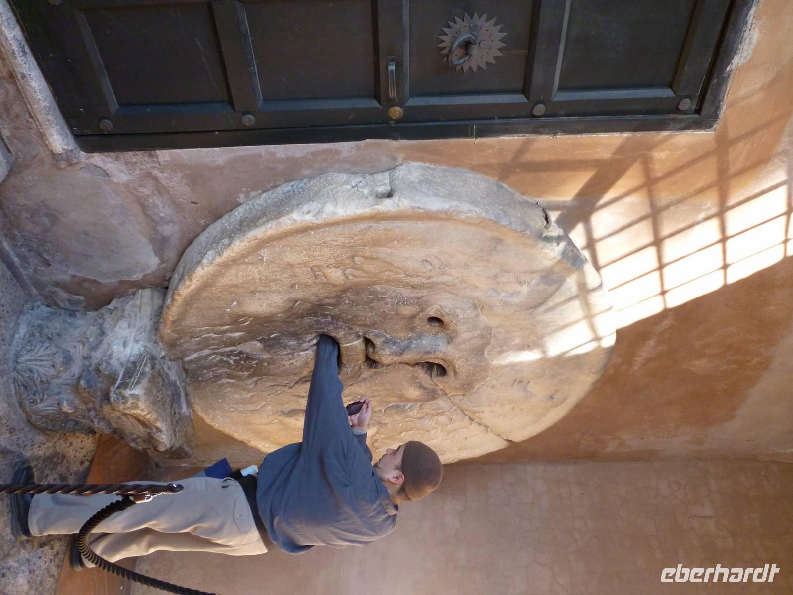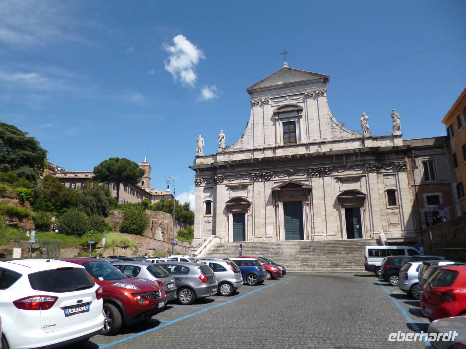 Anschließend brachte uns der Bus wieder zum historischen Stadtzentrum und durch die Ruinen des antiken Marcellustheaters und den Innenhof des Palazzo Gaeta gingen wir zur Jesuitenkirche Sant´ Iganzio, gebaut mit höchstem Pomp als Bollwerk der Gegenreformation, während zeitgleich in Deutschland der Dreißigjährige Krieg tobte. Vor allem bei der lediglich auf eine flache Decke gemalten Kuppel zeigen sich die Ordensbrüder als in den Naturwissenschaften geschulte Meister der optischen Täuschung. Nach der anschließenden Mittagspause war leider auch das nahe gelegene Pantheon wegen des Feiertags, wie auch sämtliche Kirchen geschlossen und so erklärte Frau Berlin von außen die Geschichte diese grandiosen antiken Tempelbaus, der als Kirche zweitausend Jahre überstand, obwohl man aus dem Bronzedach seiner Vorhalle den Baldachin im Petersdom fertigte.