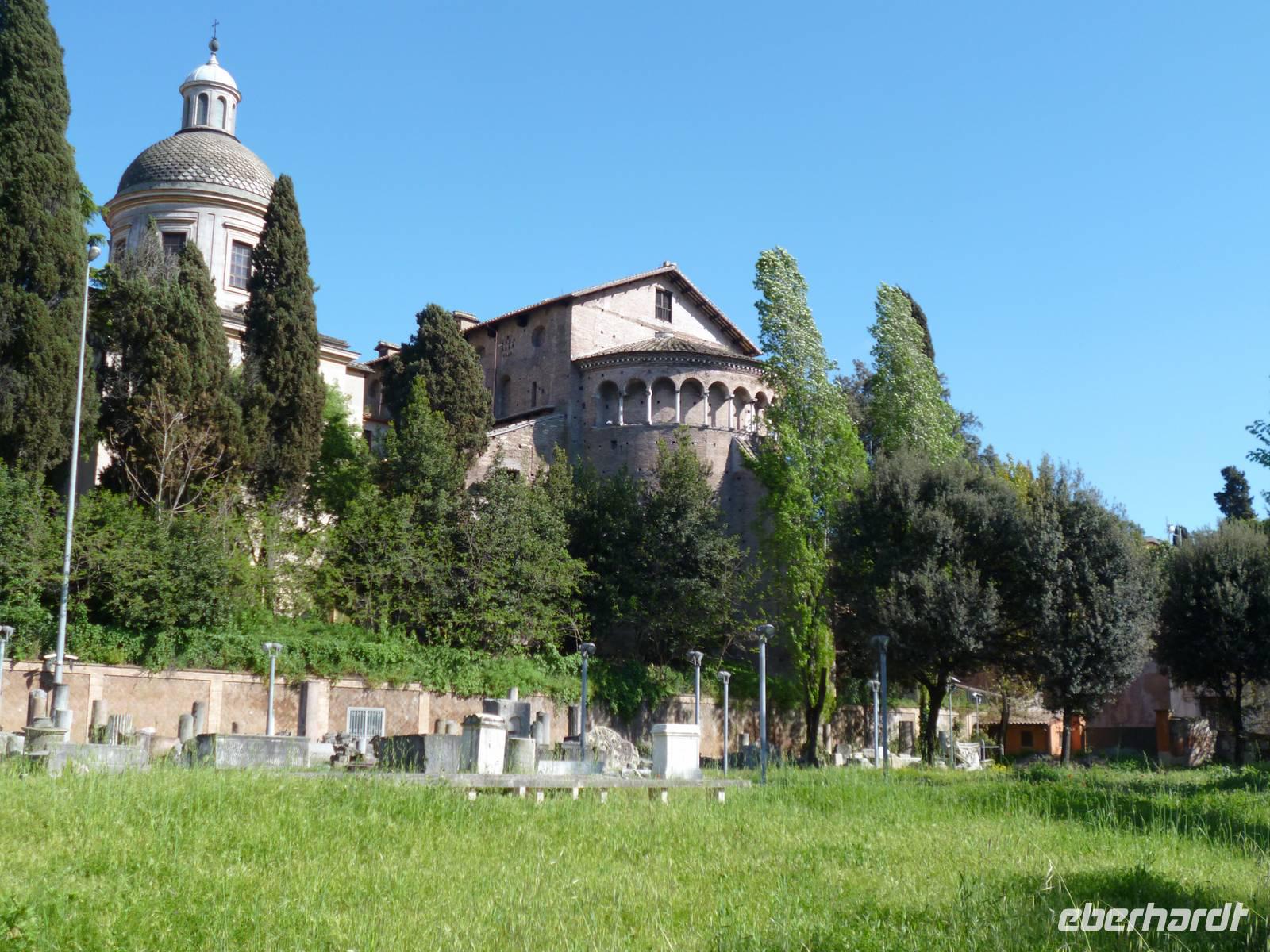 Die anschließende Freizeit genoss jeder nach Gutdünken. Einige Gäste spazierten mit dem Reiseleiter über den Caelius zur Kirche Santa Maria Navicella mit dem schönen Apsismosaik und weiter zur runden Stefanskirche, sowie zu Sankt Peter in Ketten, wo der Moses von Michelangelo zu bewundern ist. Da ab 16 Uhr wieder alle Busse und Bahnen fuhren, war der Weg ins Hotel kein Problem.