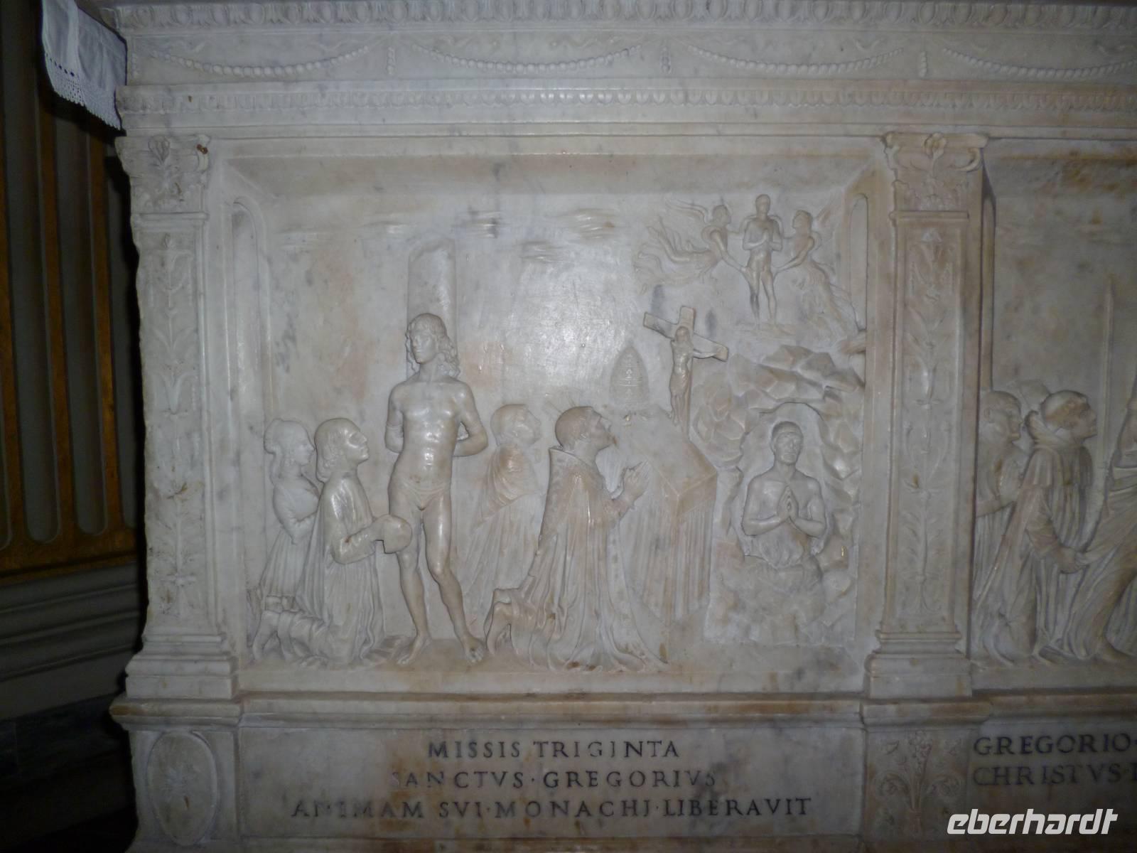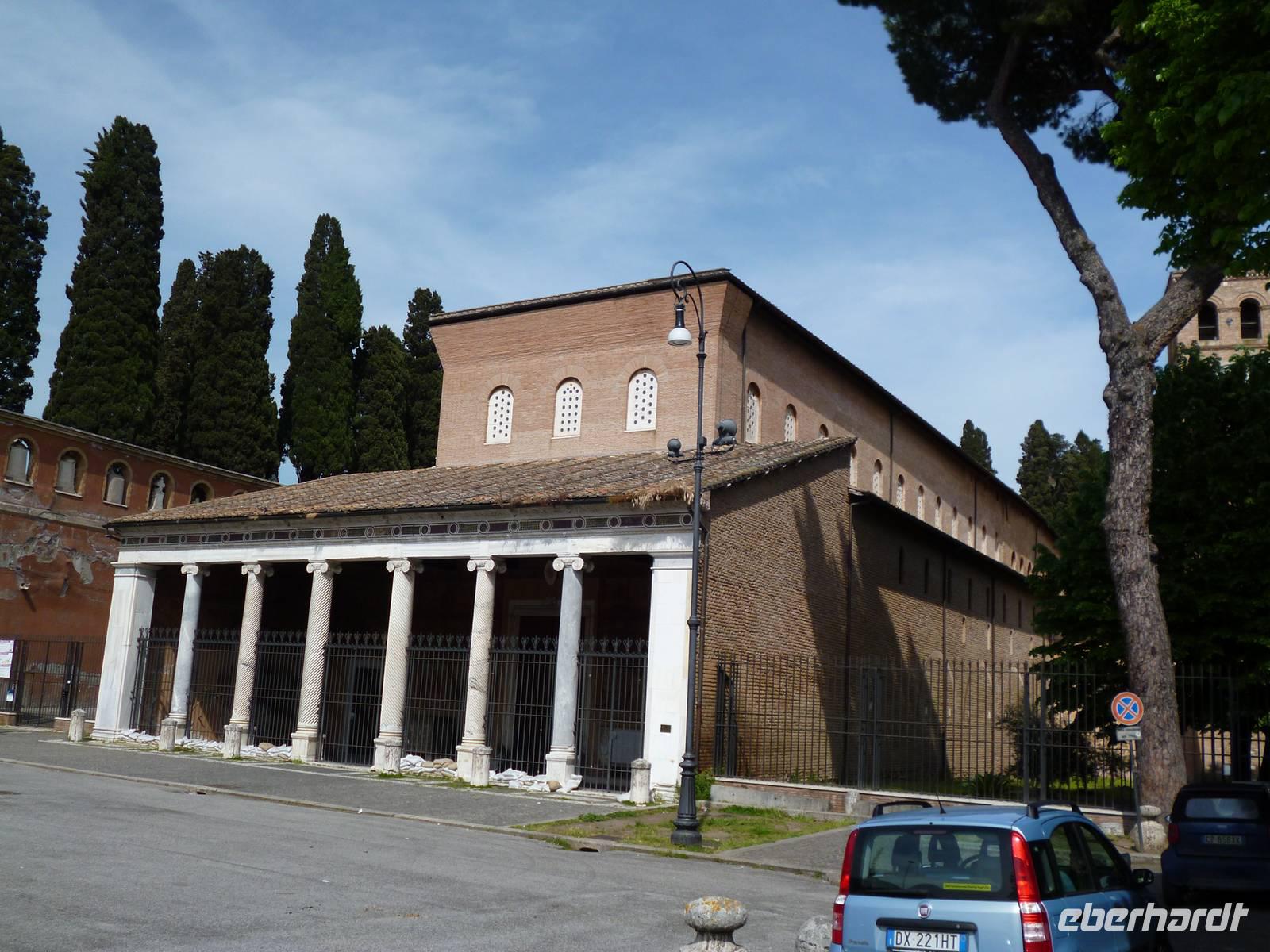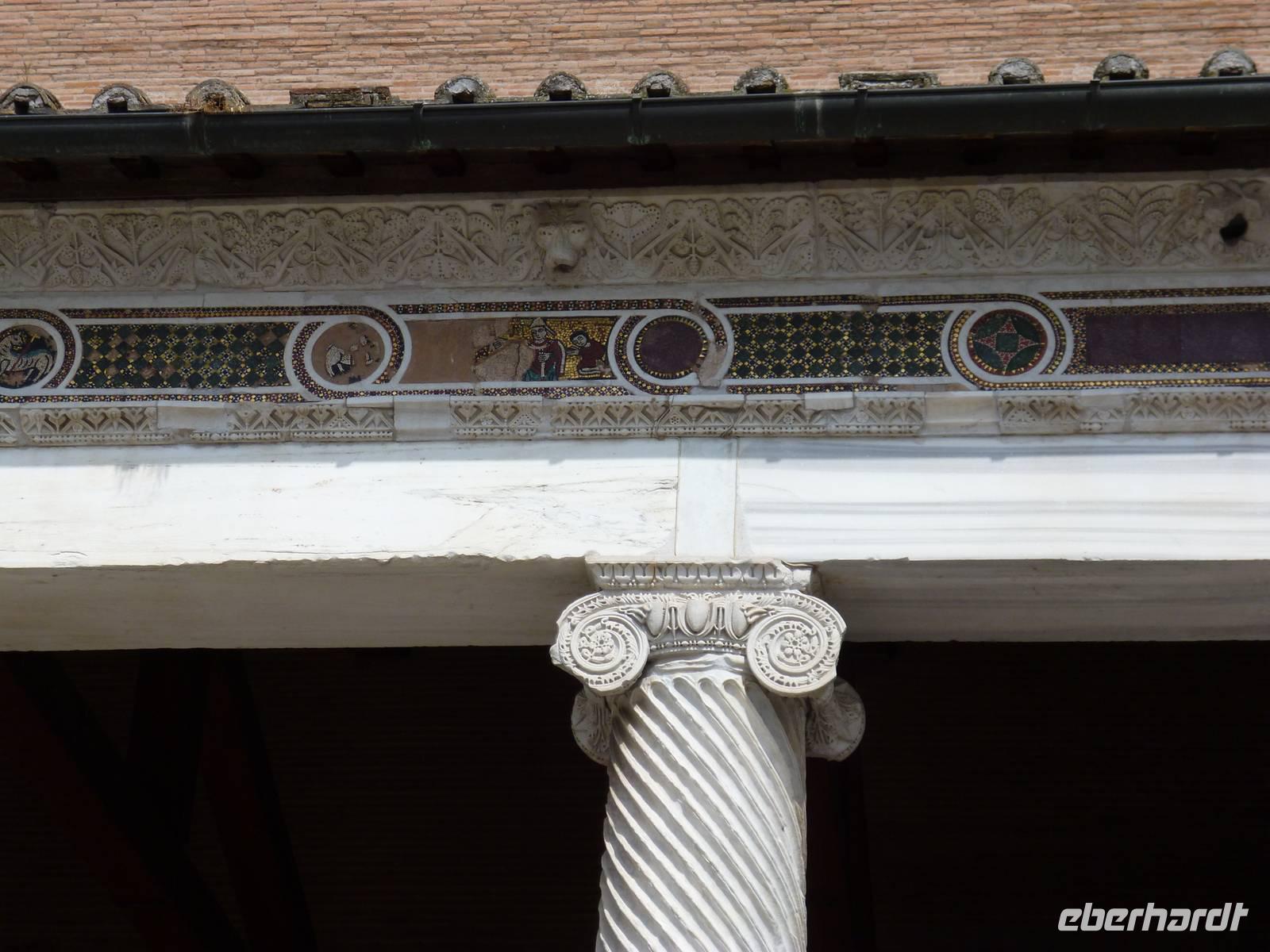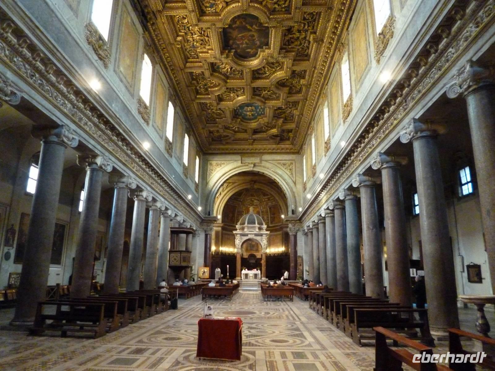 Um neun holte uns ein Bus vom Hotel ab, weil am Feiertag so gut wie keine öffentlichen Verkehrsmittel fuhren. Schnell waren wir bei der Pilgerkirche Sankt Paul vor den Mauern, die ursprünglich schon im vierten Jahrhundert von Kaiser Konstantin über dem Grab des Apostels Paulus errichtet wurde. Die nach dem Petersdom zweitgrößte Kirche Roms brannte 1823 fast komplett ab, so dass wir eine nach Befunden rekonstruierte Kirche vor uns haben. Interessant am inneren Gesims die Bilder aller bisher amtierenden Päpste bis hin zu Francesco.