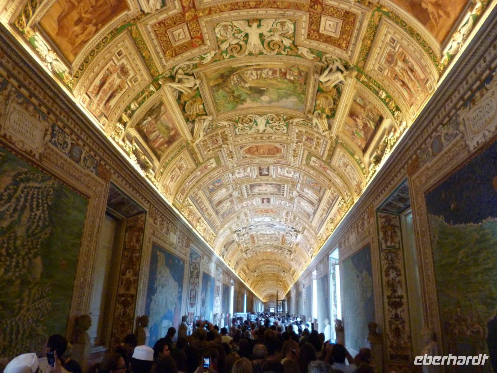 Sämtliche Gäste nutzten die Chance, ohne Bestellung und ohne Anstehen in die Vatikanischen Gärten und Museen zu kommen und der Besucherandrang zeigte, dass dies eine kluge Entscheidung war. Zunächst also ein entspannter Bummel durch die Gärten, in denen zur Zeit noch der letzte Papst Benedikt XVI. residiert. Anschließend dann zeigte Frau Berlin eine erlesene Auswahl der unfassbaren Schätze der päpstlichen Sammlungen. Genannt seien nur der Saal der Karten mit der kompletten auf Rom ausgerichteten Kartographie Italiens, sowie der Saal mit flandrischen Teppichen aus dem 16. und 17. Jahrhundert. Den krönenden Abschluss bildete die Sixtinische Kapelle mit den Fresken von Michelangelo. Auf kurzem Insiderweg gelangten wir in den Petersdom. Nach der Darlegung der 120-jährigen komplizierten Baugeschichte zeigte Frau Berlin die wichtigsten Kunstwerke, wie die Pietá von Michelangelo, sowie die Gräber der soeben heilig gesprochenen Päpste. Anschließend verabschiedete sich die Gruppe von Frau Berlin, die an diesem Tag Geburtstag feiern durfte.