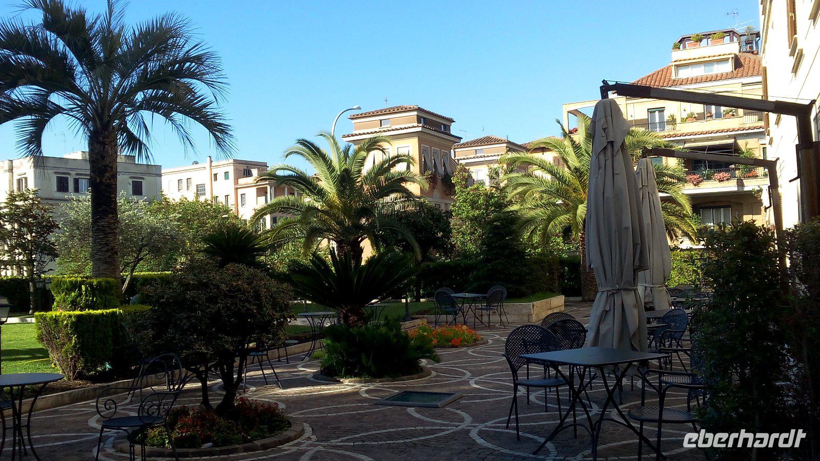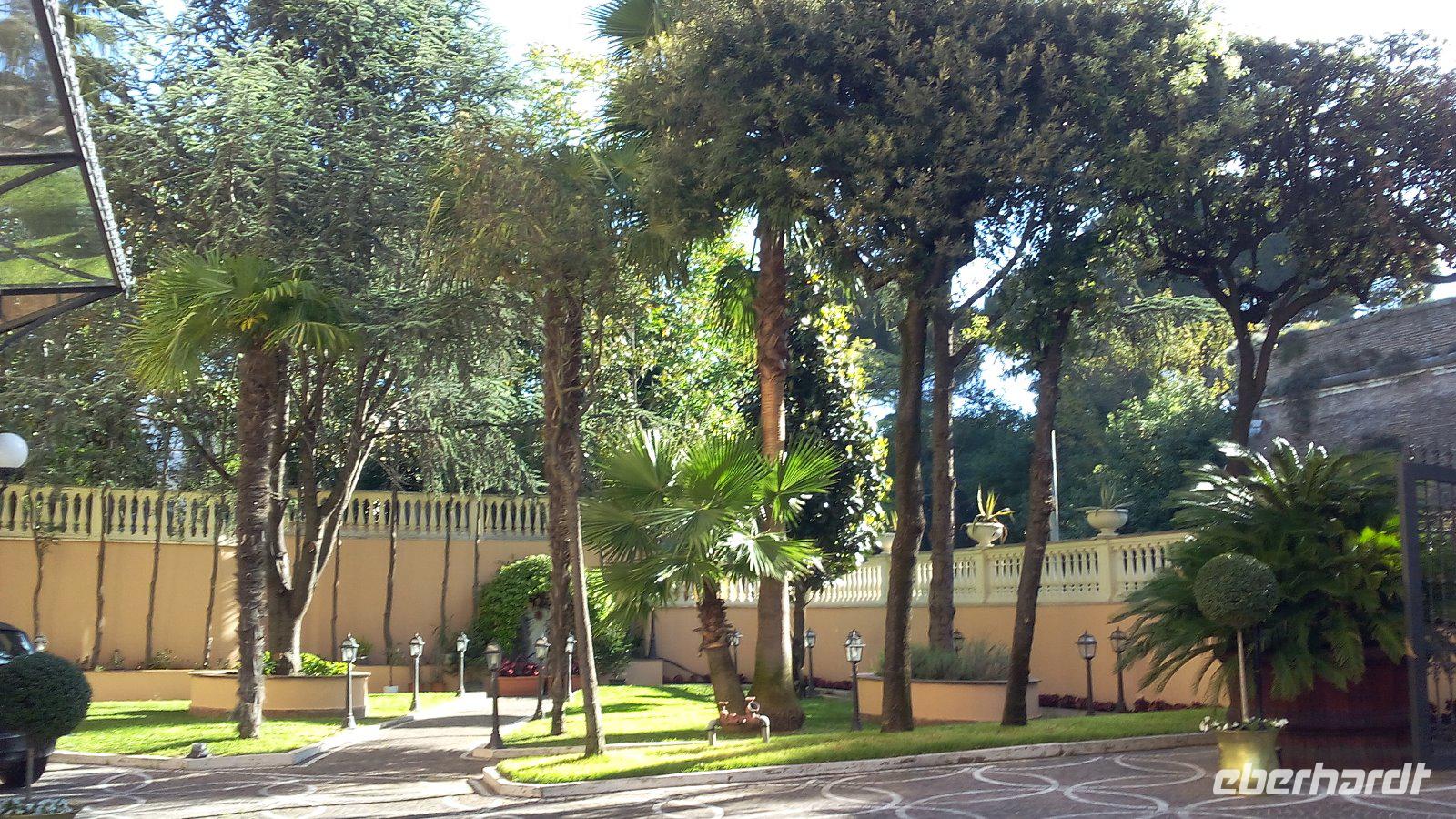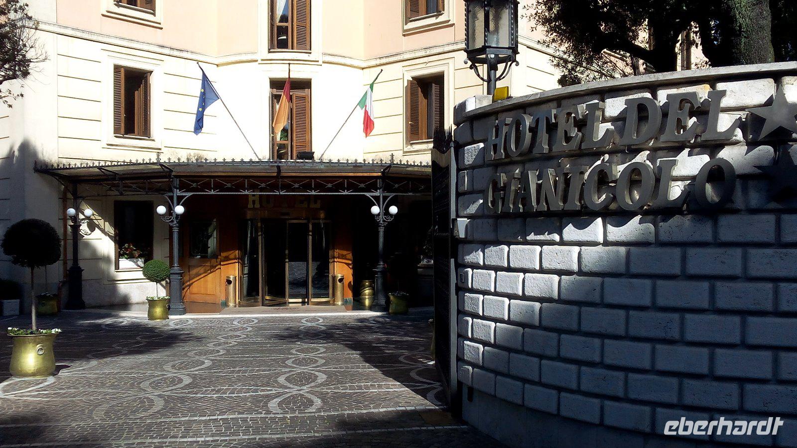 Gegen 09.00 Uhr trifft sich ein Teil unserer Reisegruppe am Flughafen Tegel in Berlin. Wir fliegen mit einem Tochterunternehmen der Air Berlin, mit der österreichischen Fluggesellschaft Niki, die ihren Sitz in Wien haben. Nachdem wir eingecheckt haben, bleibt Zeit sich etwas kennenzulernen. Wir werden insgesamt 13 Gäste sein und kommen aus den unterschiedlichen Bundesländern. Die beste Voraussetzung, schöne Tage in Rom zu erleben. Pünktlich starten wir in Berlin und haben noch einen Blick auf die Hauptstadt. Unsere Flugstrecke führt uns Richtung Dresden und Tschechien, über den Bayrischen Wald über die Alpen und von Venedig kommend fliegen wir über Rimini. Danach beginnt schon der Sinkflug. Nach reichlich 2 Stunden erreichen wir den Flughafen Rom Fiumicino. Nachdem wir unsere Koffer wieder in den Händen halten, fahren wir mit einem Transfer ins Hotel. Auf unserer Strecke sind wir auf der historischen Aurelia unterwegs. Nach ca. 40 Minuten werden wir in unserem Grand Hotel Gianicolensi herzlich empfangen.