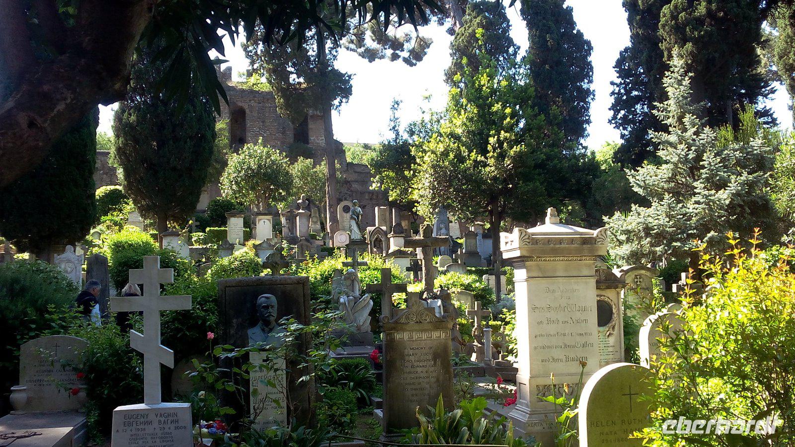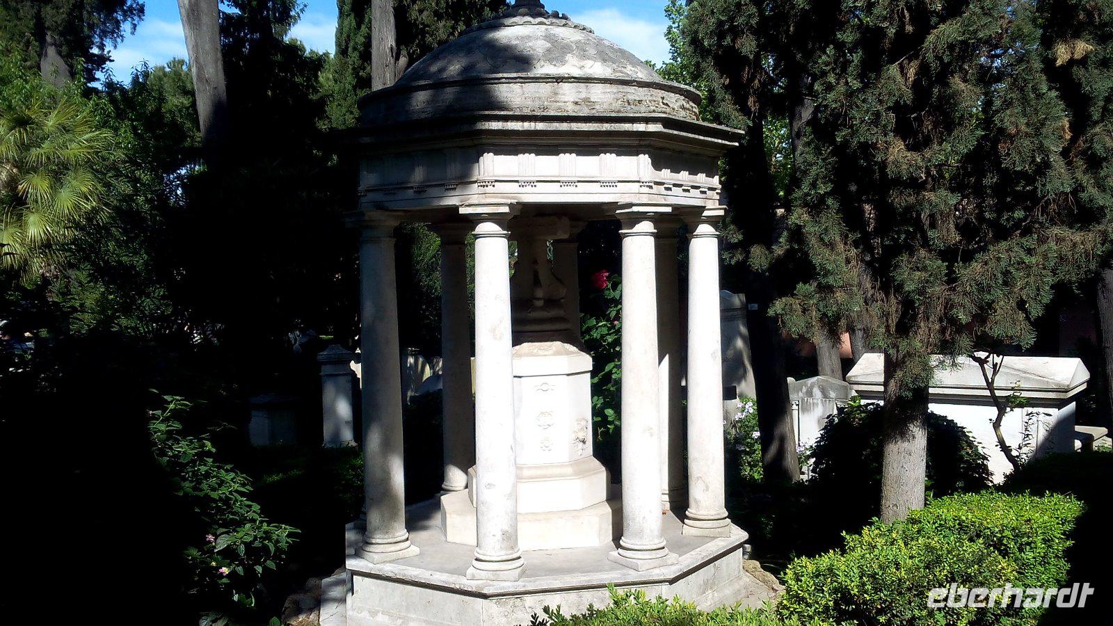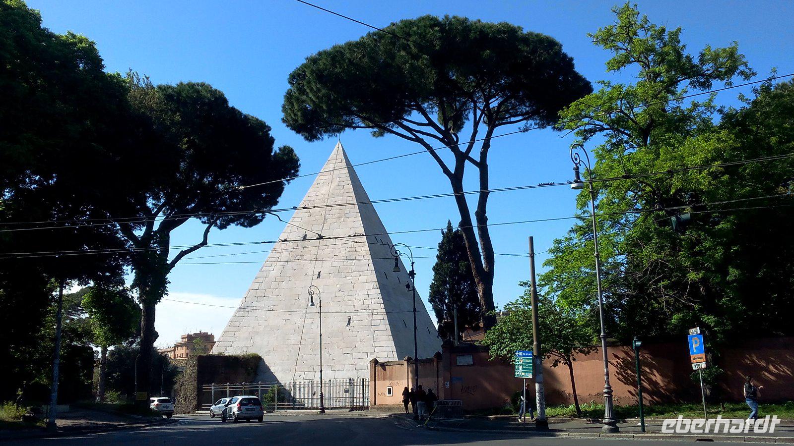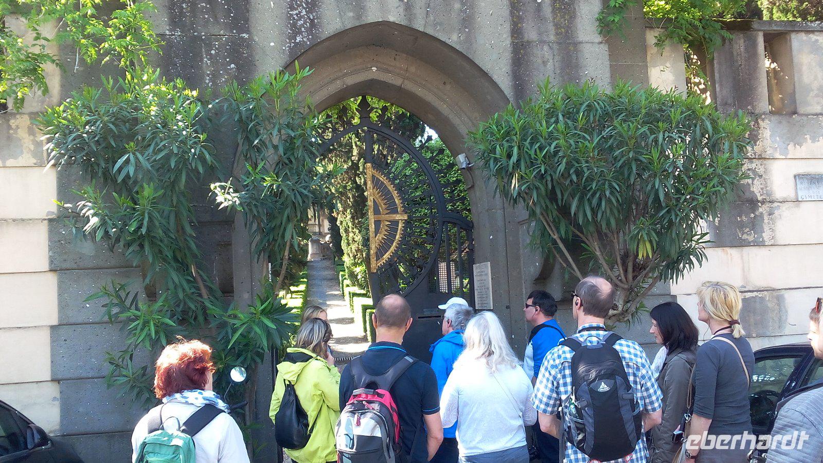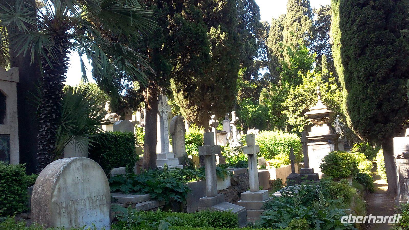 Mit der Buslinie 75 fahren wir zum Piazza Di Porta S.Paola(Pyramide) und spazieren von hieraus zum Nichtkatholischen Friedhof (Cimitero accatolico) Sylvia informiert, dass mit Aufkommen der Italiensehnsucht im 18. Jahrhundert verstärkt Ausländer nach Rom kamen, die nicht katholischen Glaubens waren, hier vor allem Engländer und Deutsche. Starben diese in Rom, durften sie nicht auf den allgemeinen Friedhöfen bestattet werden, Wir verweilen an den Gräbern von August Goethe(Sohn von Johann Wolfgang Goethe) und am Grab von Gottried Semper. Nach etwas Freizeit auf dem Friedhof der auch, wie die meisten Friedhöfe Ruhe ausstrahlt, treffen wir uns wieder am Ausgang. Wir haben heute noch weitere interessante Erkundungen auf dem Programm.