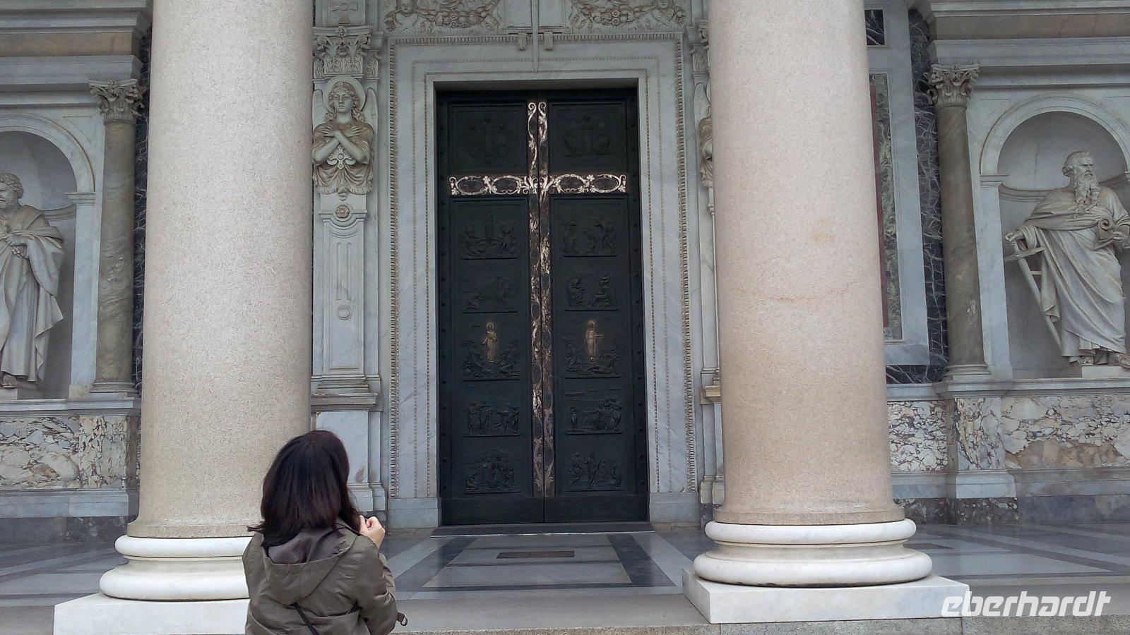 Mit der Buslinie 23 fahren wir zur Kirche St. Paul vor den Mauern. Wir stehen vor einer