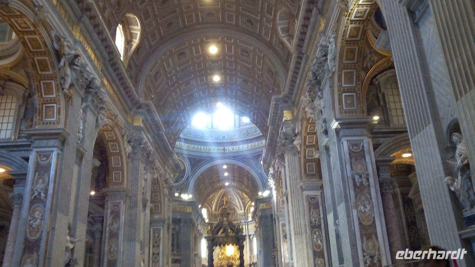 von Petrus errichtet und 326 geweiht wurden. Das Innere der heutigen Peterskirche beeindruckt durch seine Ausmaße,186 m lang und die Höhe in der Kuppel beträgt 119 m. In der Kirche ist Platz für 60 000 Menschen. WOW, für uns sehr beeindruckend. Eines neben vielen bedeutenden Kunstwerken ist die Pietà von Michelangelo.