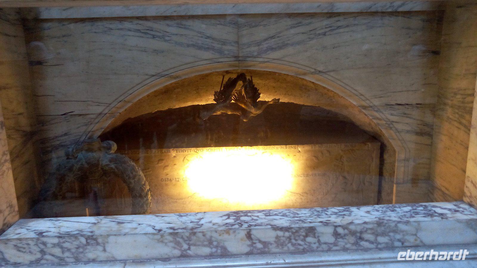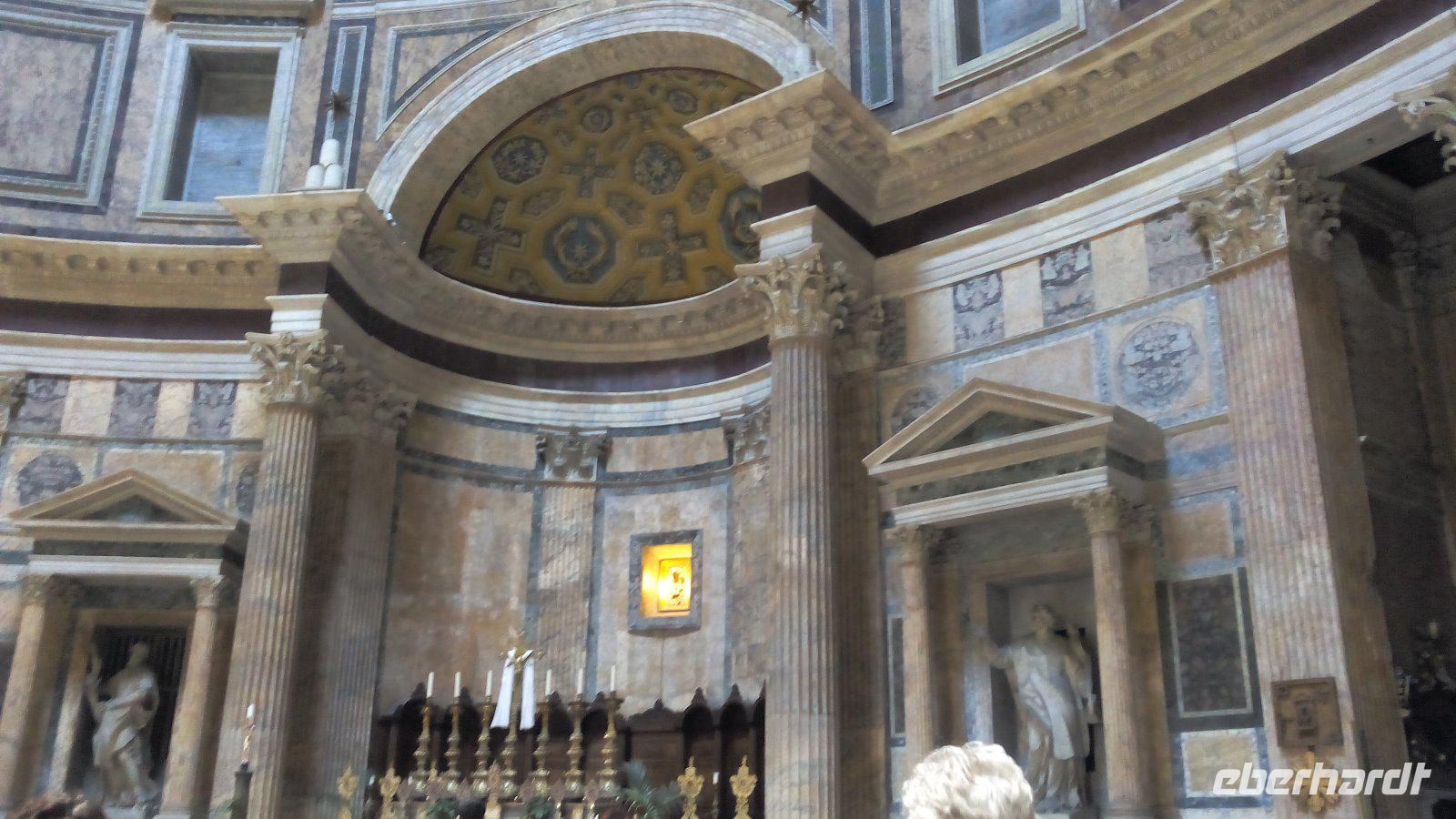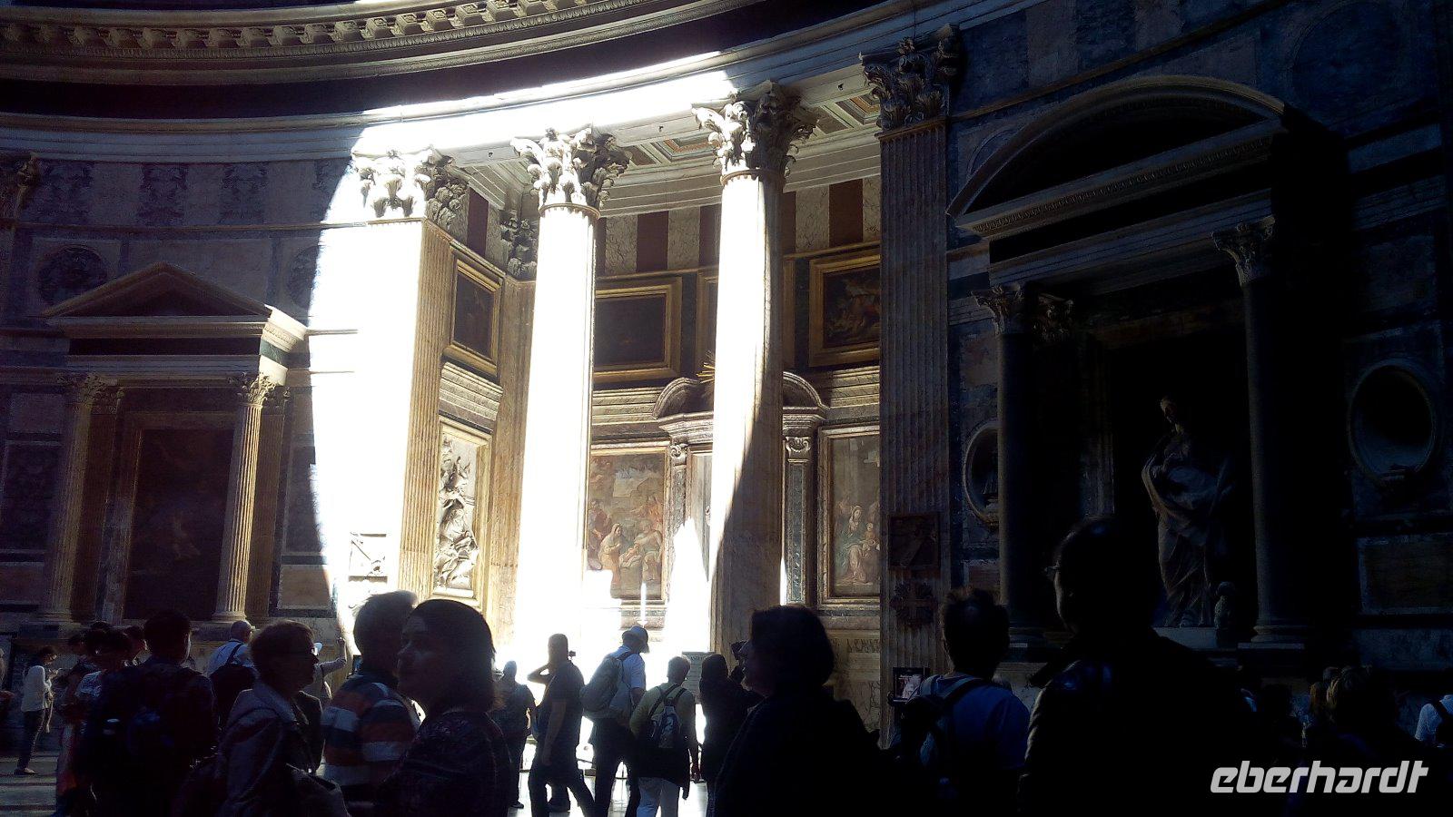 besterhaltenes Bauwerk der Antike. Dieses gewaltige Bauwerk lässt uns verstummen. Andere Besucher nutzen und prüfen die Akustik durch Gesänge, nicht allen Besuchern zur Freude. Bevor wir das Pantheon verlassen, verweilen wir einen Moment vor dem Grabmal des 1520