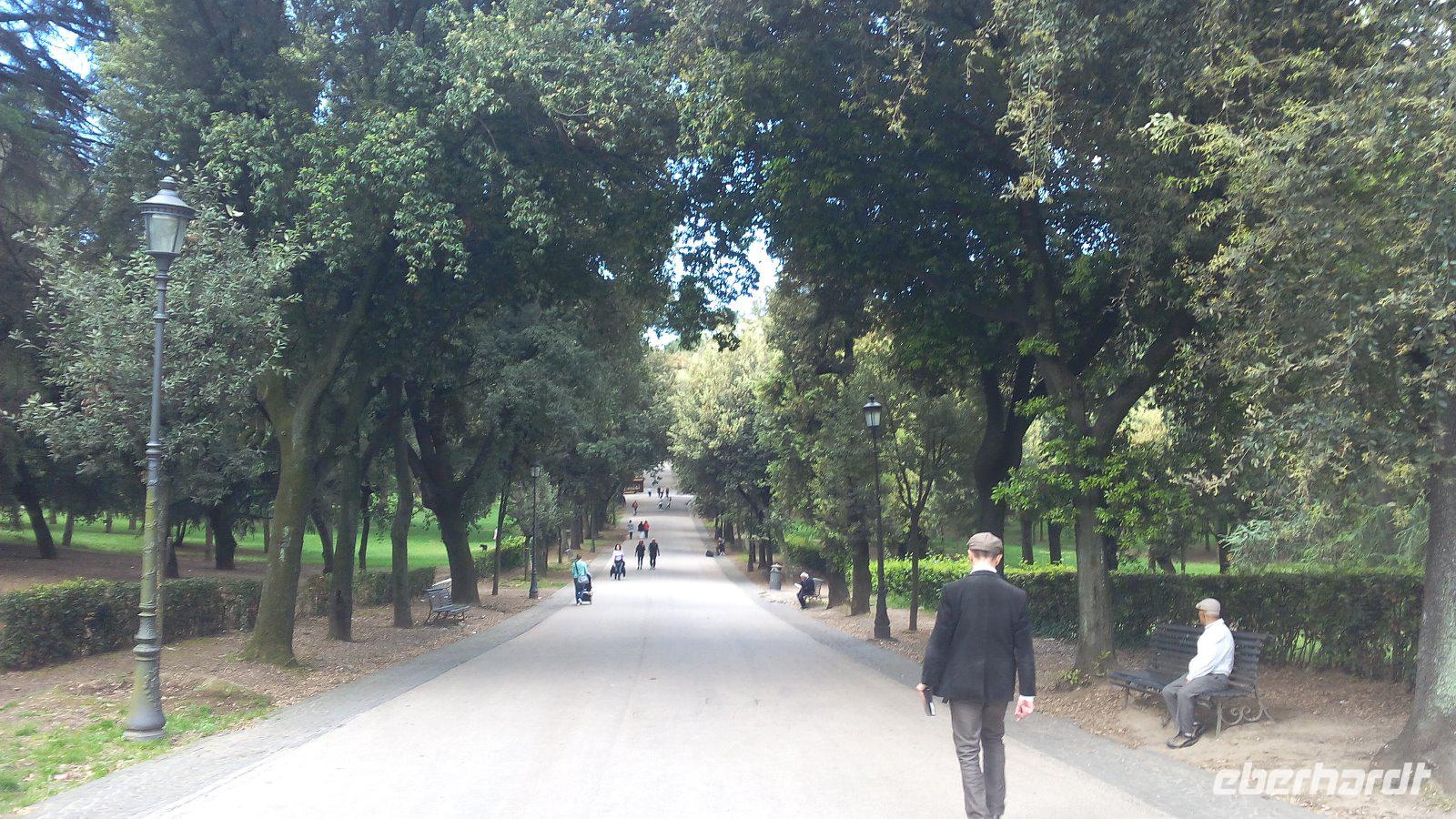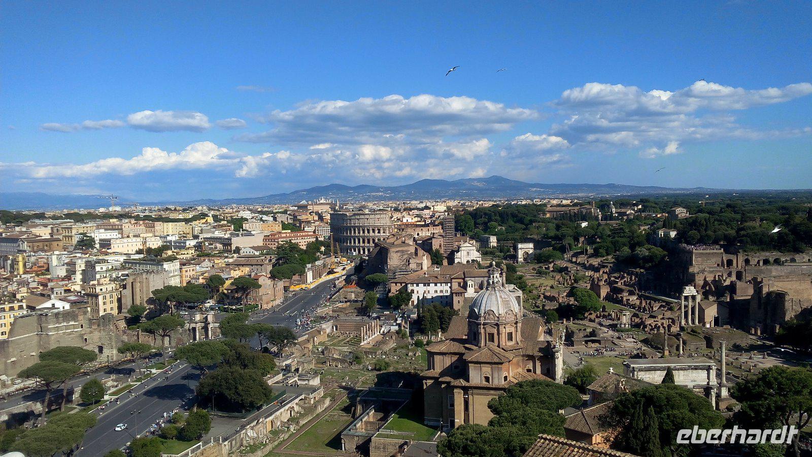 zufahren. Mit einem Fahrstuhl erreichen wir diese leicht und sehr schnell. Belohnt werden wir mit einer sehr guten Sicht auf Rom und in die Albaner Berge.