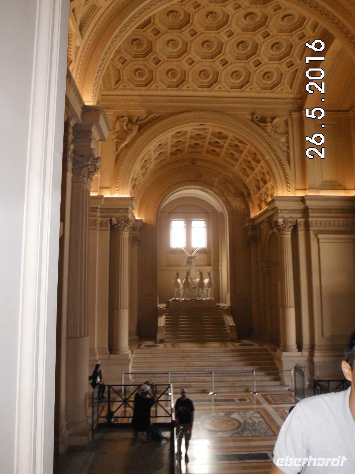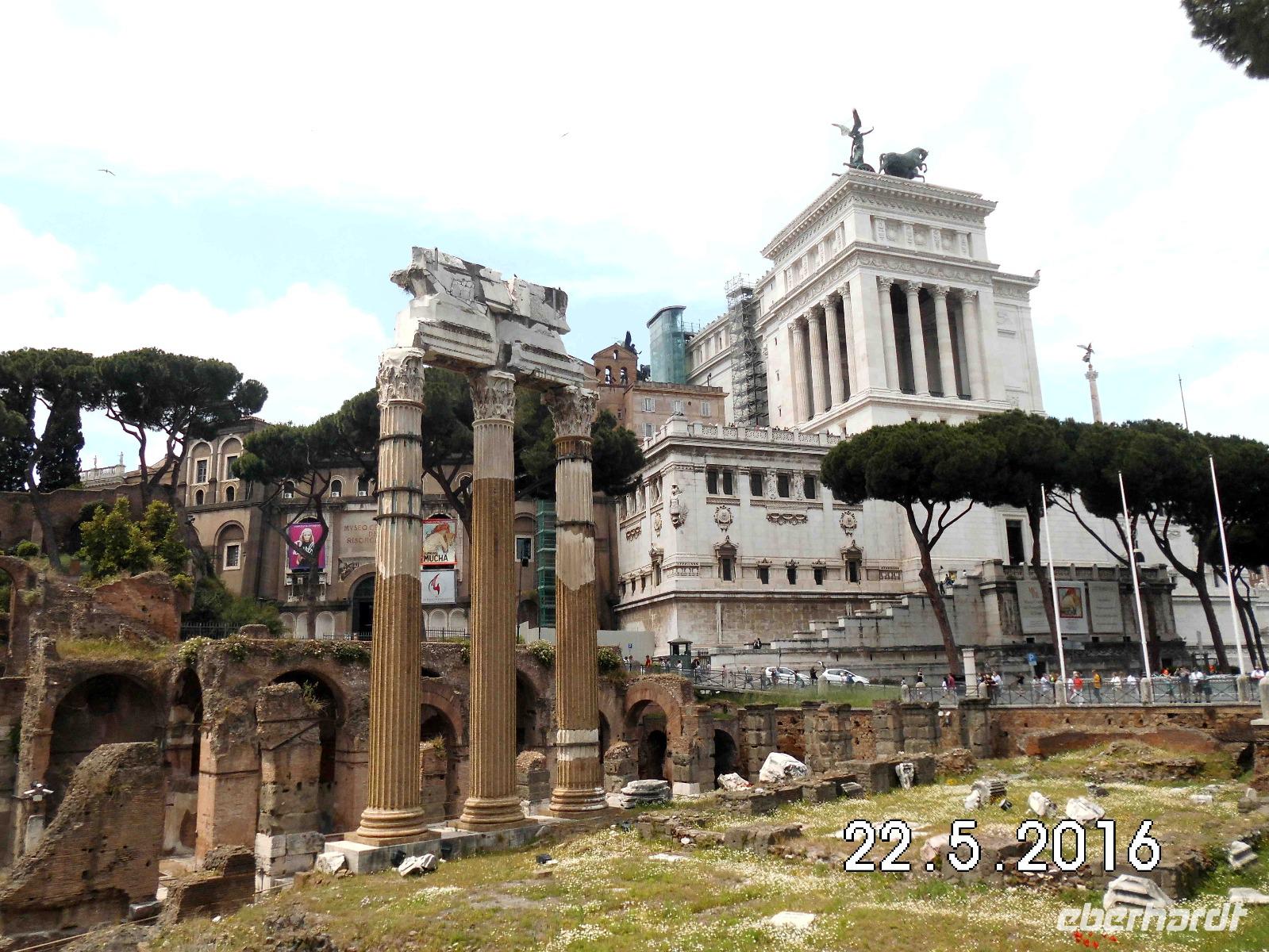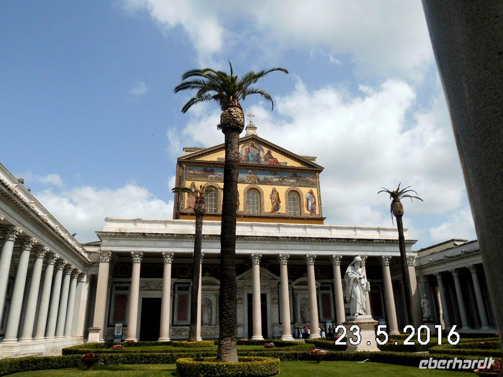 Bei einem ausgiebigen Frühstück erfreuten wir uns einer einmalig schönen Aussicht von der verglasten Frühstücksterrasse des Hotels. Nachdem die Geräte des Reiseleiter-Funks ausprobiert waren, wurde uns Malte, unser Stadtführe, vorgestellt. Dann ging es mit einem Bus der römischen Verkehrsmittel ins Herz der Stadt, zur Piazza Venezia .Dort erklommen wir über die von Michelangelo entworfene Treppe den Hügel des Palatin. Beim Anblick der Reiterstatue des Marc Aurel klickten alle Fotoapparate..Schon am Eingang zu den Museen machten wir Bekanntschaft mit der italienischen Mentalität: Jeder Mitarbeiter gab andere Instruktionen. Die Dimensionen der Skulpturen, auch die derjenigen, die „nur" teilweise erhalten waren, zeugen vom Können der Künstler in der Antike. Malte erläuterte uns die historischen Hinter- Gründe und kannte auch manches Histörchen hierzu. Nach einem kurzen Spaziergang mit Blick auf das Forum Romanum, die Trajanssäule und die Trajansmärkte legten wir in der Nähe des Kolosseums eine Mittagspause ein. Danach ging es mit der Metro zur Kirche St. Paul vor den Mauern Bei einem Spaziergang zur Cestuspyramide - dem einzigen Grabmal dieser Art in Rom-und auf dem Nichtkatholischen Friedhof ,der wie ein Park anmutet, entdeckten wir die Grabstellen von Gottfried Semper und Goethes Sohn August. Danach gestaltete sich jeder seine Freizeit nach eigenem Ermessen oder fuhr ins Hotel zurück.
