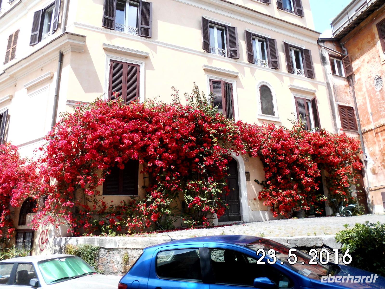 Am Morgen des Anreisetages brachten verschiedene Zubringer uns zu den Flughäfen in Berlin, Stuttgart und Frankfurt. So lernten sich schon die ersten Reiseteilnehmer kennen. Da die „Berliner-Gruppe" in Rom noch auf einen kurz nach ihnen landenden Flug warten mußte, stimmten wir uns schon mal mit einem Cappuccino auf italienisches Lebensgefühl ein. Nachdem wir uns in unserem Hotel auf dem Giannicolo-Hügel etwas erfrischt hatten, ging es auf erste Entdeckungstour: In der Nähe eines der großen Brunnen Roms hatten wir eine erste phantastische Aussicht auf die Stadt. Ein Spaziergang führte uns dann ins quirlige Trastevere, wo einige Reisegäste auch ihr Abendessen einnahmen .Die anderen Gäste trafen sich dann zum Essen, bzw. zur Information mit der Reiseleiterin im Hotel.