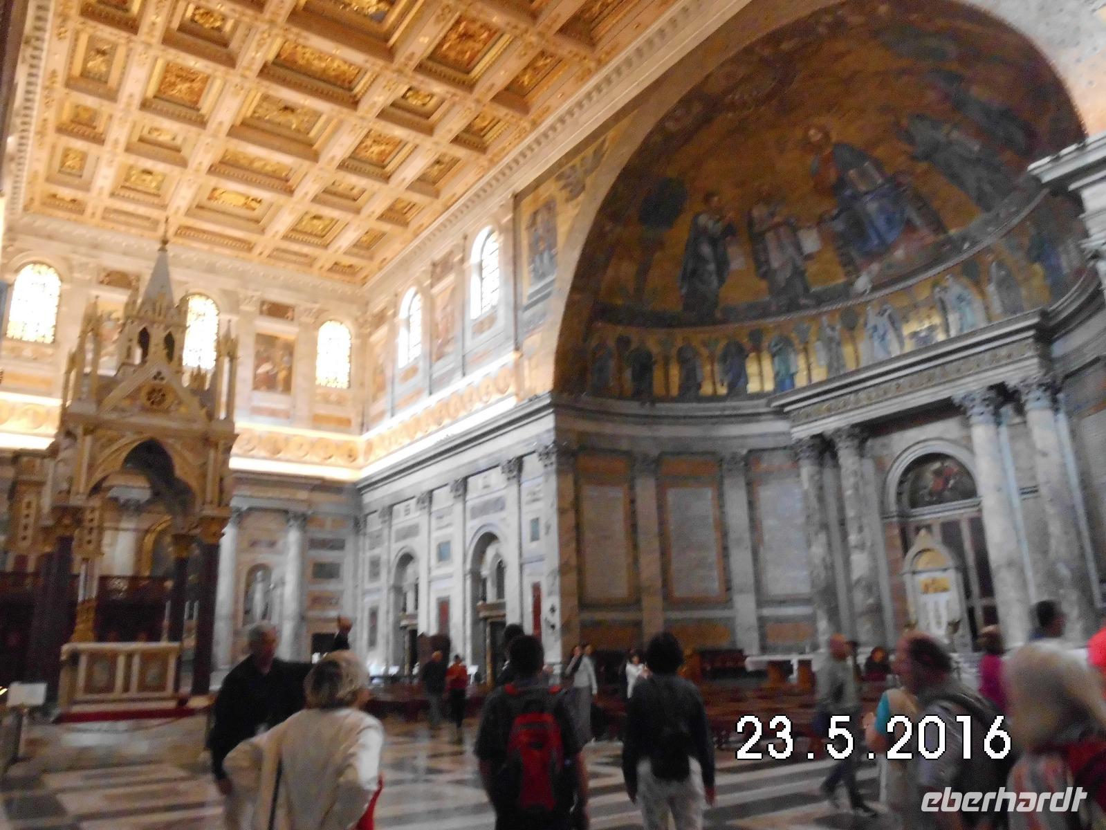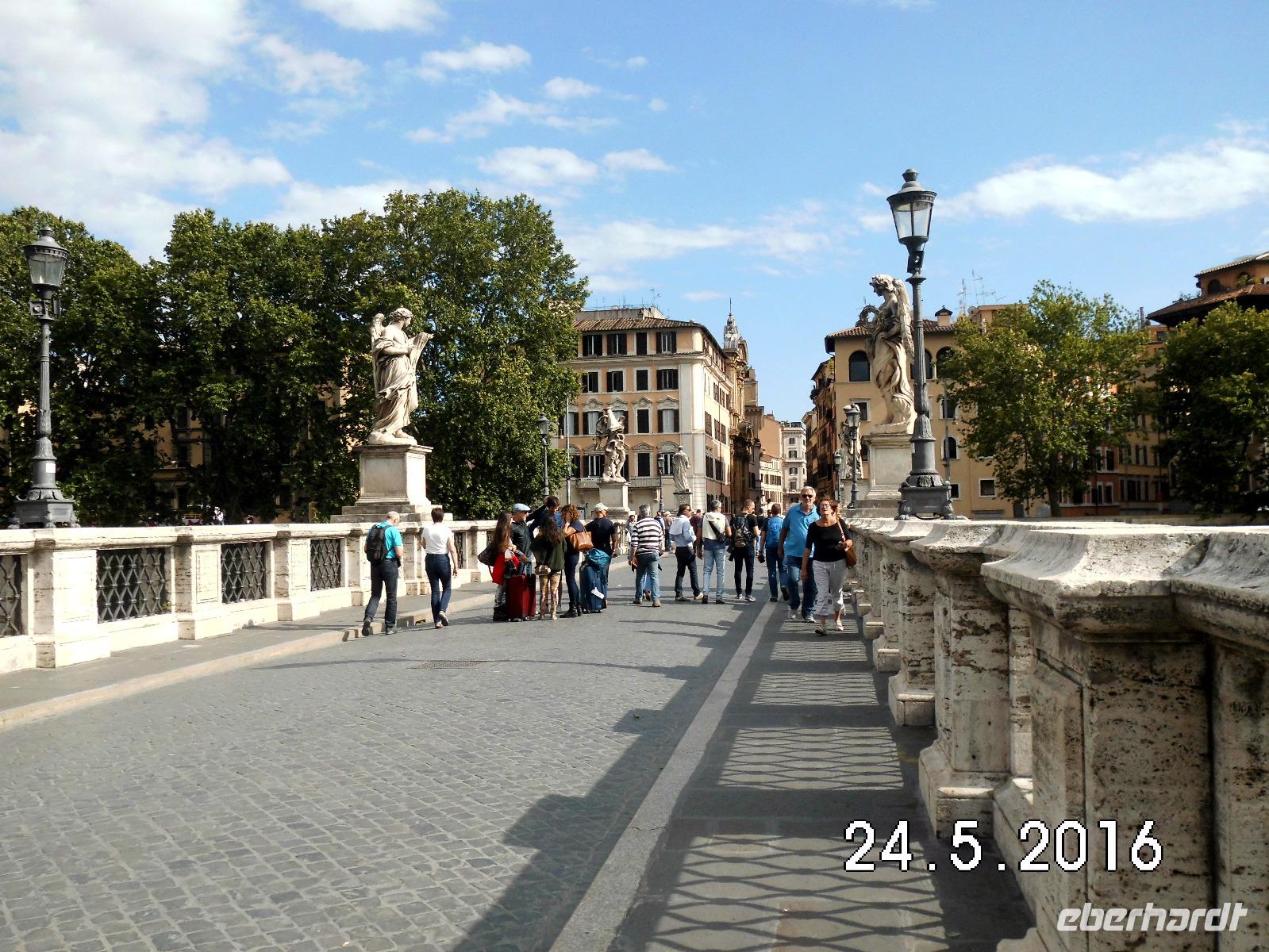 Zunächst erstaunt uns die unglaubliche Anzahl der Pilger, die wohl schon vor Morgengrauen auf Einlass gewartet haben müssen. Nach der Begrüßung dieser in mehreren Sprachen fährt der Papst durch einen für sein Papa-Mobil abgesperrten Korridor und wir haben Glück: Direkt in unserer Nähe segnet er ein Kind! Nach der Mittagspause in der Nähe des Petersplatzes spaziert Malte mit uns zur Engelsburg, über die Engelsbrücke zur Piazza Navona und zum Pantheon. Natürlich weiß er wieder Vieles über das alte Rom und seine Geschichte und Geschichtchen zu erzählen und beantwortet gern all 'unsere Fragen .Zum Abschluß der heutigen Entdeckungen schauen wir uns noch die Kirche St.Ignatius an.