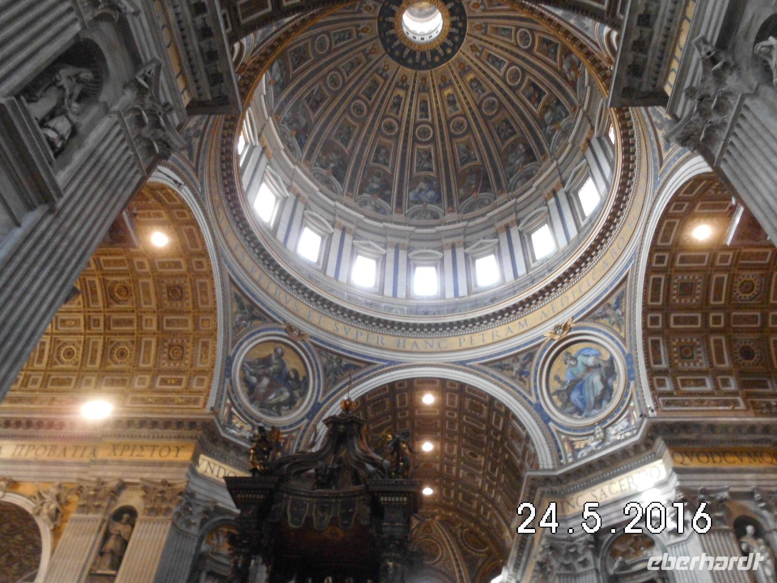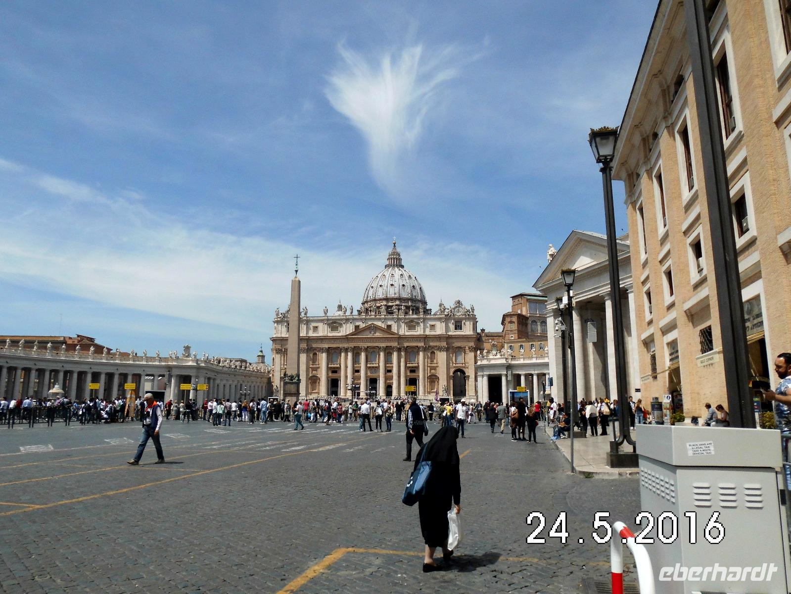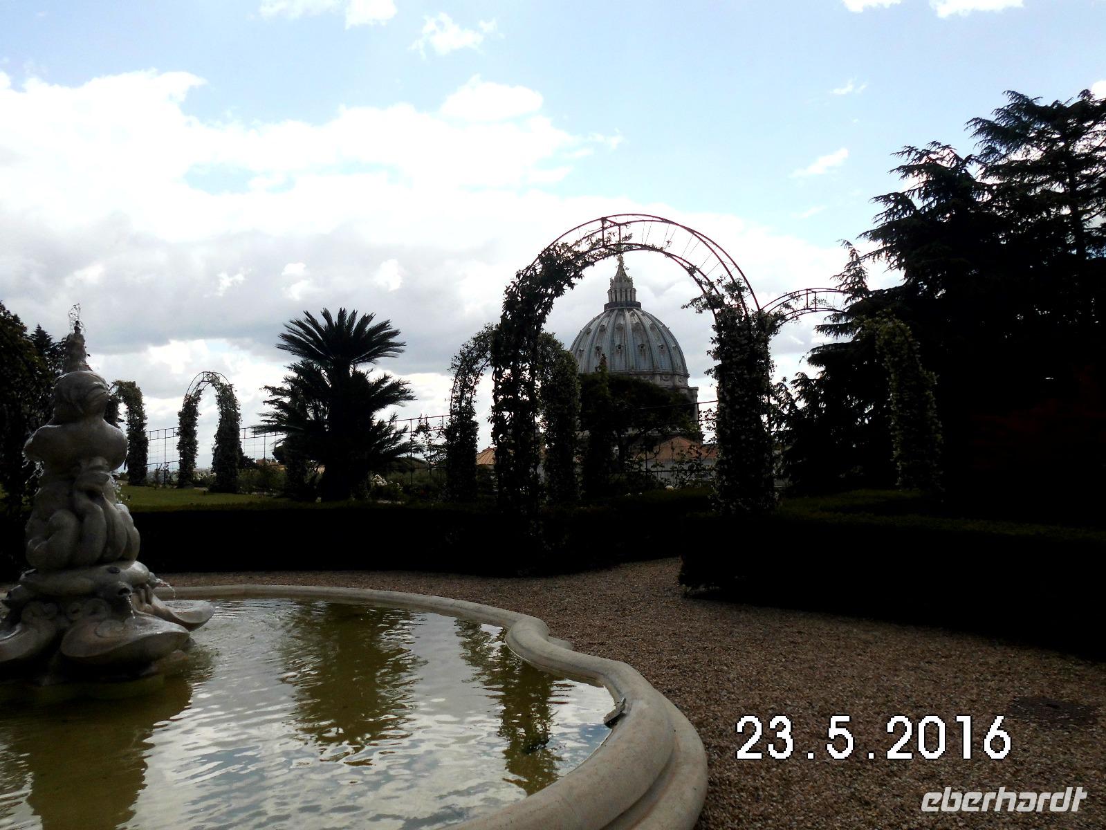 Dieser Tag war wohl für die Gäste, die den fakultativen Tag gebucht hatten. ein Höhepunkt unserer Romreise .Die S-Bahn brachte uns in die Nähe der Vatikanischen Museen, wo wir von unserer Führerin durch die Gärten schon erwartet wurden. Durch die unterschiedliche Gestaltung der Gärten erhielten wir einen Eindruck vom jeweiligen Zeitgeschmack und auch den der jeweiligen Päpste. Sogar die Nester von grünen Papageien konnten wir in den Palmen entdecken .Zur Mittagspause fanden wir ein kleines Cafe im Hof der Vatikanischen Museen. Dann zeigte uns Malte die wichtigsten Skulpturen -darunter die berühmte Laokoon-Gruppe-, kunstvoll gestaltete flämische Wandteppiche und Landkarten, welche die den Römern damals bekannte Welt zeigen. Auch die gewaltige Größe der Peterskirche und ihre architektonische Schönheit fanden unsere Bewunderung. Wer mochte, konnte danach noch den Ausblick von der Kuppel genießen.