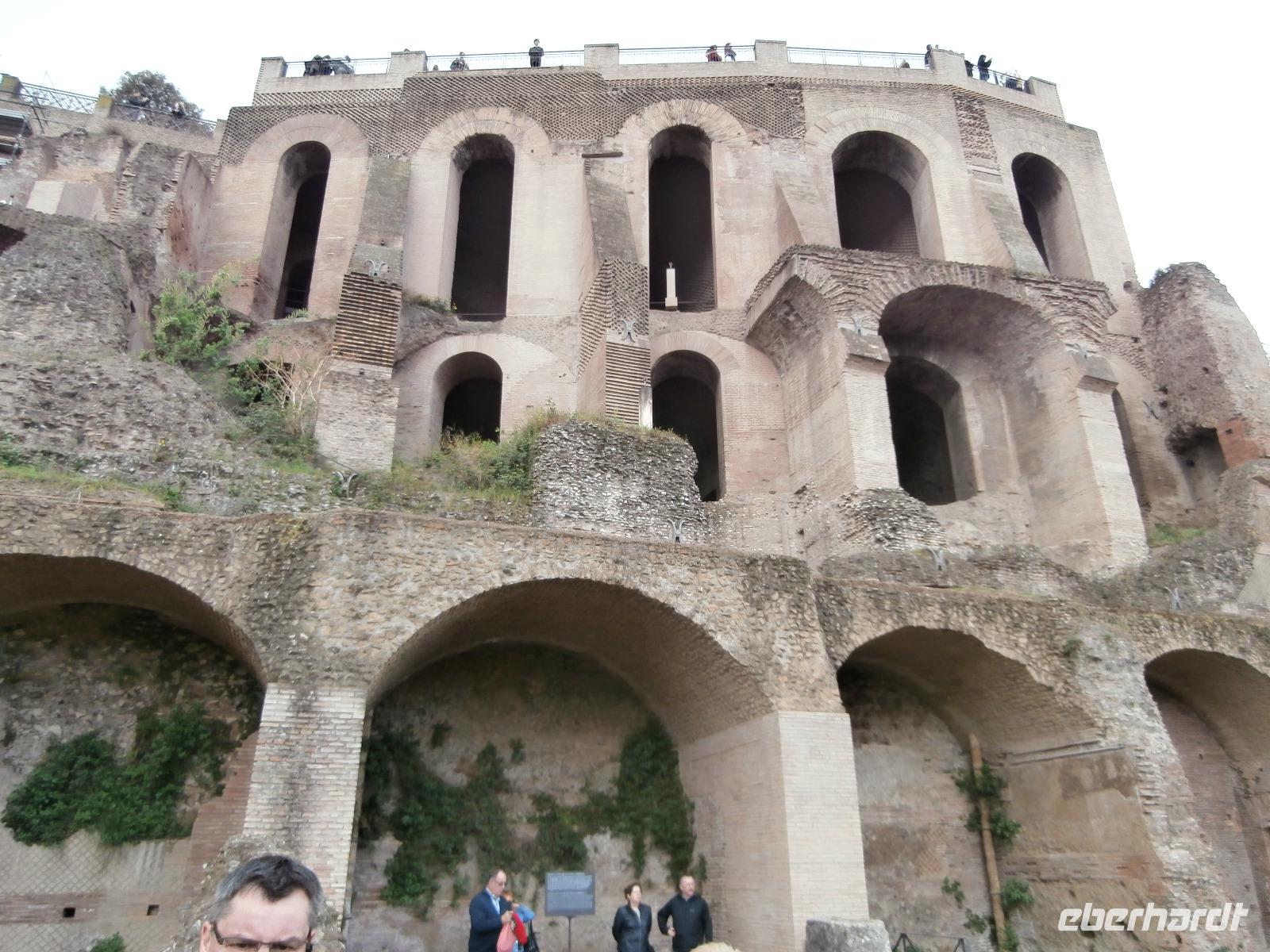 Gemeinsam starten wir unsere Exkursion mit der Metro bis zum Kolosseum und hier werden wir von Agnieszka, unserer örtlichen Reiseleitung, erwartet. Wir gehen zuerst ins Kolosseum und hier erfahren wir viel über die Tierkämpfe und Gladiatoren und sind begeistert vom Erhalt der Anlage. Vorbei am Konstantinbogen und dem Palatin Hügel, wo die Ursprünge Roms sind, geht's weiter durch das Forum Romanum, welches von vielen Säulen, Bögen und natürlich auch von Tempeln geprägt, reichlich zum Staunen und Sehen bietet. Den Titus Bogen halten wir fotografisch fest. Weiter geht's mit Blick zum Kapitols Hügel, wo sich das Rathaus von Rom und auch die Kapitolinischen Museen befinden. Nach unserer Mittagspause fahren wir bis zur Station Piramide mit der Metro und besuchen den Nichtkatholischen Friedhof von Rom. Ein Ort der Stille inmitten des hektischen Stadtlebens, angelegt im 18. JH für alle Verstorbenen, die auf den katholischen Friedhöfen nicht beerdigt werden durften. Auf dem Cimitero acattolico sind bekannte Persönlichkeiten, wie August von Goethe, John Keats, Gottfried Semper und Wilhelm von Humboldts Söhne begraben. Neben dem Friedhof ist die 36 m hohe und 22 m lange Cestius Pyramide, sie ist in der Folge des Ägyptenkultes entstanden. Letzter Besichtigungsort heute ist die Kirche St. Paul vor den Mauern. Sie war bis zum Neubau der Peterskirche die größte Kirche Roms. Diese fünfschiffige Basilika ist die Grabeskirche des Apostels Paulus, sie wurde nach dem Vorbild von Trajans Basilica Ulpia bereits unter Kaiser Konstantin errichtet und nach dem Großbrand 1823 wieder originalgetreu aufgebaut. Sehr eindrucksvoll anzusehen ist die Ahnenreihe der Päpste längs der Schiffe. Ein schöner, erster Tag in Rom geht zu ende. Wir verabschieden uns von Agnieszka, fahren mit der Metro zum Hotel zurück und schließen bei einem fantastischen Abendessen in der Osteria 44 diesen Besichtigungstag in Rom ab.