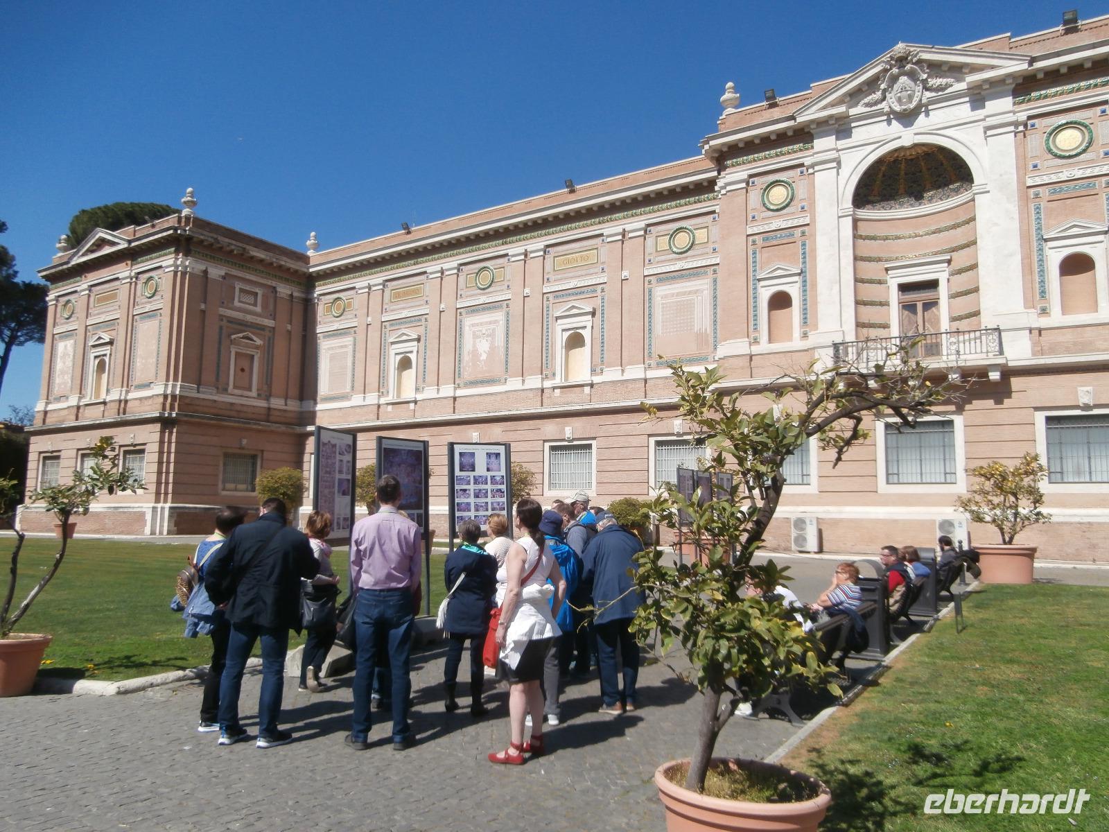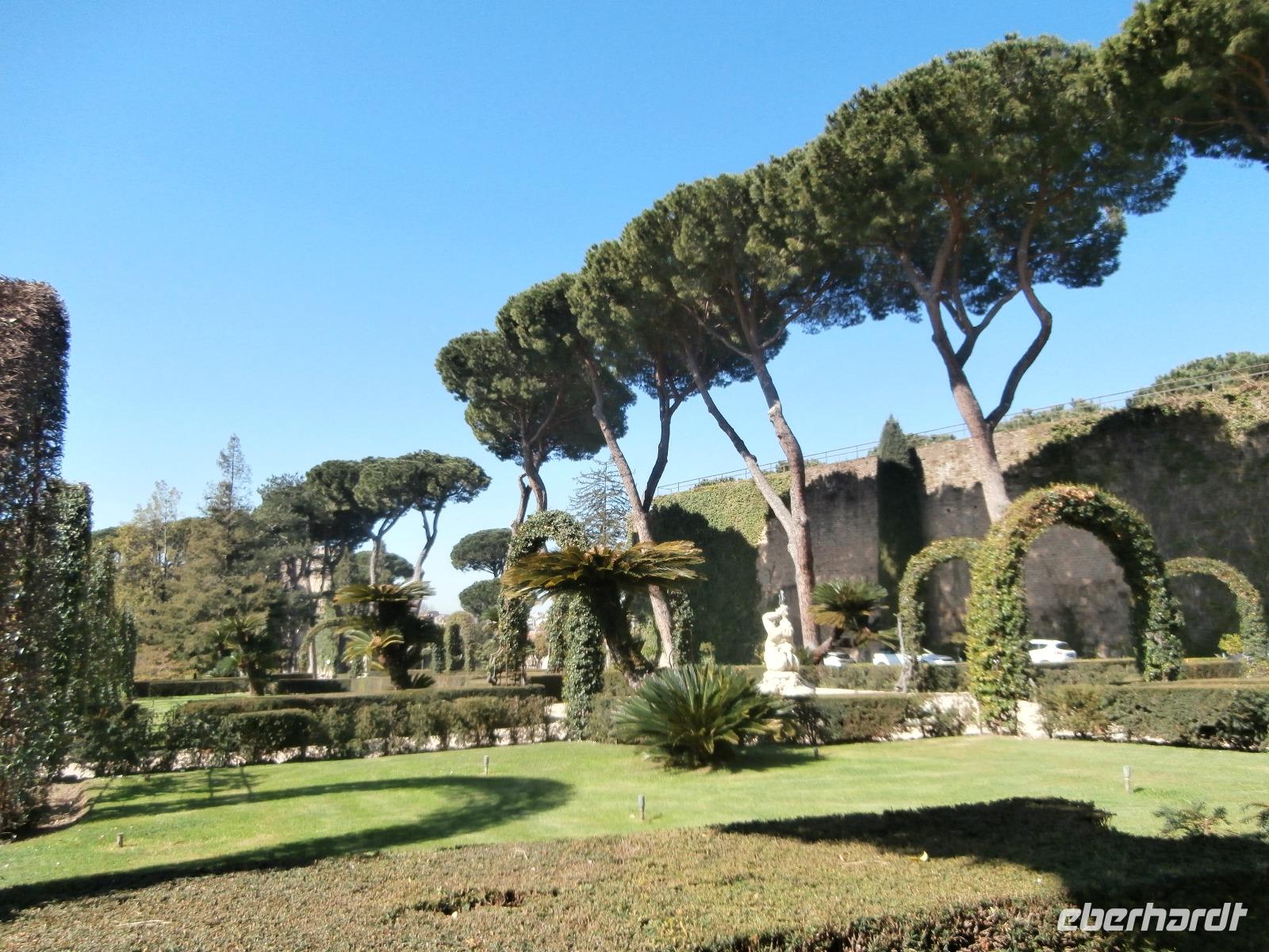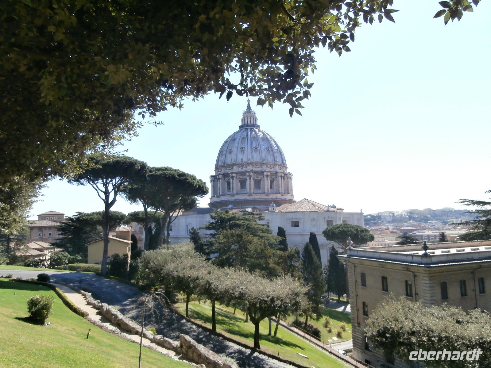 Heute Morgen nehmen wir die Metro und fahren bis zur Station Ottaviano, gemeinsam begeben wir uns zum Eingang der Vatikanischen Museen, wo wir uns in die Warteschlange einreihen. Roswitha Wagner, unsere Führerin im Vatikan, erwartet uns schon. Ausstaffiert mit den Audio Guides begeben wir uns hinaus in das fantastische Reich der Vatikanischen Gärten, ein von schönen Pflanzen und vielen alten Bäumen und Bauwerken entstandenes Paradies inmitten des Vatikanstaates.