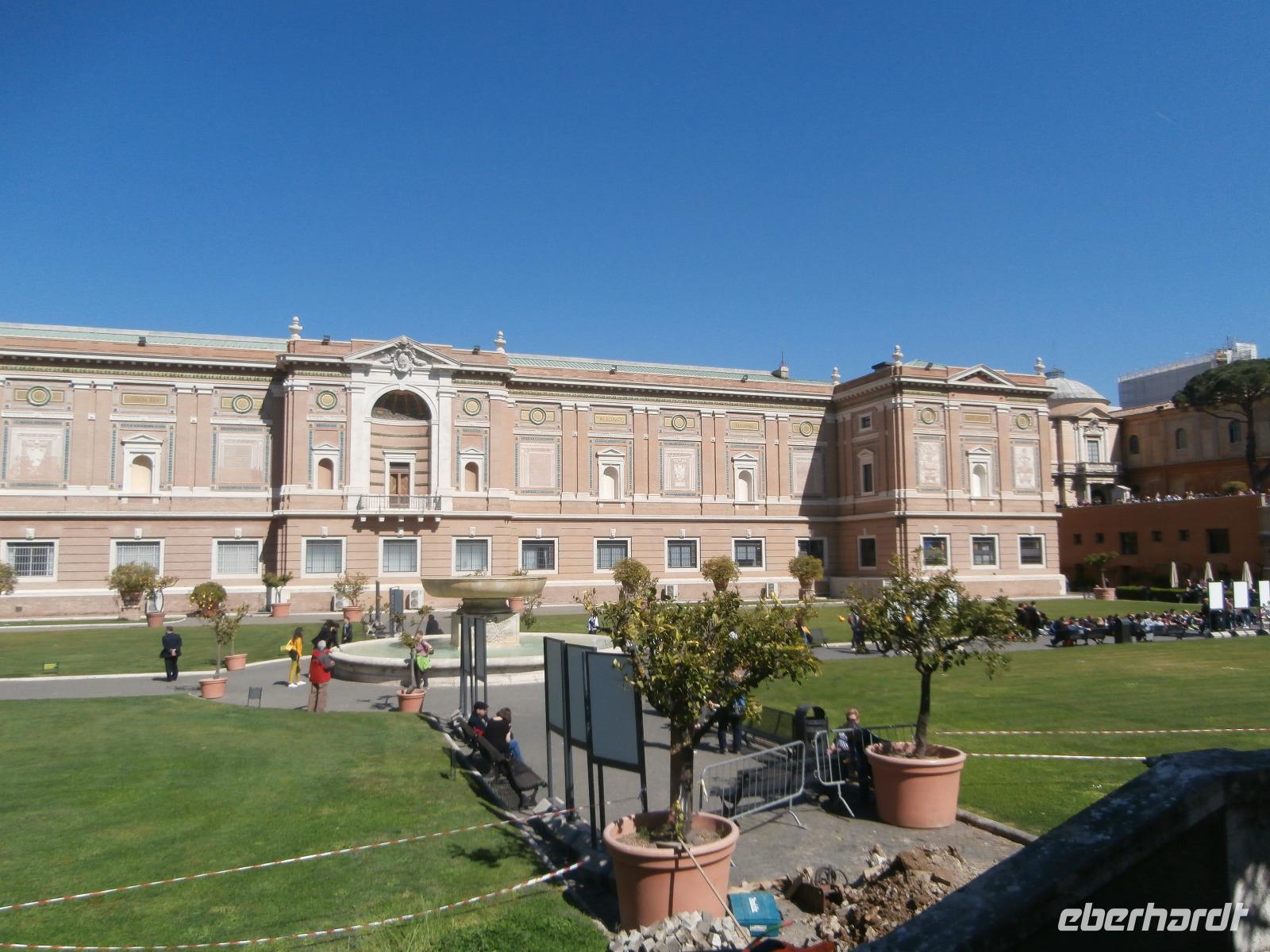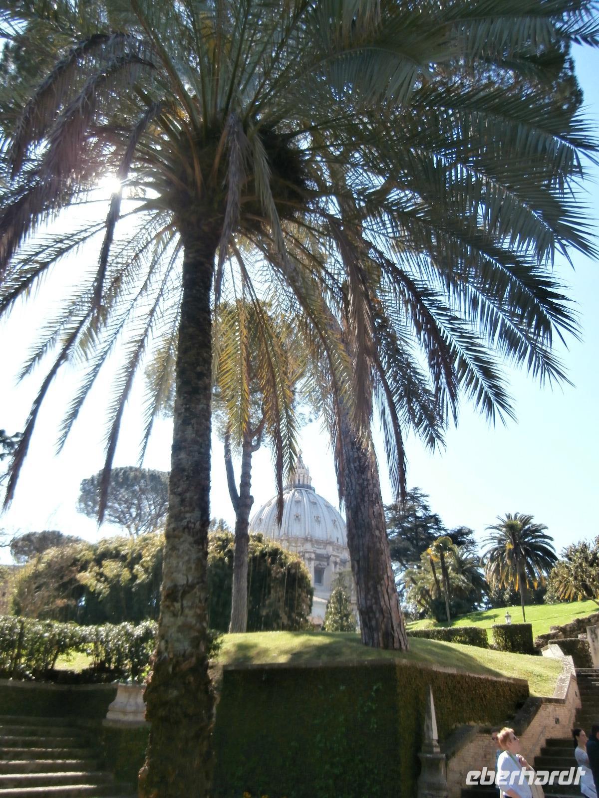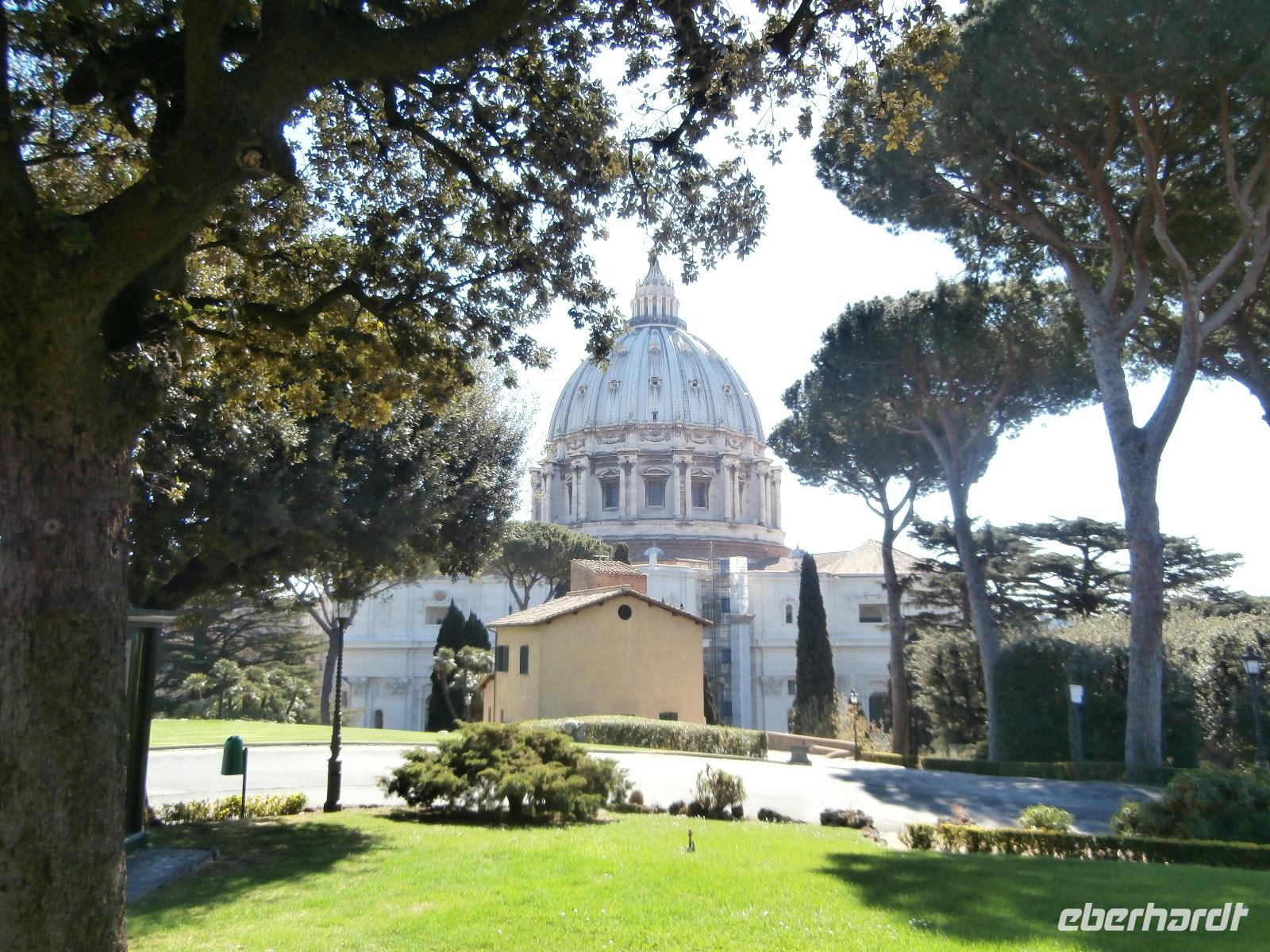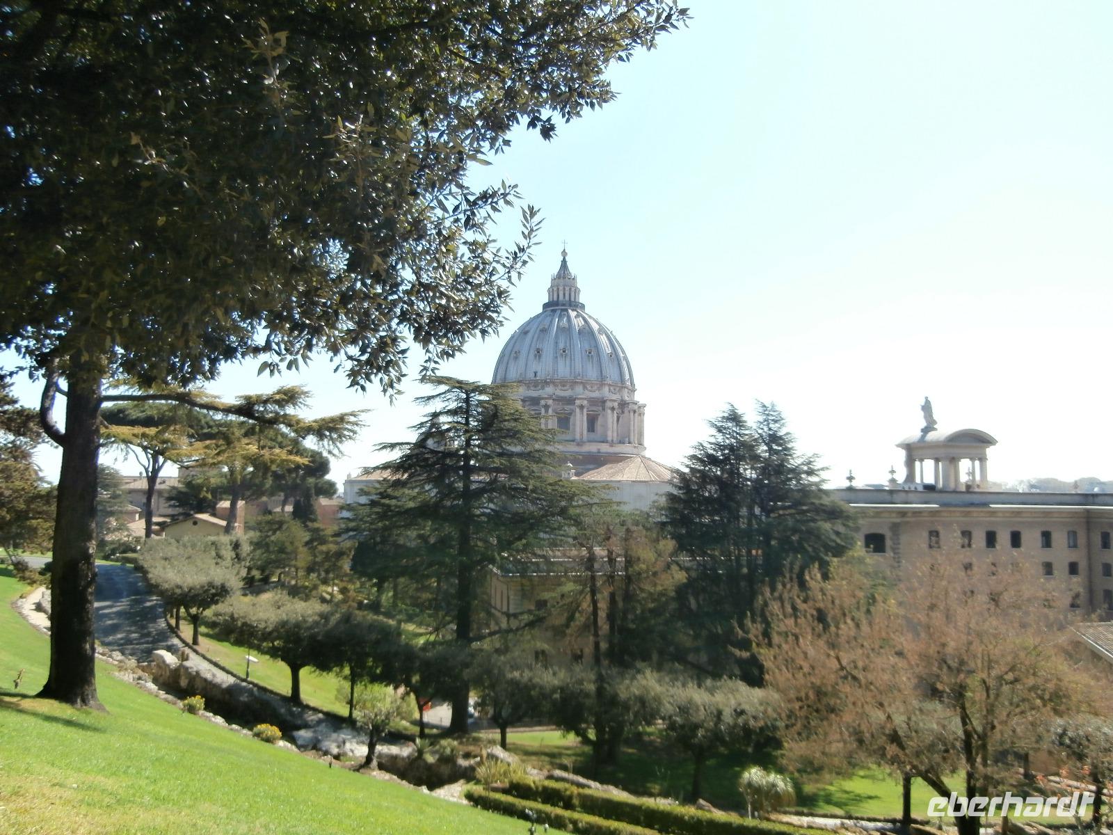 Heute Morgen nehmen wir die Metro und fahren bis zur Station Ottaviano, gemeinsam begeben wir uns zum Eingang der Vatikanischen Museen, wo wir uns in die Warteschlange einreihen. Roswitha Wagner, unsere Führerin im Vatikan, erwartet uns schon. Ausstaffiert mit den Audio Guides begeben wir uns hinaus in das fantastische Reich der Vatikanischen Gärten, ein von schönen Pflanzen und vielen alten Bäumen und Bauwerken entstandenes Paradies inmitten des Vatikanstaates.