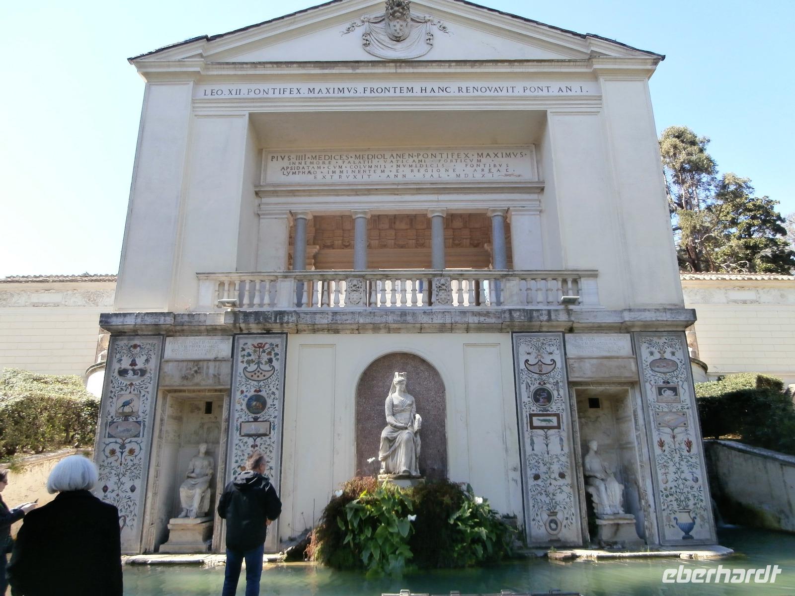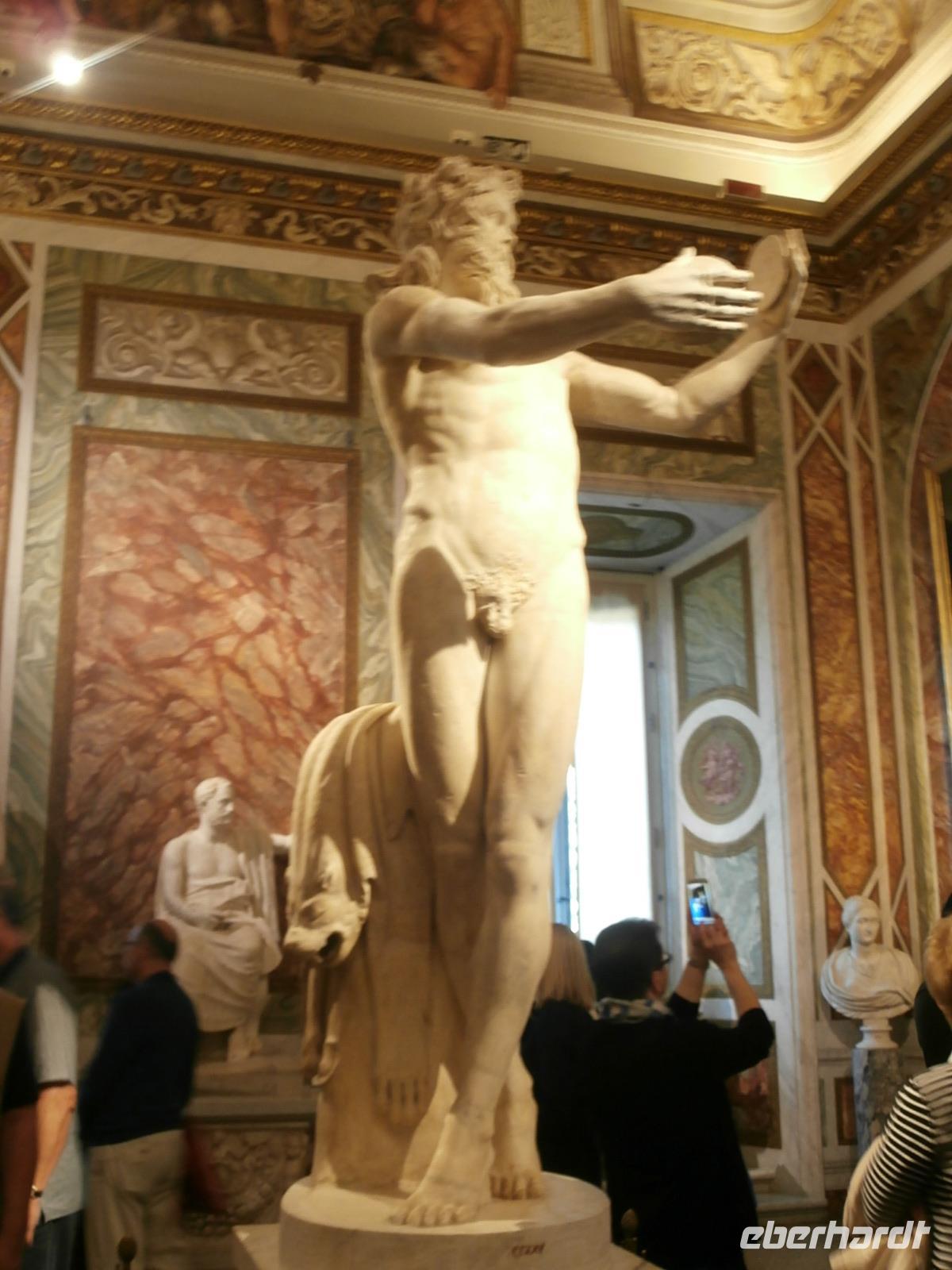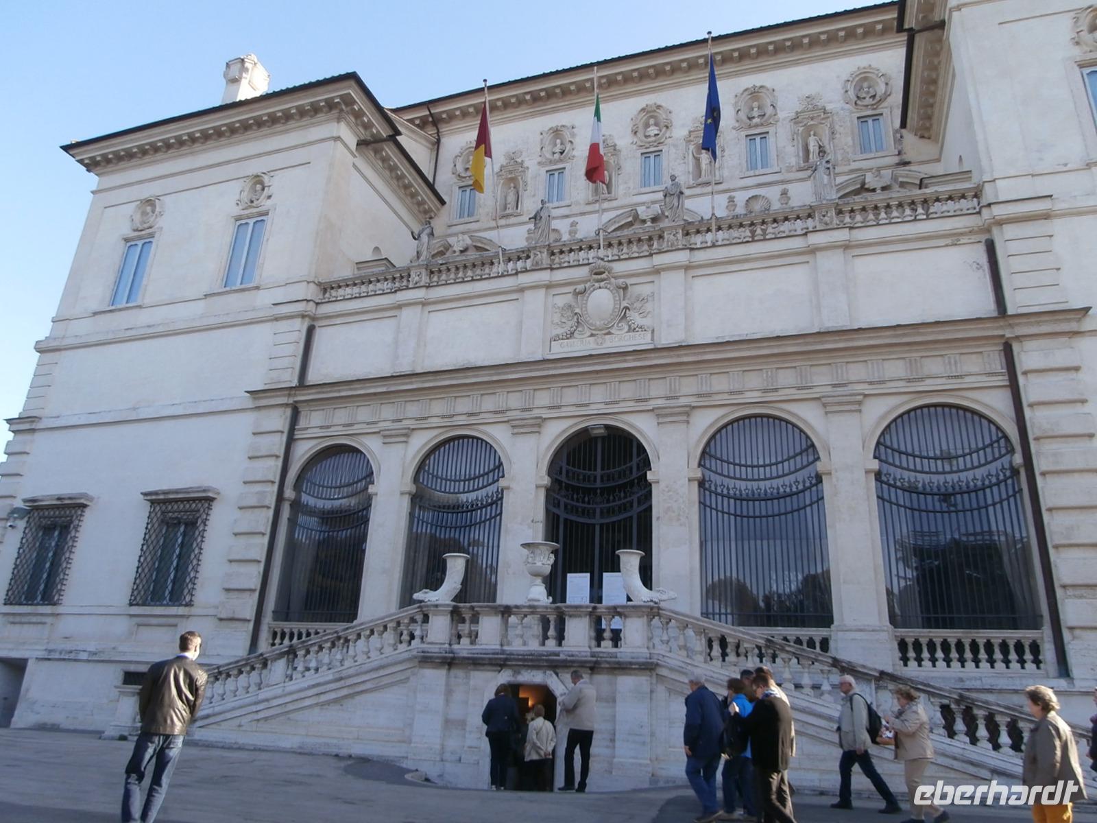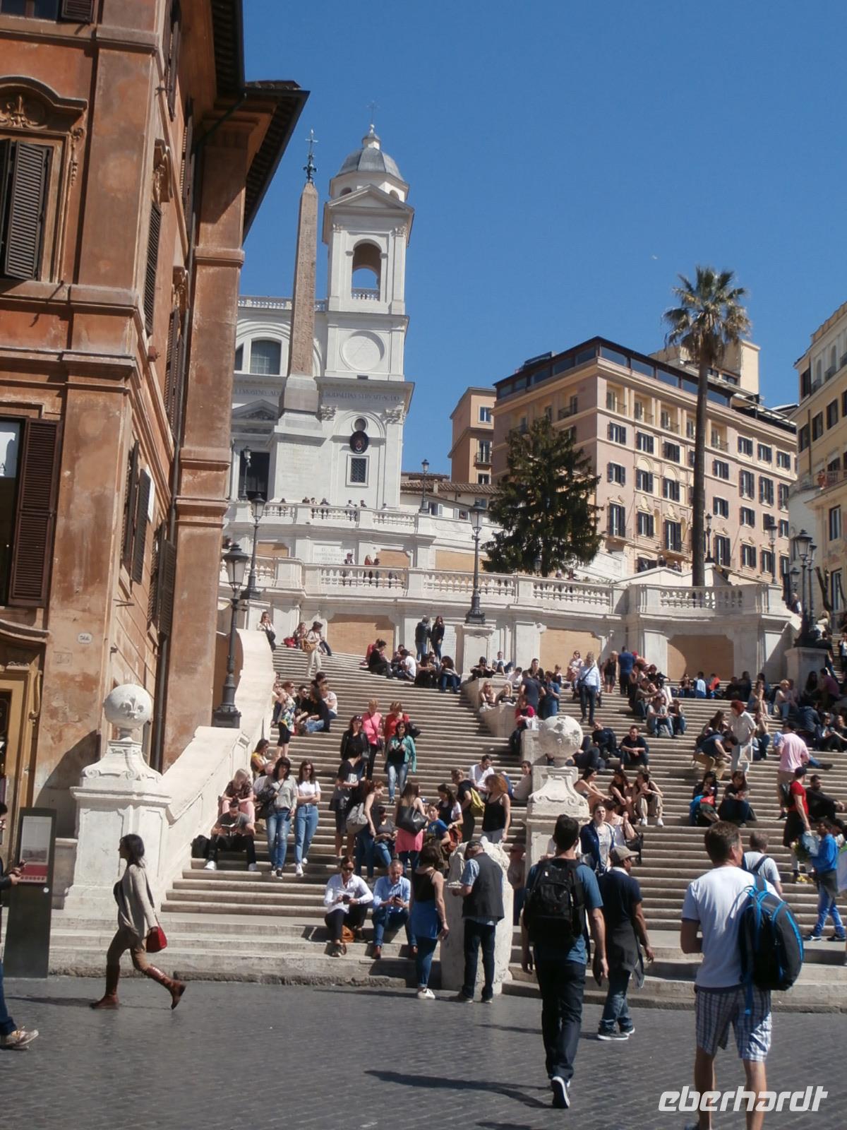 Ein angenehmer Spaziergang von ca. 20min führt uns am Morgen zur Villa Borghese. Es erwartet uns Agnieszka am Eingang zur Villa, der Name bedeutet im italienischen Park und bedeckt eine Fläche von 80 ha. Er wurde Anfang des 17. Jh. von Kardinal Scipione Caffarelli Borghese angelegt. Heute ist der Park öffentlich zugänglich und ein vielbesuchter Kulturpark. Wir besichtigen einen Teil der Galleria Borghese, die im 17. Jh. angelegt wurde. Das Museum begeistert mit einer Vielzahl von Gemälden, Mosaiken und Skulpturen, wir sehen Meisterwerke von Caravaggio, Raffael und Bernini. Mit Begeisterung lauschen wir den Ausführungen unserer Reiseleiterin Agnieszka, sie führt uns die eine oder andere Skulptur in lebendiger Art vor. Spazierend erreichen wir den Pincio Park und blicken hinunter zum Piazza del Popolo, er präsentiert sich heute im neoklassizistischen Stil. Die Spanische Treppe erreichen wir im Anschluss, diese bekannte Freitreppe ist heute ein beliebter Treffpunkt für Jung und Alt. Es führen 138 Stufen hinauf zur Kirche Santa Trinita die Monti und der Brunnen auf dem Platz unterhalb der Treppe hat eine Geschichte zu erzählen. Ein angeschwemmtes Boot nach einem Hochwasser des Tibers soll die Inspiration des Künstlers gewesen sein, danach hat er den Bau in dieser Form realisiert. Da hier auch das bekannte Café Greco ist, in dem sich die Deutschen u. a. auch Goethe oder Wagner getroffen haben, empfehlen wir den Besuch unbedingt unseren Reisegästen. Letzter Besichtigungspunkt für heute ist der Trevi Brunnen. Vorbei an der Spanischen Botschaft und der Säule der unbefleckten Empfängnis Marias erreichen wir ihn. Er ist der größte Brunnen in der Stadt und stellt das Meer mit Neptun in der Mitte dar, dabei wird er von zwei Tritonen auf Seepferden flankiert. Hier endet unsere Führung, wir bedanken und verabschieden uns von Agnieszka, obwohl viele von uns sie noch einmal am Abend zur Blauen Stunde wiedersehen. Den Nachmittag verbringen wir individuell zum Bummeln und Shoppen in Rom.