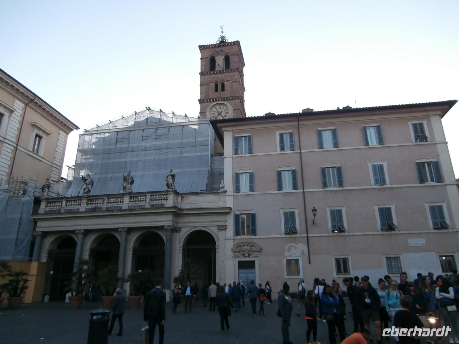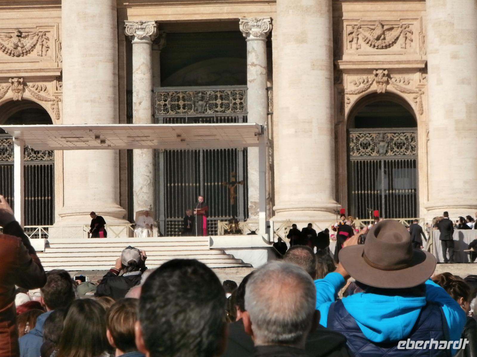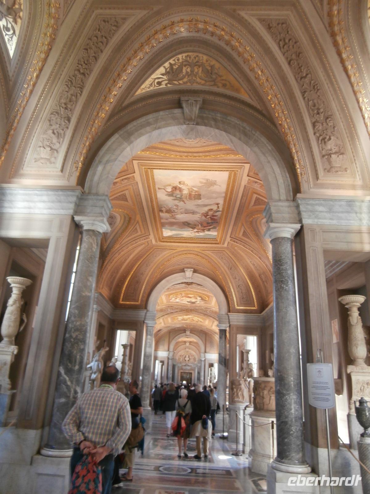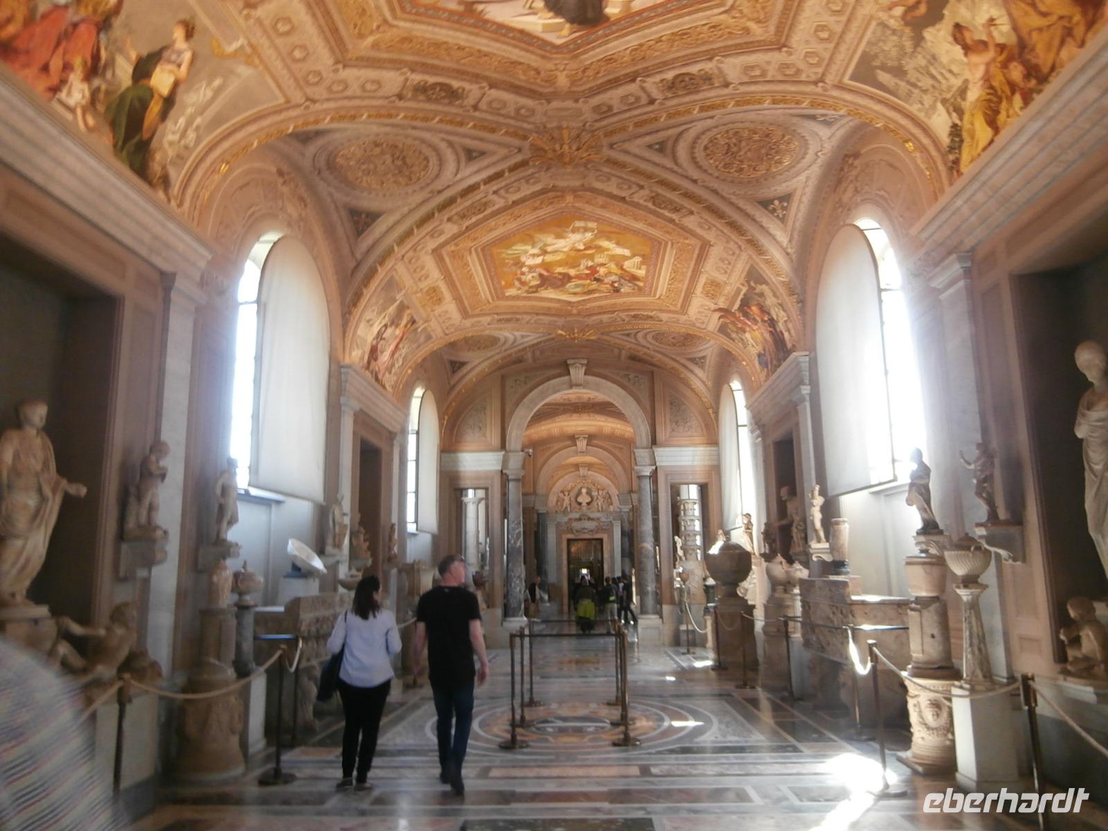 Die Gesamtanlage des Petersplatzes, der übrigens den Grundriss eines auf den Kopf gestellten Schlüssellochs hat und von Bernini entworfen wurde, beschreiten wir zum Teil beim Verlassen des Petersdomes.