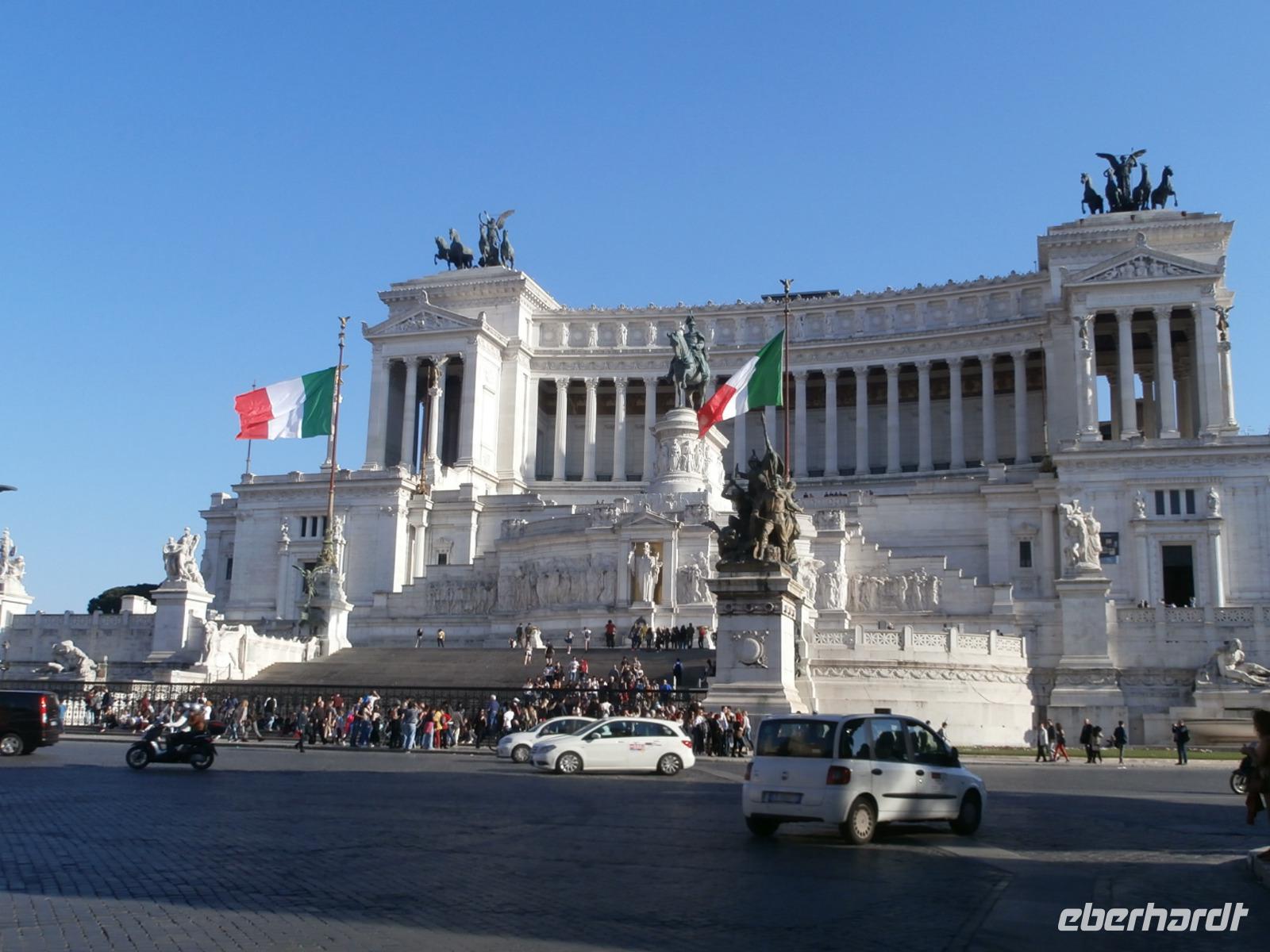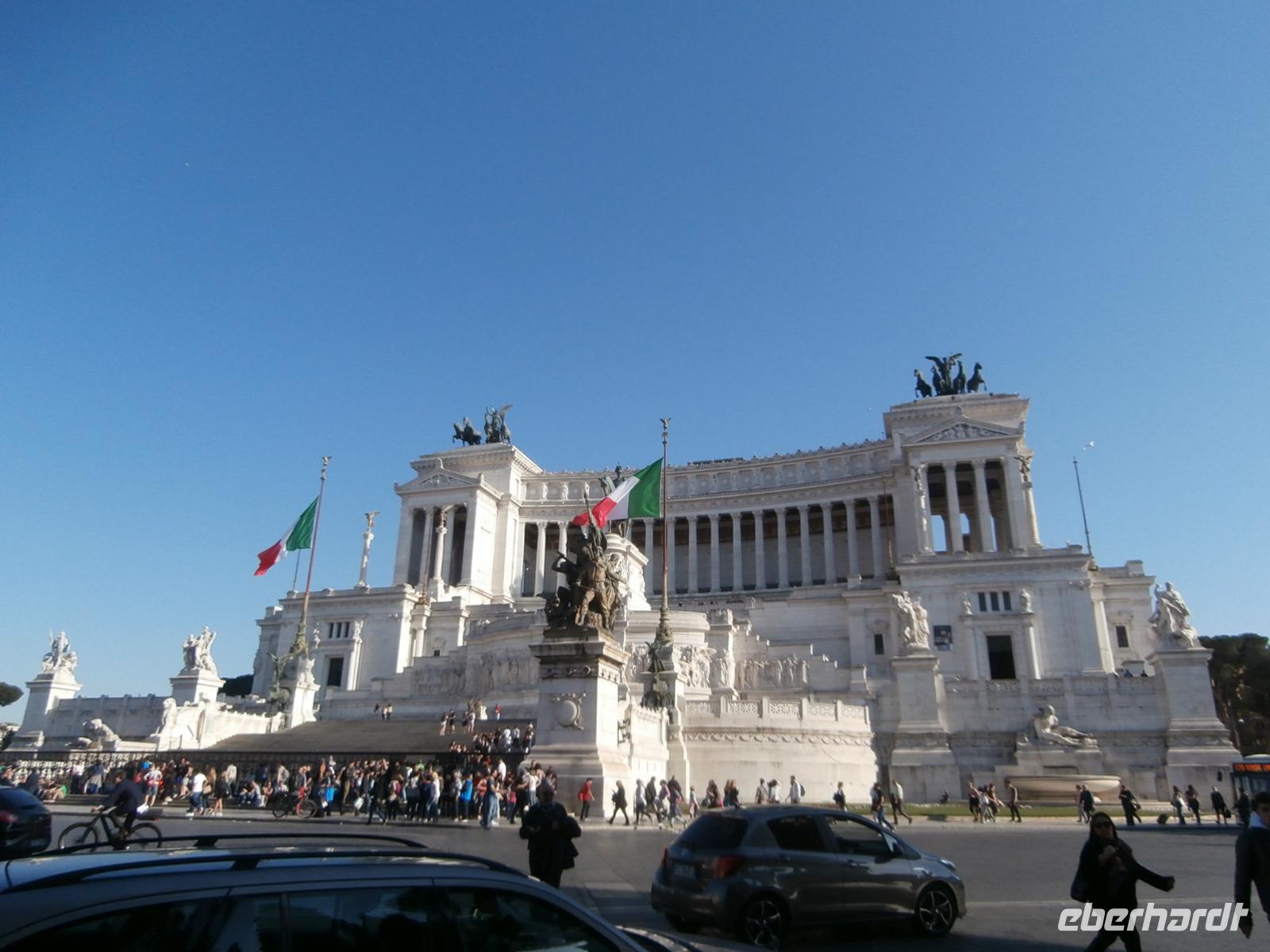 Wir starten unsere "Rom Tour" in Berlin Tegel, 10 Reisegäste fliegen mit mir nach Rom. Von Stuttgart, Frankfurt und Düsseldorf kommen noch weitere Gäste unserer Reisegruppe nach Rom geflogen. Nach der verspäteten Landung in Rom nehmen wir unser Gepäck in Empfang und begeben uns zum Ausgang. Vom örtlichen Busunternehmen werden wir nach intensiver Suche endlich empfangen und zu den Busparkplätzen gebracht. Hier steht der Bus der Firma Bonanni Express, die Koffer werden verladen und dann geht es zum Hotel Empire Palace durch den römischen Verkehr. Gegen 14.30 Uhr treffen wir im Hotel ein, unsere Zimmer können wir schon beziehen. Unsere Reisgäste aus Frankfurt, Düsseldorf und Stuttgart anreisend, treffen am späten Nachmittag im Hotel Empire Palast ein. Am Abend treffen wir uns mit den Reisegästen, die ihr Abendessen im Hotel gebucht haben. Wegen eines im Hotel stattfindenden Kongresses nehmen wir das Essen in der nahegelegenen Osteria 44 ein. Herzlich werden wir empfangen und fürstlich werden wir bedient. Das servierte Menü schmeckt vorzüglich, Wein und Wasser bekommen wir gratis serviert. Wir freuen uns schon auf Morgen, denn da werden wir wieder im Restaurant erwartet. Wir sind alle sehr müde, ist doch Zeitumstellung in der Nacht zuvor auf Sommerzeit gewesen, eine Stunde weniger Schlaf müssen wir alle nachholen.