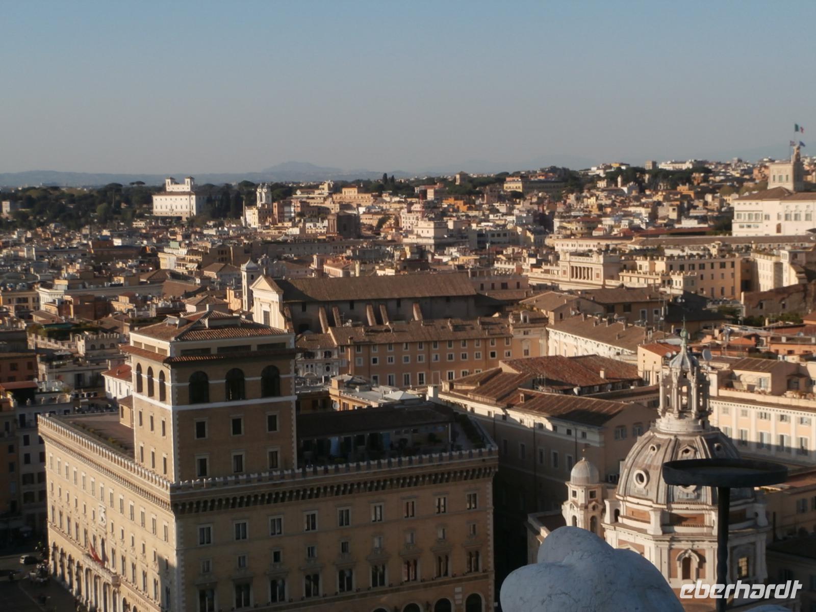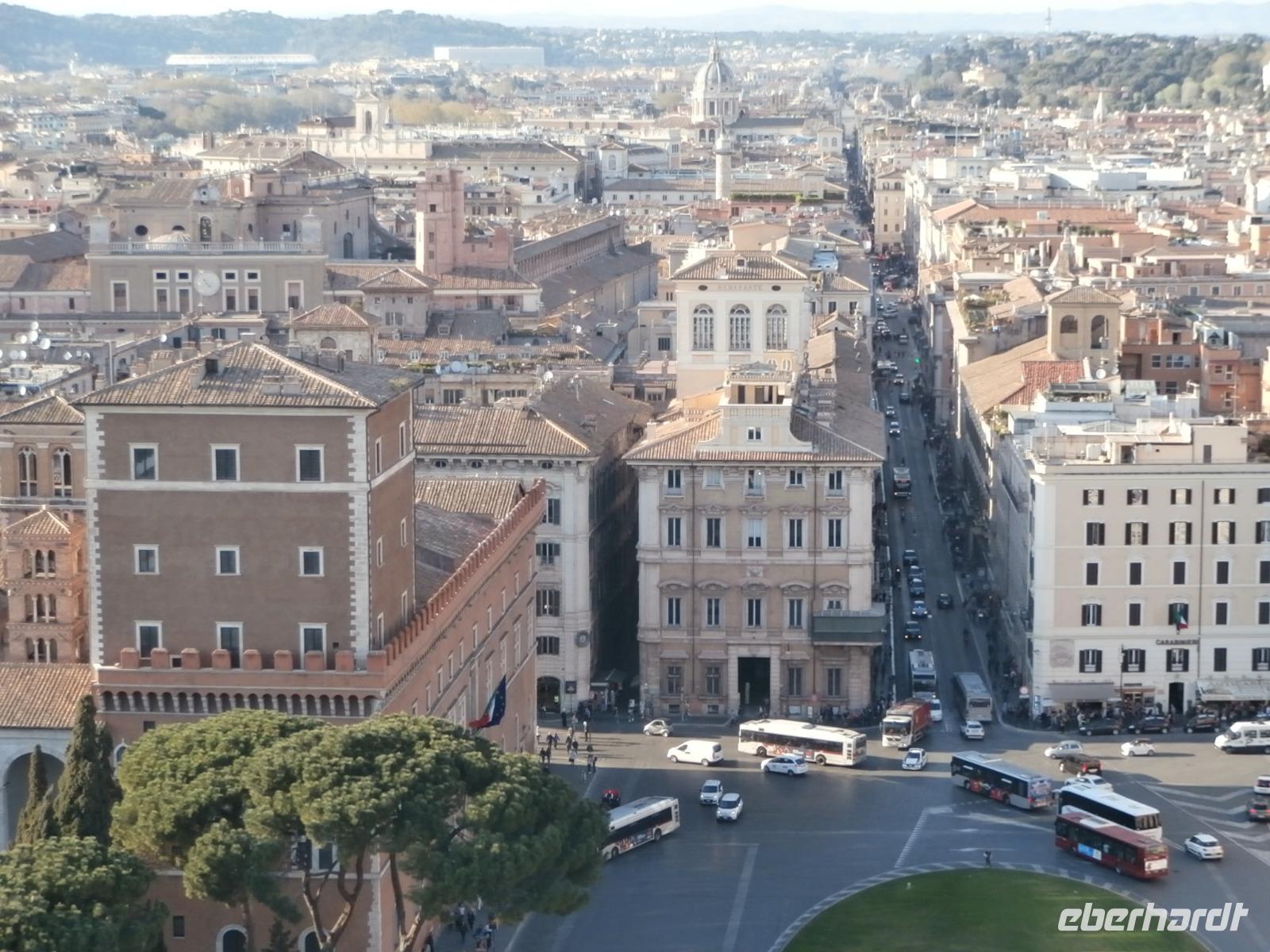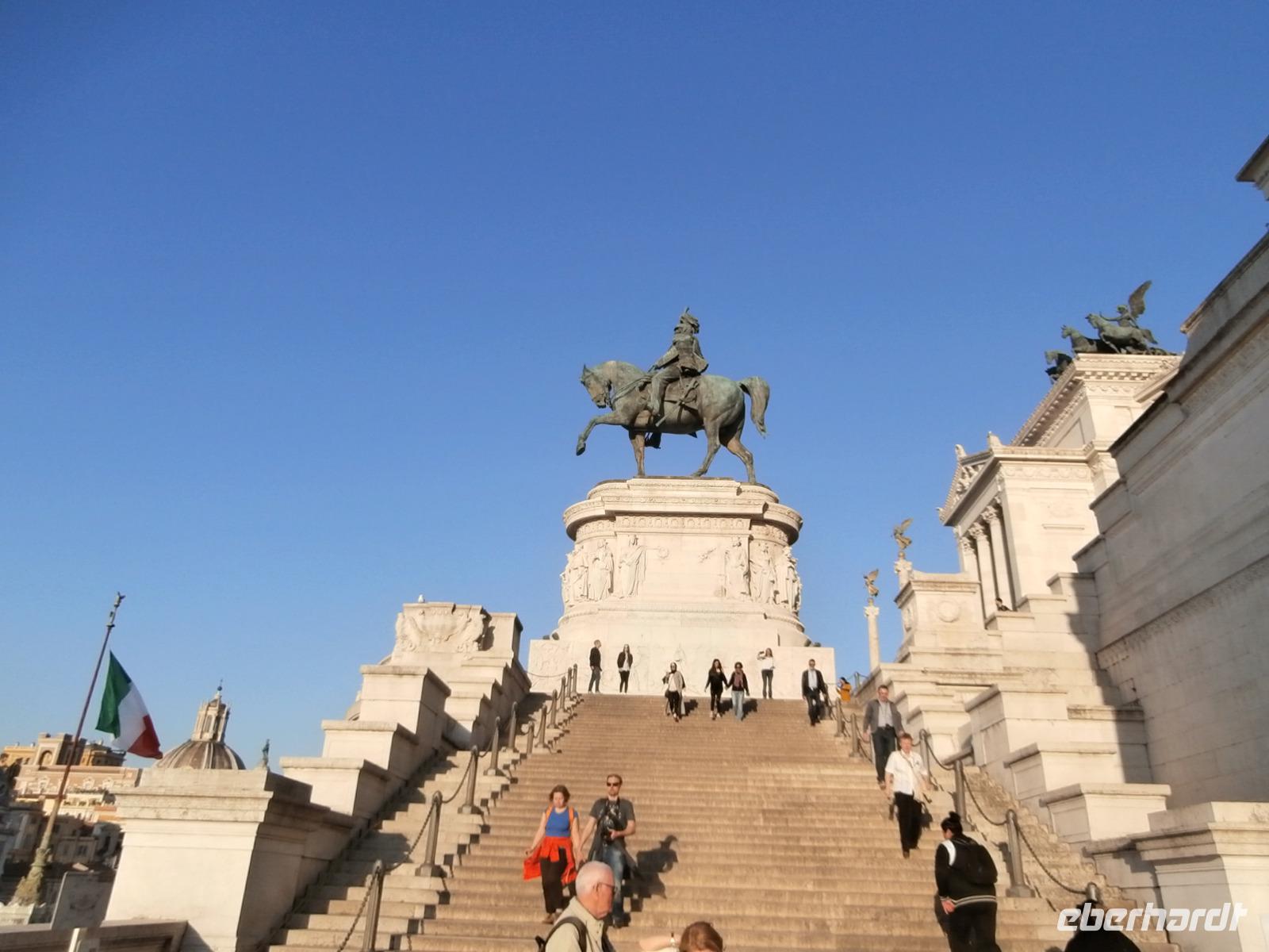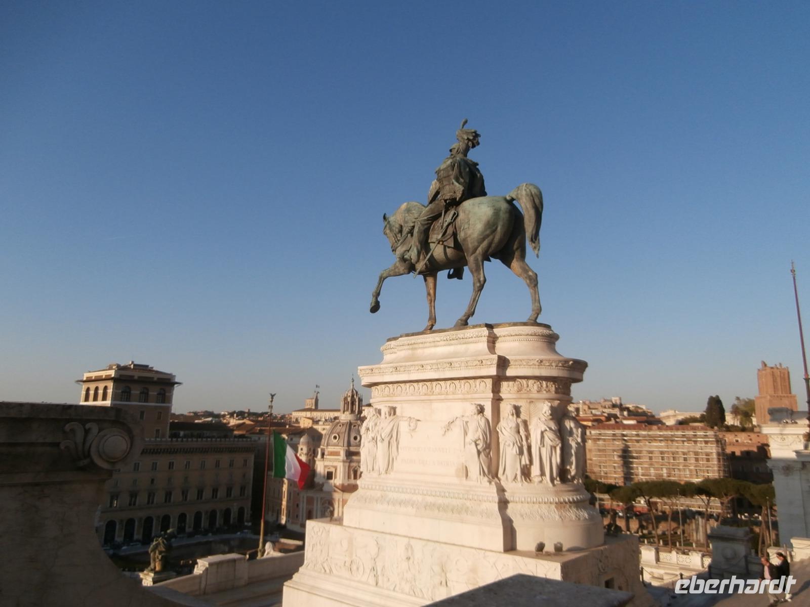 Am Monumento a Vittorio Emanuele II. treffen wir uns am Abend zum Stadtspaziergang mit Agnieszka. Mit einem 360-Grad-Blick über das antike Rom und die Altstadt bis hin zu den Albaner Bergen, werden wir von der Terrasse auf 70 m Höhe belohnt. Weiter führt uns Agnieszka vorbei am Marcellus Theater über den Tiber bis ins ursprüngliche Rom, nach Trastevere. Hier endet die Blaue Stunde und unsere Rom Reise intensiv. Mit dem Bus fahren wir gemeinsam zum Empire Palast Hotel zurück. Im Hotel Restaurant nehmen wir unser Abendessen ein, mit einem neuen Menü erwartet uns die Mannschaft. Es ist alles sehr schmackhaft und schön hergerichtet. Müde fallen wir heute in die Betten. Schön war auch dieser letzte Tag unseres intensiven Aufenthaltes in Rom.
