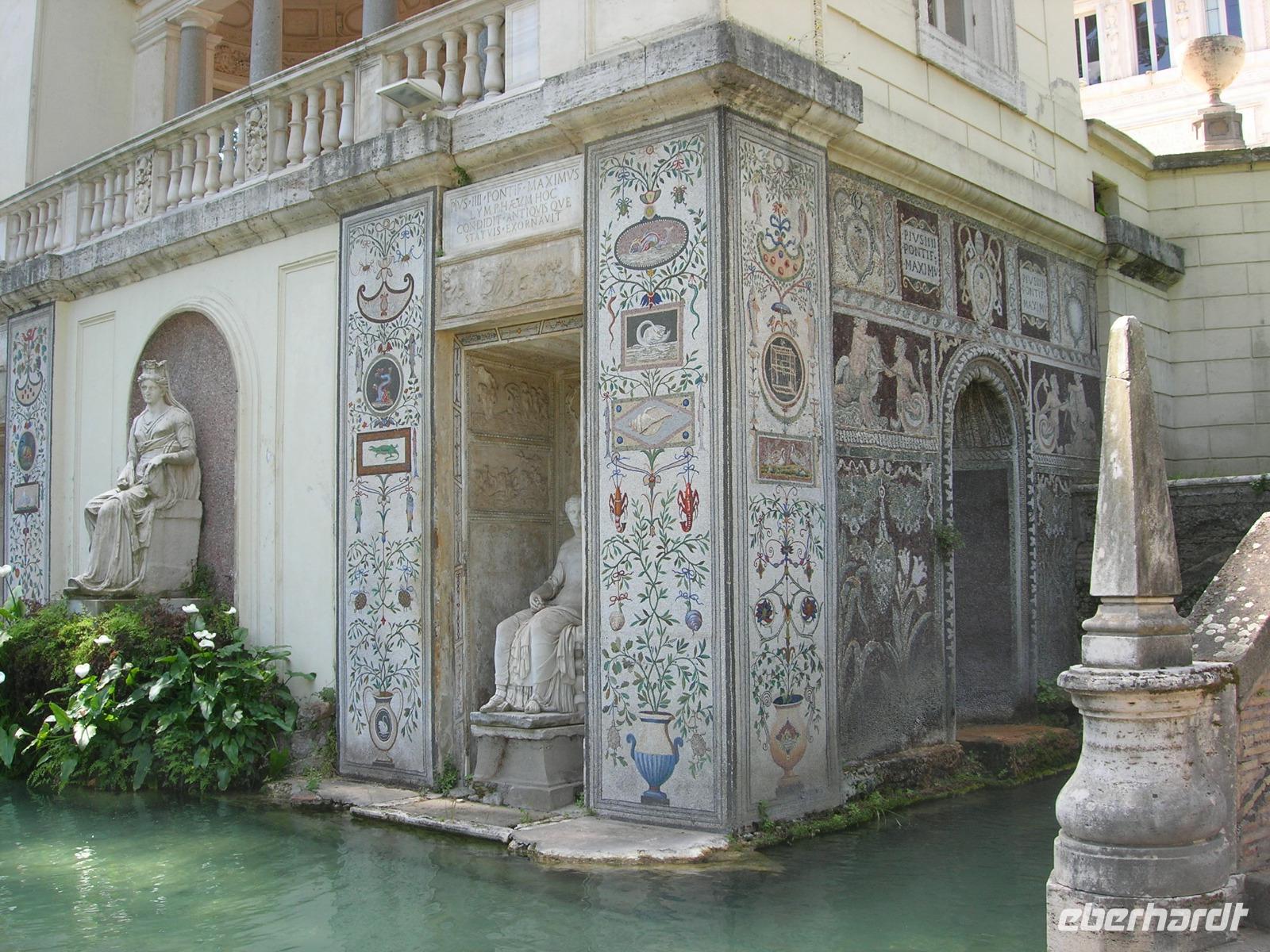 Dann ging es wieder hinunter auf den Vorplatz der Spanischen Treppe und am einstigen Künstlerkaffee - dem Cafe Greco in der Via Condottti - vorbei zum Corso. Während wir auf dem Corso entlang spazierten sahen wir den Palazzo Montecitorio, das Parlamentsgebäude Italiens, und gelangten durch Passage Colonna zum Trevibrunnen. Der 1762 von Nicola Salvi geschaffene Brunnen wurde legendär durch die berühmte Fimszene in Federico Fellinis Film "La Dolce Vita" (1960), in der Anita Ekberg und Marcello Mastroianni ein Bad im Brunnen nahmen. Auch heute ist er ein beliebter Treffpunkt der Touristen, den es gilt nach wie vor der Brauch: wer eine Münze in den Brunnen wirft, kommt bestimmt wieder einmal nach Rom.