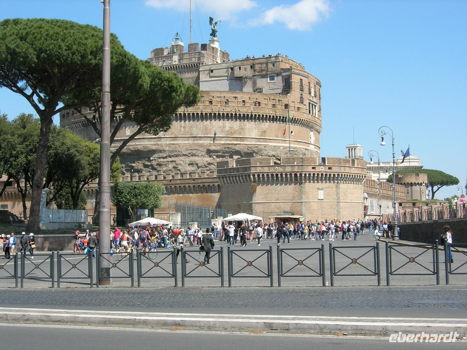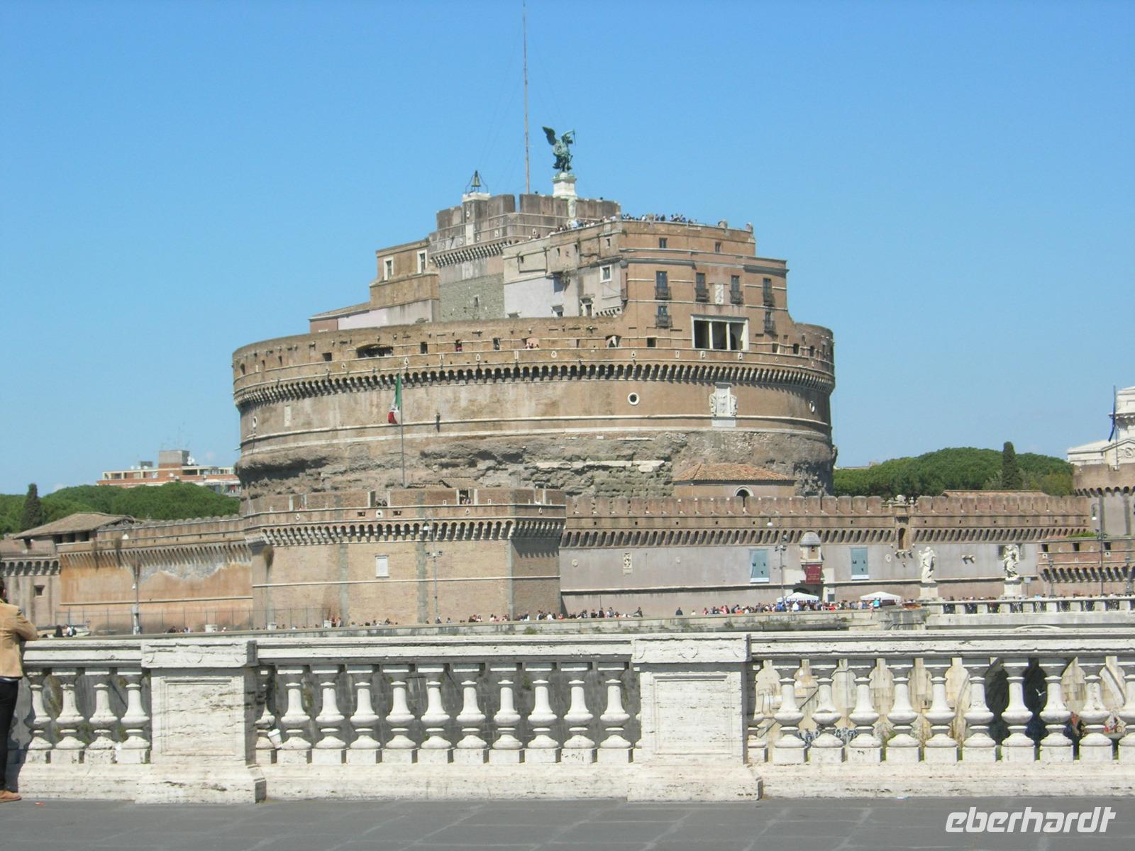 Nach dem Frühstück gingen wir gemeinsam zur Piazza Garibaldi. Dort am Reiterdenkmal des berühmten Heerführers Giuseppe Garibaldi, der mit dem Grafen Camillo Benso Cavour und dem Dichter Alessandro Manzoni zu den führenden Köpfen der italienischen Einigungsbewegung gehörte, sprach ich über die Vereinigungskriege in Italien sowie über die Verteidigung Roms vor den anrückenden Franzosen im Jahr 1849. Dann fuhren wir mit dem Bus zur Piazza Fiorentini, von wo aus wir in wenigen Minuten den Petersplatz erreichten. Noch vor Beginn der Papstaudiens erläuterte uns unsere Stadtführerin das Geschehen auf dem Petersplatz. Zunächst wurden die anwesenden Gäste in deren Landessprachen begrüßt. Auch unsere Gruppe war dabei. Dann fuhr Papst Franziskus im Papa mobil ganz nahe an uns vorbei. Die nun folgende päpstliche Ansprache wurde in verschiedenen Sprachen zusammengefasst wiederholt. Nach dem musikalisch abgerundeten Ende der Papstaudienz, führte uns Sylvia zur Engelsburg. Sie wurde im Jahr 129 unter Kaiser Hadrian als für ihn bestimmtes Mausoleum errichtet. Später wurde sie als Zitadelle und Gefängnis genutzt. In politisch unsicheren Zeiten diente sie sogar als Wohnsitz der Päpste, die über einen schmalen Gang, dem "Passetto", unbemerkt von Vatikan in die Engelsburg fliehen konnten.