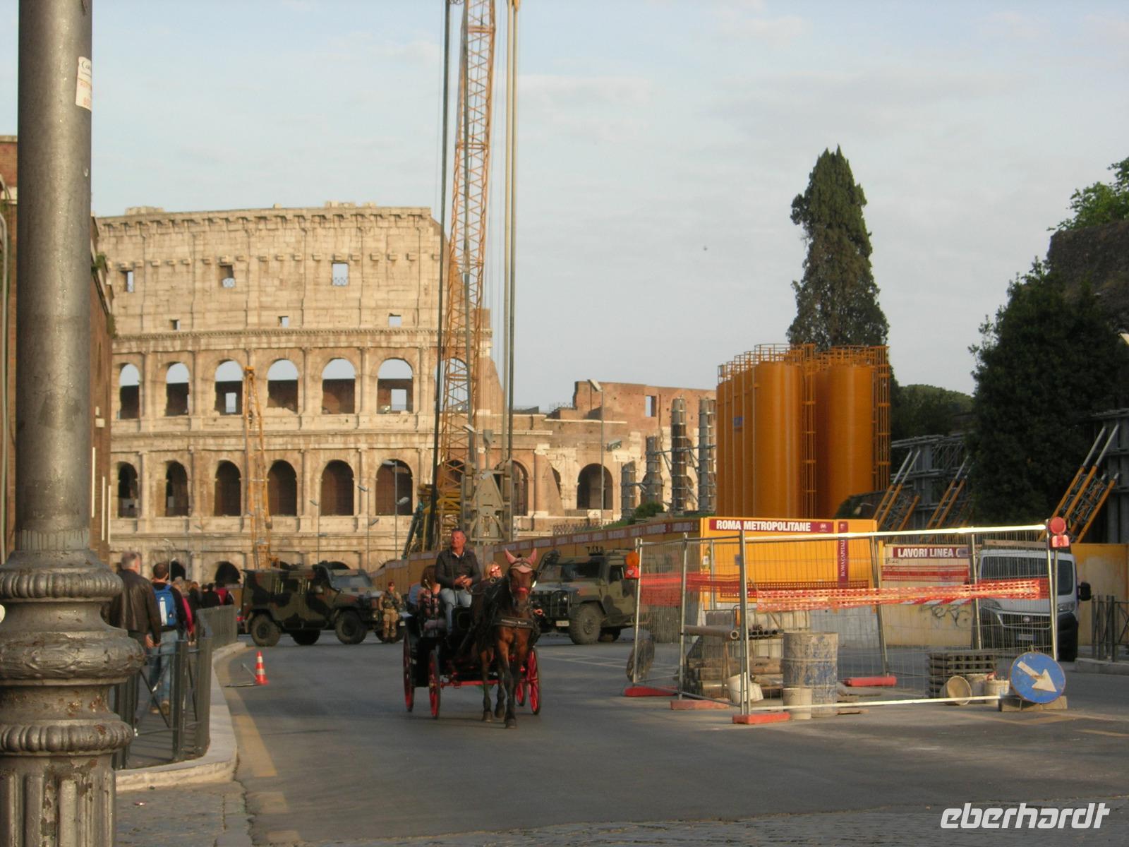 Früh am Morgen empfing uns der Frühstücksraum des Grand Hotel Gianicolo im 4. Stock mit einer traumhaften Aussicht über Rom inklusive einem ersten Blick zur Kuppel von St. Peter. Gestärkt durch ein reichhaltiges Frühstück fuhren wir dann im Stadtbus zum Kolosseum. Dort trafen wir unsere Stadtführerin Sylvia di Salvo Hillie, die uns an diesem wie auch an den kommenden Tagen durch Rom führen sollte.
