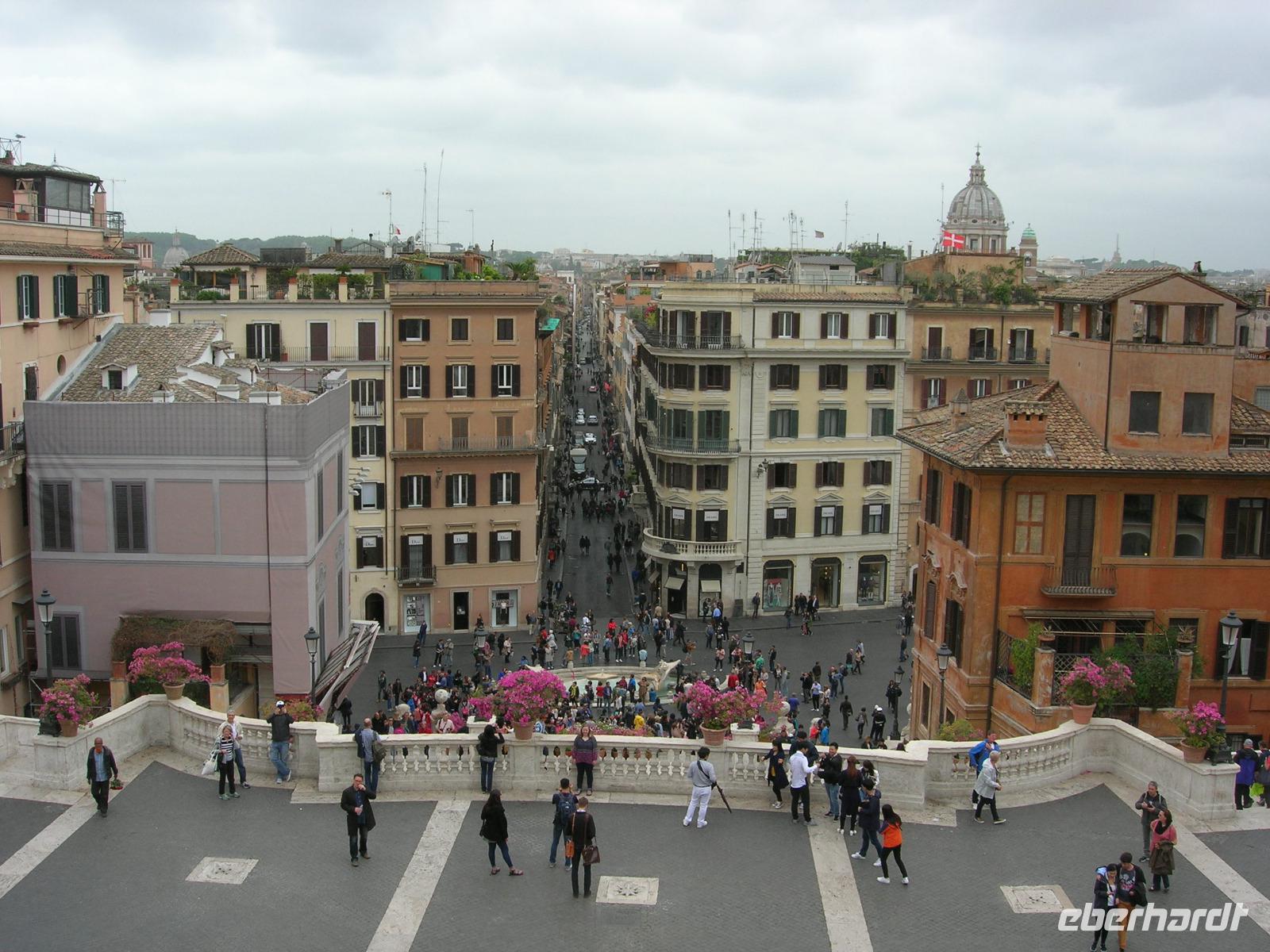 Nach einer Kaffeepause führe ich unsere Gruppe zur Casa di Goethe auf dem Corso, wo Johann Wolfgang von Goethe während seines Romaufenthaltes 1786-1788 wohnte. Anschließend sahen wir die Via Margutta, in der seit dem späten 18. Jahrhundert viele Künstlern aus den deutschsprachigen oder skandinavischen Ländern wohnten und in der noch heute Ateliers und Kunstgalerien den genius loci fortschreiben. Dann erreichten wir die Spanische Treppe, wo das Herz des internationalen Künstlerlebens in Rom im 18. und 19. Jahrhundert schlug. Sie wurde 1720 von Francesco de Sanctis erbaut wurde und lockt heute während der Hauptsaison Tag und Nacht Touristen aus aller Welt an. Oberhalb der Treppe sahen wir zur "Villa Medici" hinüber, die 1576 ihren Namen erhielt, als Kardinal Francesco di Medici sie erwarb und die seit 1803 die Französische Akademie beherbergt. Wenig später standen wir vor dem einst von der Familie Humboldt bewohnten Palazzo Tomati in der Via Sistina sowie vor dem Eingang des Palazzo Zuccari in der Via Gregoriana, der heute zur "Bibliotheca Hertziana" gehört.