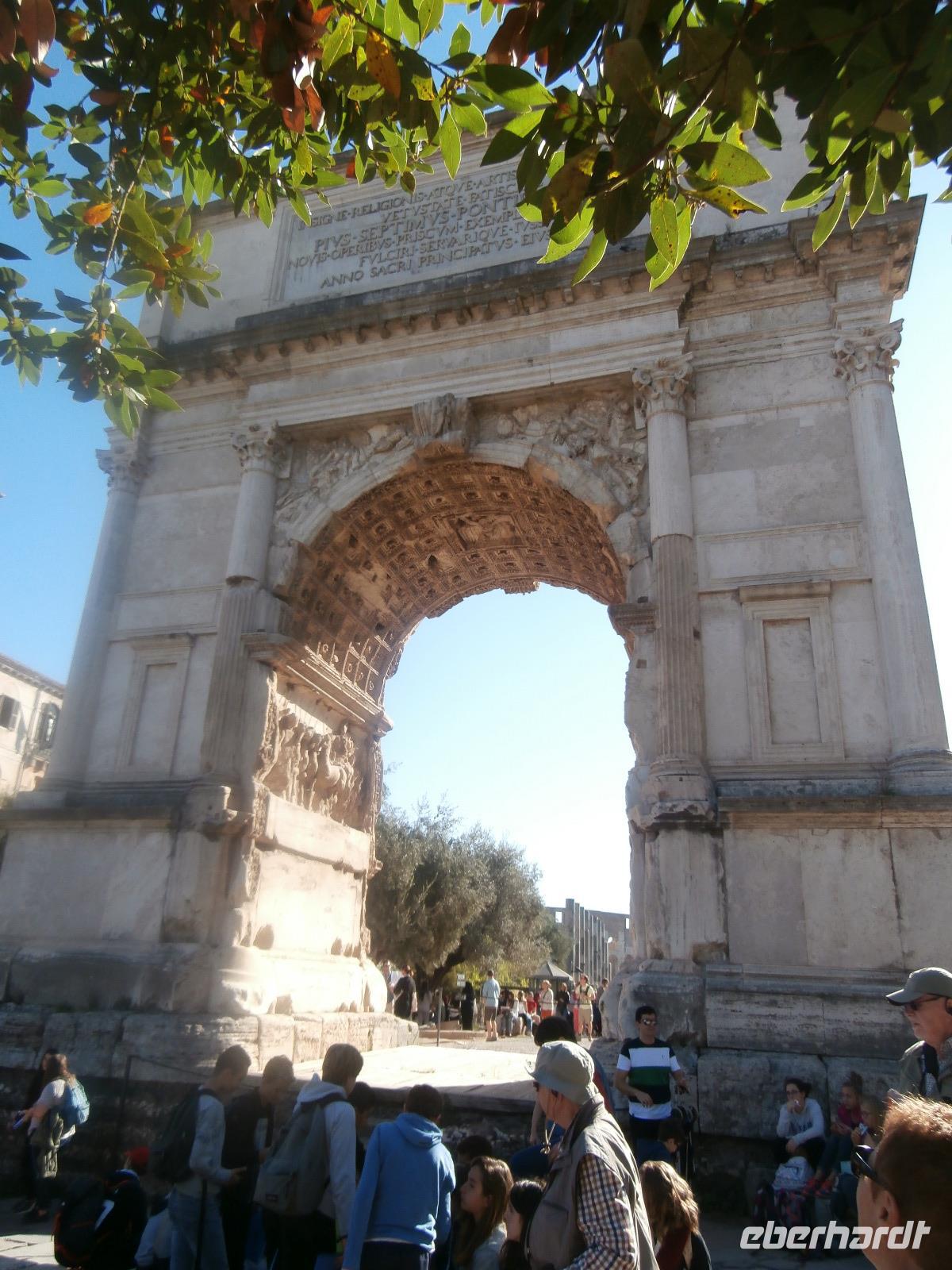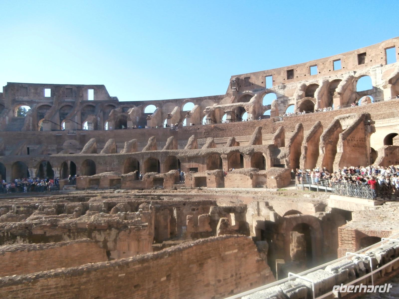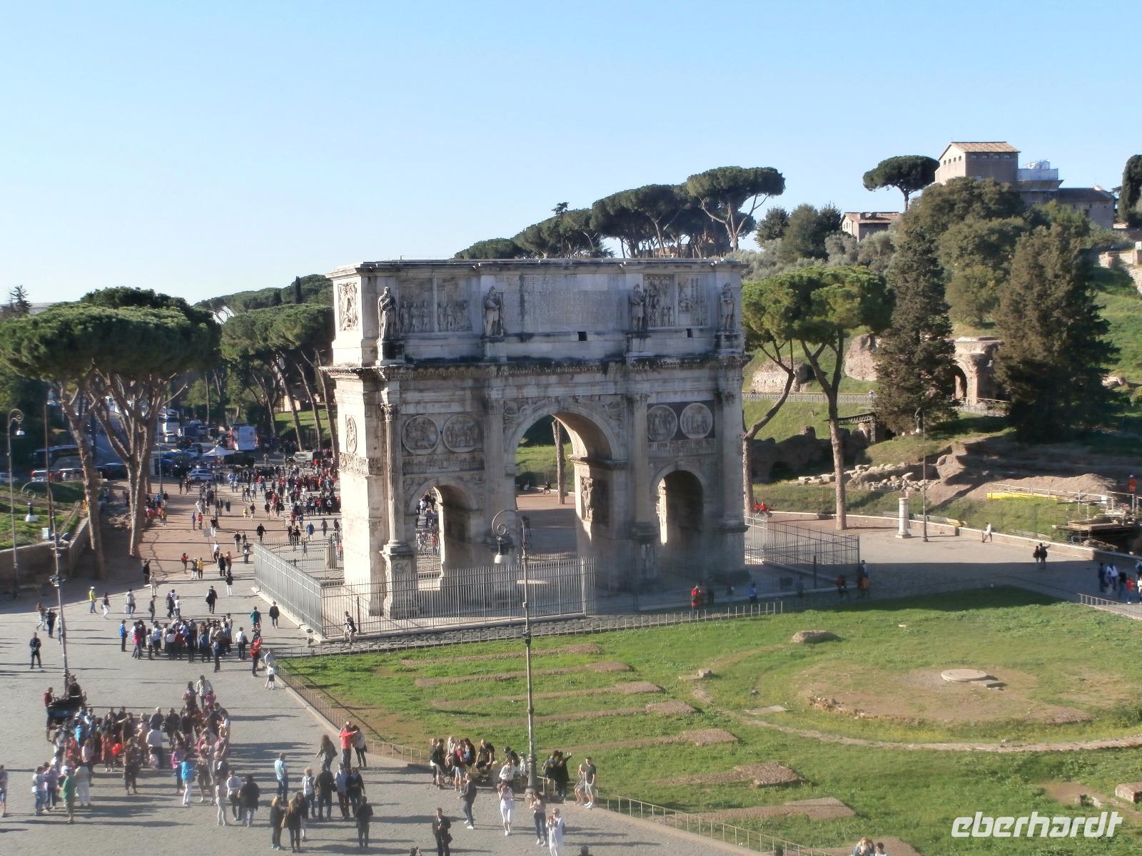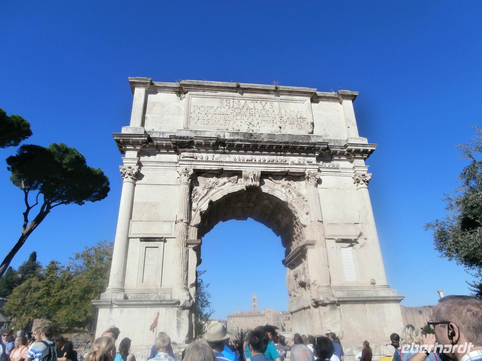 Gemeinsam fahren wir am Morgen mit dem Bus Nr. 75 in Nähe vom Hotel ab. Ingrid hat zuvor im Hotel an alle die Audioguids ausgegeben und mit uns getestet. Am Kolosseum werden wir von Sylvia, unserer örtlichen Reiseleitung, erwartet. Wir gehen zuerst ins Kolosseum, hier erfahren wir viel über die Tierkämpfe und Gladiatoren. Wir sind begeistert vom Erhalt der Anlage. Vorbei am Konstantinbogen gehen wir hinüber bis zum Forum Romanum, welches von vielen Säulen, Bögen und Tempeln reichlich zum Staunen und Sehen bietet. Den Titus Bogen halten wir fotografisch fest. Weiter gehen wir zum Piazza Venezia. Das Nationaldenkmal Emanuele II. sehen wir von der Seite. In einem Restaurant hat Sylvia für uns alle Plätze zur Mittagszeit bestellt. Sommerliche Temperaturen lassen uns schwitzen. Mit dem Bus fahren wir am Nachmittag zur Pyramide und sehen uns in nächster Nähe den Nichtkatholischen Friedhof an. Gottfried Semper, der Baumeister der Semper Oper in Dresden, ist hier beerdigt. Eine grüne Oase der Stille ist dieser Ort. Nochmals benutzen wir den Bus für unsere Fahrt zur Kirche St. Paul vor den Mauern. Ein Wald aus 80 Säulen trägt die fünf Schiffe dieser Basilika, gestiftet 386 über dem Grab des Apostels Paulus. Porträts aller bisherigen Päpste sind oberhalb der Säulen zu sehen. Der Tag unterwegs im antiken Rom ist schön aber auch anstrengend gewesen. Mit Metro und Bus fahren wir gemeinsam zum Hotel zurück.