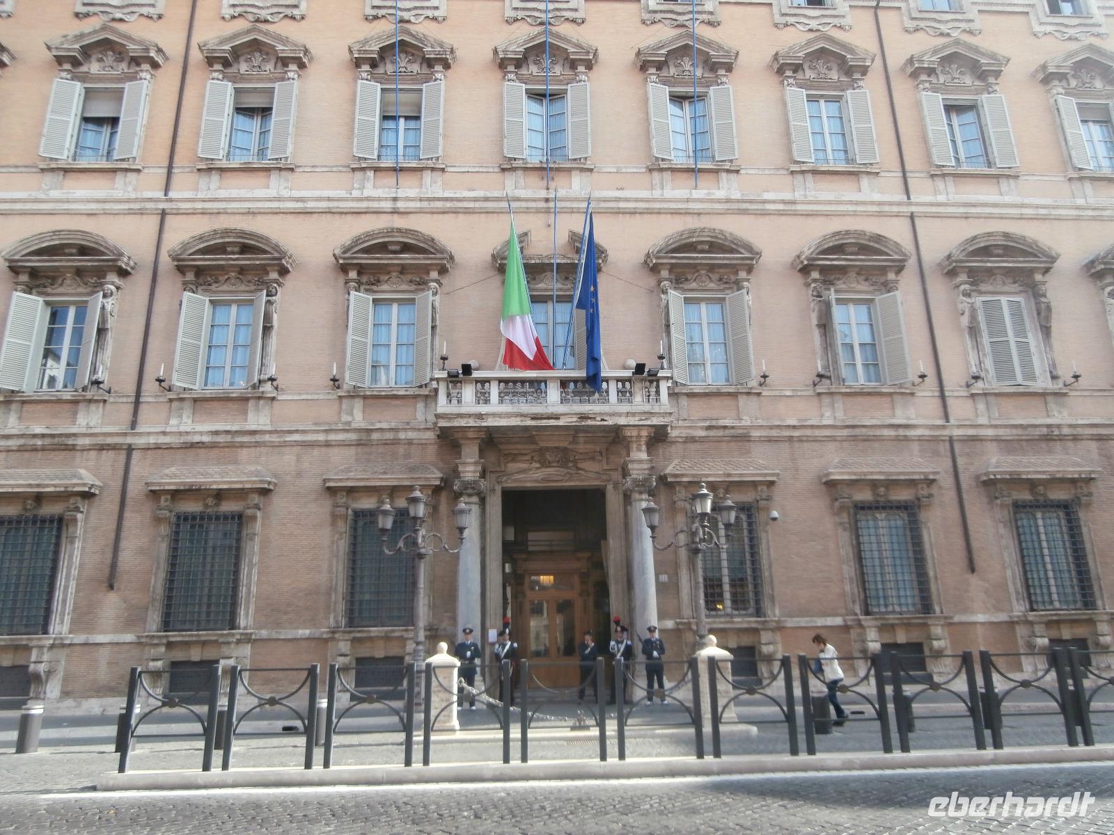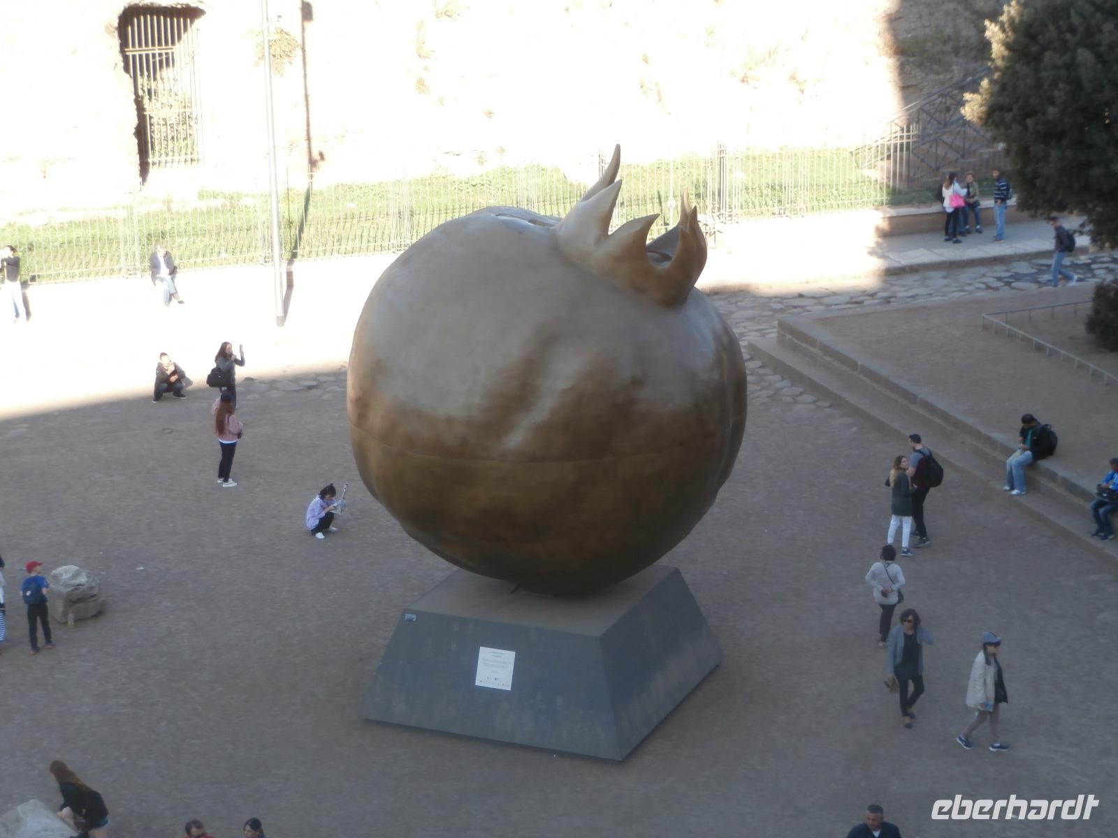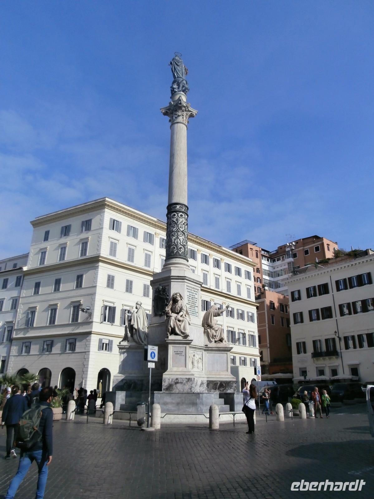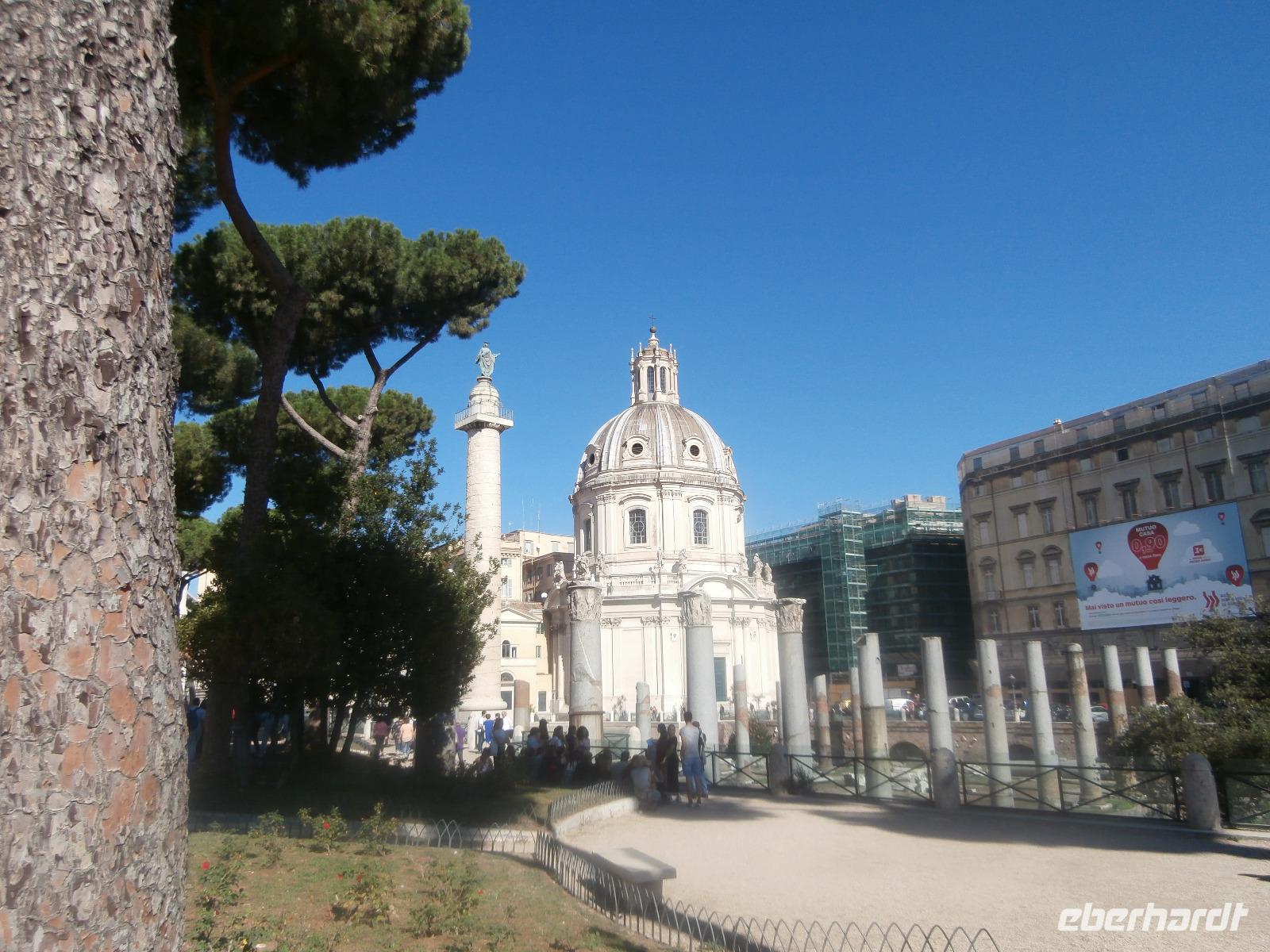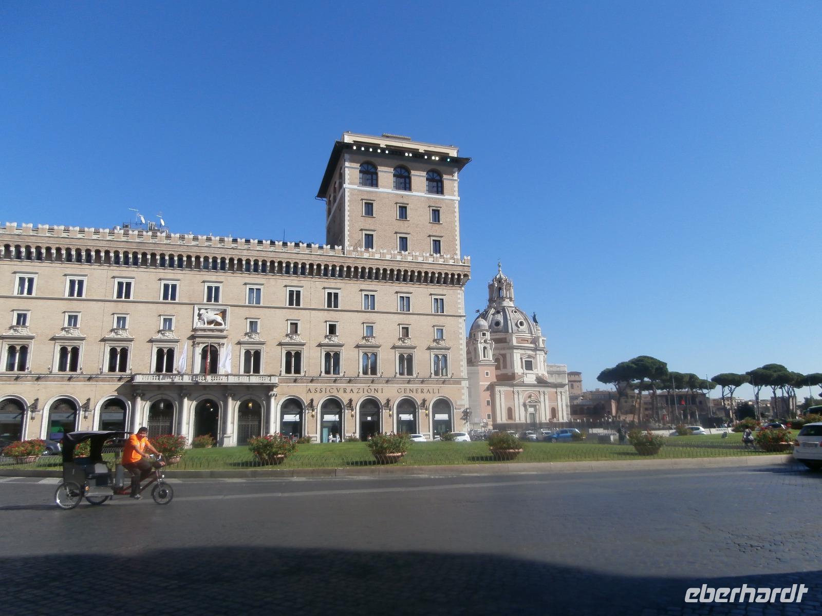 Massen an Menschen strömen im Anschluss weg vom Petersplatz, wir auch, unser Weg führt zur Engelsburg und hier hören wir viel vom Kaiser Hadrian, es war mal seine Grabstätte. Benannt wird die Festung, dazu hat man sie für die Päpste umfunktioniert, nach dem Erzengel Michael, der auf der Spitze dieser Anlage thront. Über die Ponte Sant' Angelo gehen wir über den Tiber. Durch enge Gassen gelangen wir zum Wohnzimmer der Römer - zum Piazza Navona. Hier steht in der Mitte des Platzes der Vier Ströme Brunnen, den noch ein Obelisk schmückt. An beiden Enden des Platzes gibt es noch 2 Brunnen. Weiter führt uns Sylvia bis zum Pantheon, hier wird eine längere Pause zur Mittagszeit eingelegt. Nach der Pause sehen wir ins Pantheon als nächstes Kunstobjekt, einst Tempel und später Kirche, ist es neben dem Kolosseum das besterhaltene Bauwerk der Antike. Immer noch faszinierend sind der harmonische Innenraum und die perfekt proportionierende Kuppel. Einzige Lichtquelle ist die 9 m große nicht verglaste Öffnung im Scheitelpunkt der Kuppel. Letzter Besichtigungspunkt unseres heutigen Tagesprogrammes ist die nahegelegene Kirche St. Ignatius von Loyola. Sie ist die zweitgrößte Jesuitenkirche Roms und Grabstätte eines Papstes und von drei Heiligen. Wir verabschieden uns von Sylvia und laufen gemeinsam zum Nationalmonument Emanuele II. Wir fahren gemeinsam auf die Aussichtsplattform. Eberhardt Travel gibt uns dieses Highlight als WOW aus. Fantastisch ist hier oben der Blick auf Rom, welches sich unter uns prächtig präsentiert.