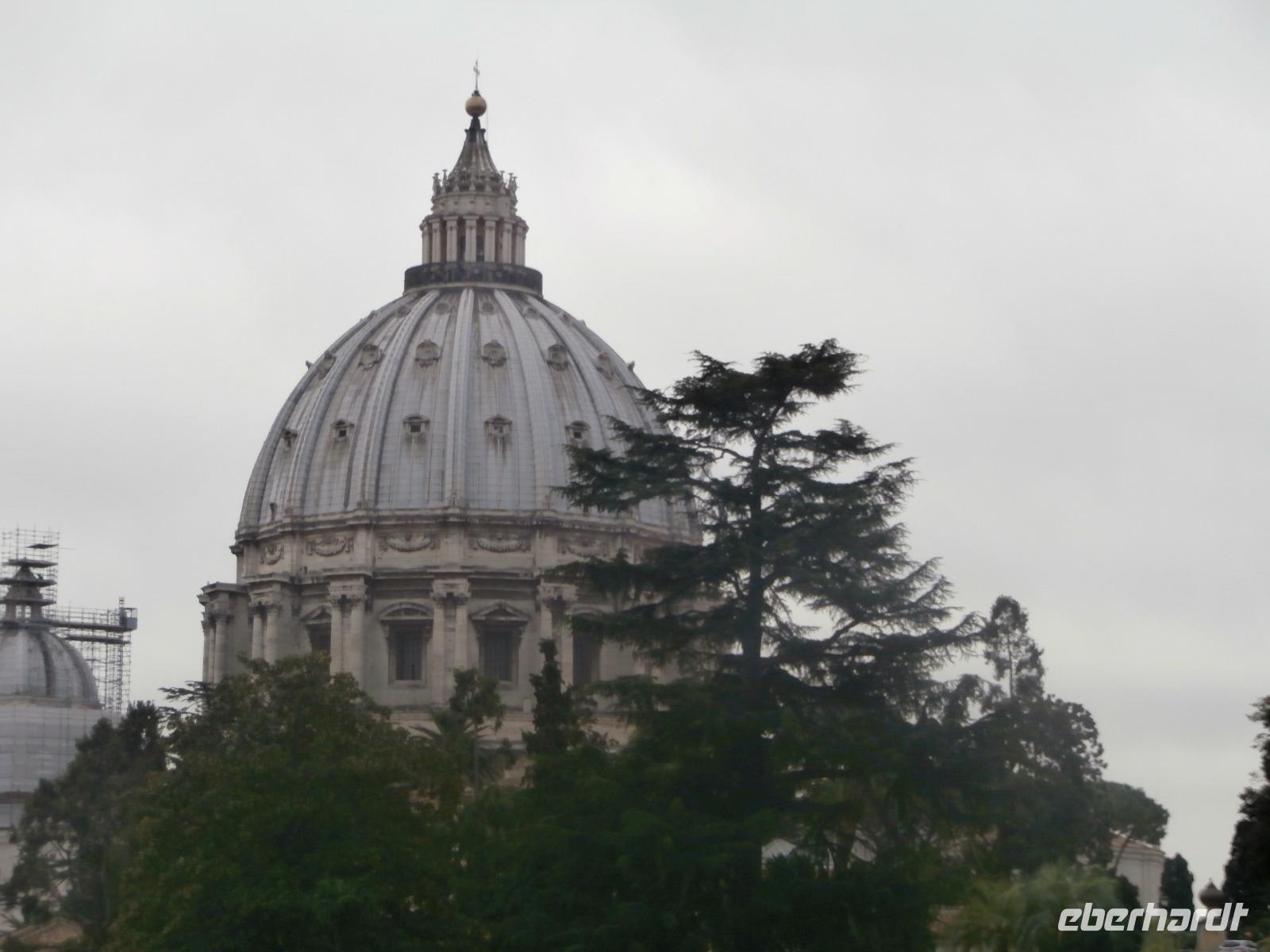 Wir wollen am Morgen vom Hotel aus mit dem Bus fahren, viel Verkehr zieht an uns vorüber, aber Bus kommt keiner. So entscheiden wir uns, zu Fuß bis zum Petersdom und dann weiter bis zum Eingang der Vatikanischen Museen zu laufen. Gemeinsam begeben wir uns zum Eingang, wo wir uns in die Warteschlange einreihen. Irmgard Rahn, unsere Führerin im Vatikan, erwartet uns schon. Ausstaffiert mit den Audio Guides begeben wir uns hinaus in das fantastische Reich der Vatikanischen Gärten, ein von schönen Pflanzen und vielen alten Bäumen und Bauwerken entstandenes Paradies inmitten des Vatikanstaates. Nach unserer Mittagspause treffen wir wieder Sylvia und mit ihr begeben wir uns auf Besichtigung der Schätze der Vatikanischen Museen. Sie wurden über viele Jahrhunderte von Päpsten angesammelt und können auf einem 7 km langen Rundweg durch viele verschiedene Museen bestaunt werden. Am Ende wollen wir aber in die Sixtinische Kapelle, die die Meisterwerke von Michelangelo in sich birgt. Er hat eindrucksvoll und für die Ewigkeit die restaurierten Fresken geschaffen. Zum Petersdom gelangen wir zum Schluss über eine Treppe, die uns an der Seite hinunterführt. Wir betreten das Heiligtum und erhaschen noch einen Blick über den Petersplatz. Es geht nun hinein in den Petersdom und was uns Sylvia erzählt, dass nimmt uns mit auf eine Reise in die Vergangenheit, es ergreift das Herz und jeder von uns folgt mit Aufmerksamkeit ihren Ausführungen. Das Innere des Doms ist gewaltig: 50 Altäre, 450 Statuen und 500 Säulen, ja und fast 60.000 Menschen finden Platz in ihm. Die Gesamtanlage des Petersplatzes hat den Grundriss eines auf den Kopf gestellten Schlüssellochs und wurde von Bernini entworfen